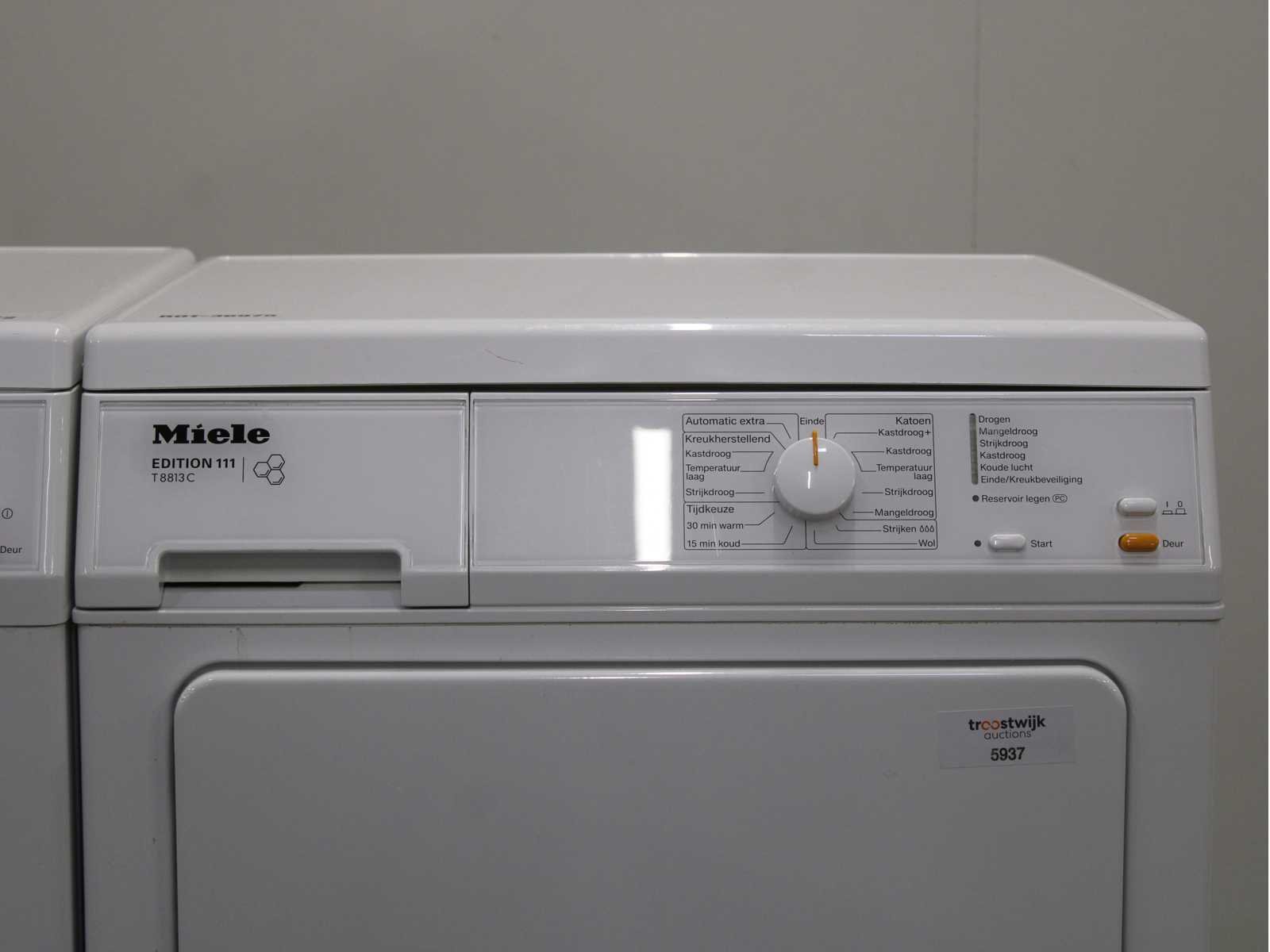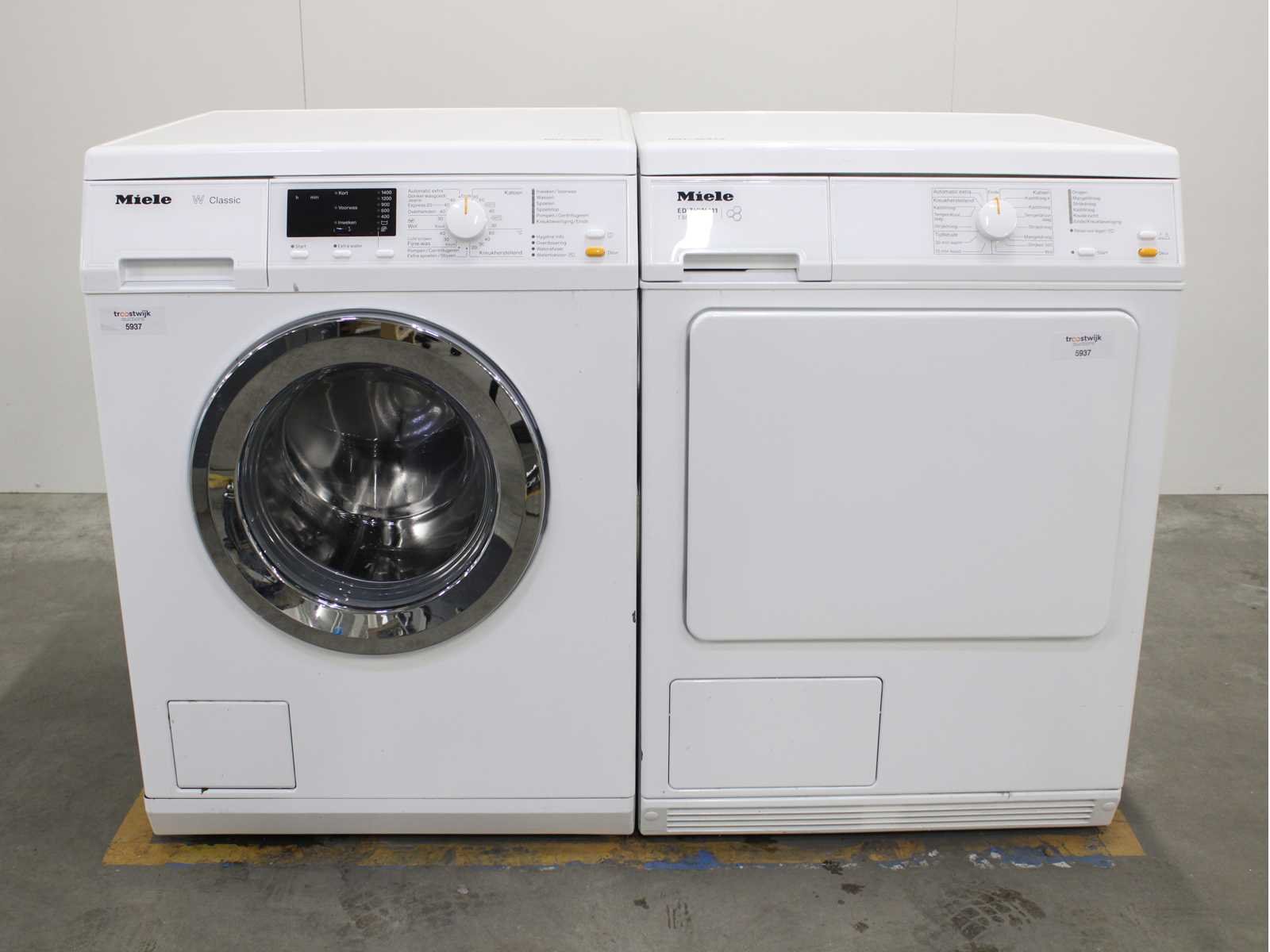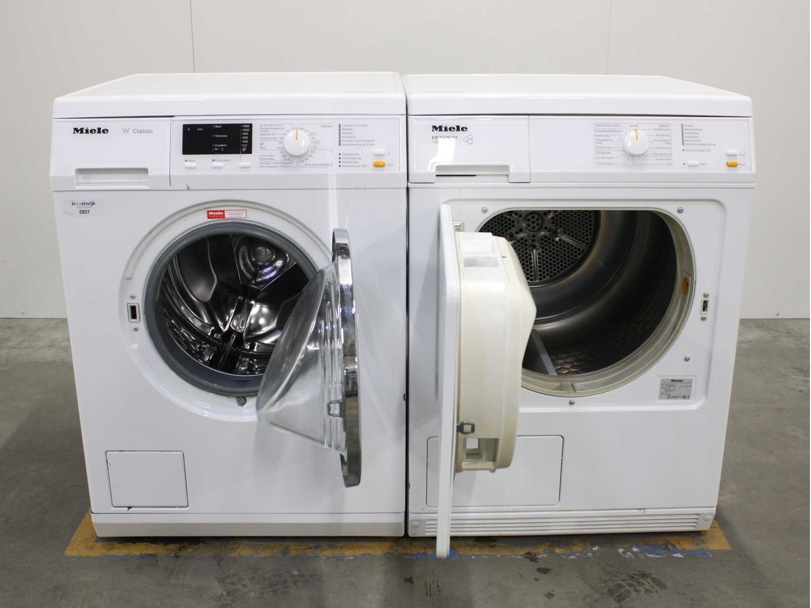 Deze wasmachine en wasdroger komen uit een partij jong gebruikt A-Merk witgoed. De machines zijn volledig getest, gereinigd en indien nodig gerepareerd. Houdt er rekening mee dat de machines lichte gebruikssporen kunnen hebben. Wasmachines en wasdrogers hebben vaak standaard afmetingen. Hoogte 85cm, Breedte 60cm en Diepte 60 tot 70cm, incl. uitstekende slangen e.d. aan de achterzijde. Als de machine vrij komt te staan is de afmeting minder relevant. Wil je de machine in een nis plaatsen of inbouwen? Controleer dan de exacte afmetingen op basis van het aangeboden merk en model/type. Within 7 days Merk: Miele Serienummer: WDA110 en T8813 Edit.111