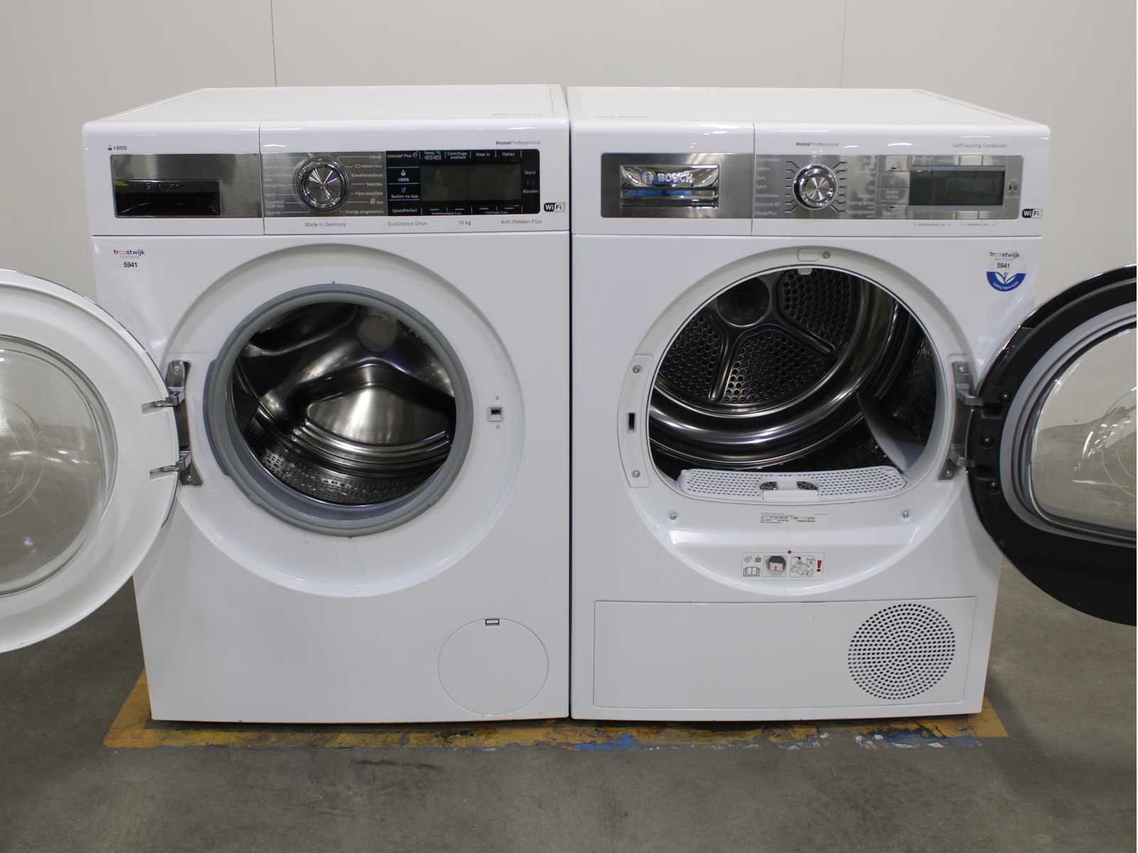 Deze wasmachine en wasdroger komen uit een partij jong gebruikt A-Merk witgoed. De machines zijn volledig getest, gereinigd en indien nodig gerepareerd. Houdt er rekening mee dat de machines lichte gebruikssporen kunnen hebben. Wasmachines en wasdrogers hebben vaak standaard afmetingen. Hoogte 85cm, Breedte 60cm en Diepte 60 tot 70cm, incl. uitstekende slangen e.d. aan de achterzijde. Als de machine vrij komt te staan is de afmeting minder relevant. Wil je de machine in een nis plaatsen of inbouwen? Controleer dan de exacte afmetingen op basis van het aangeboden merk en model/type. Within 7 days Merk: Bosch Serienummer: WAXH2E90NL en WTYH8770NL/09