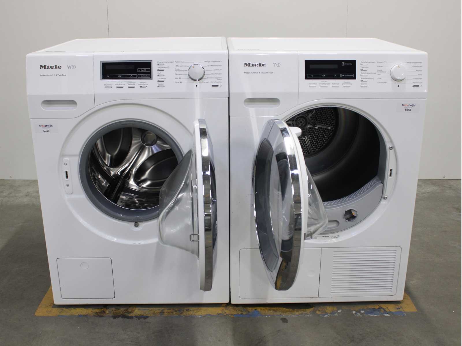 Deze wasmachine en wasdroger komen uit een partij jong gebruikt A-Merk witgoed. De machines zijn volledig getest, gereinigd en indien nodig gerepareerd. Houdt er rekening mee dat de machines lichte gebruikssporen kunnen hebben. Wasmachines en wasdrogers hebben vaak standaard afmetingen. Hoogte 85cm, Breedte 60cm en Diepte 60 tot 70cm, incl. uitstekende slangen e.d. aan de achterzijde. Als de machine vrij komt te staan is de afmeting minder relevant. Wil je de machine in een nis plaatsen of inbouwen? Controleer dan de exacte afmetingen op basis van het aangeboden merk en model/type. Within 7 days Merk: Miele Serienummer: WKJ130 WPS en TKG450 WP