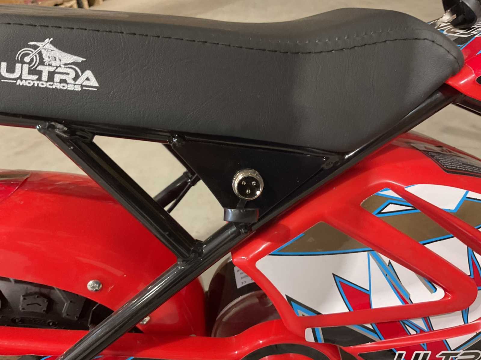Voorzien van 250W elektrische motor; bandenmaat 7,5” inch; ongebruikt in doos (transport afmetingen 95x25x50 cm) Merk: Ultra Motocross Type: Monkey bike RD Gewicht: 23kg Kleur: Rood Transmissie: Automaat Aantal sleutels: 2 Bouwjaar: 2025