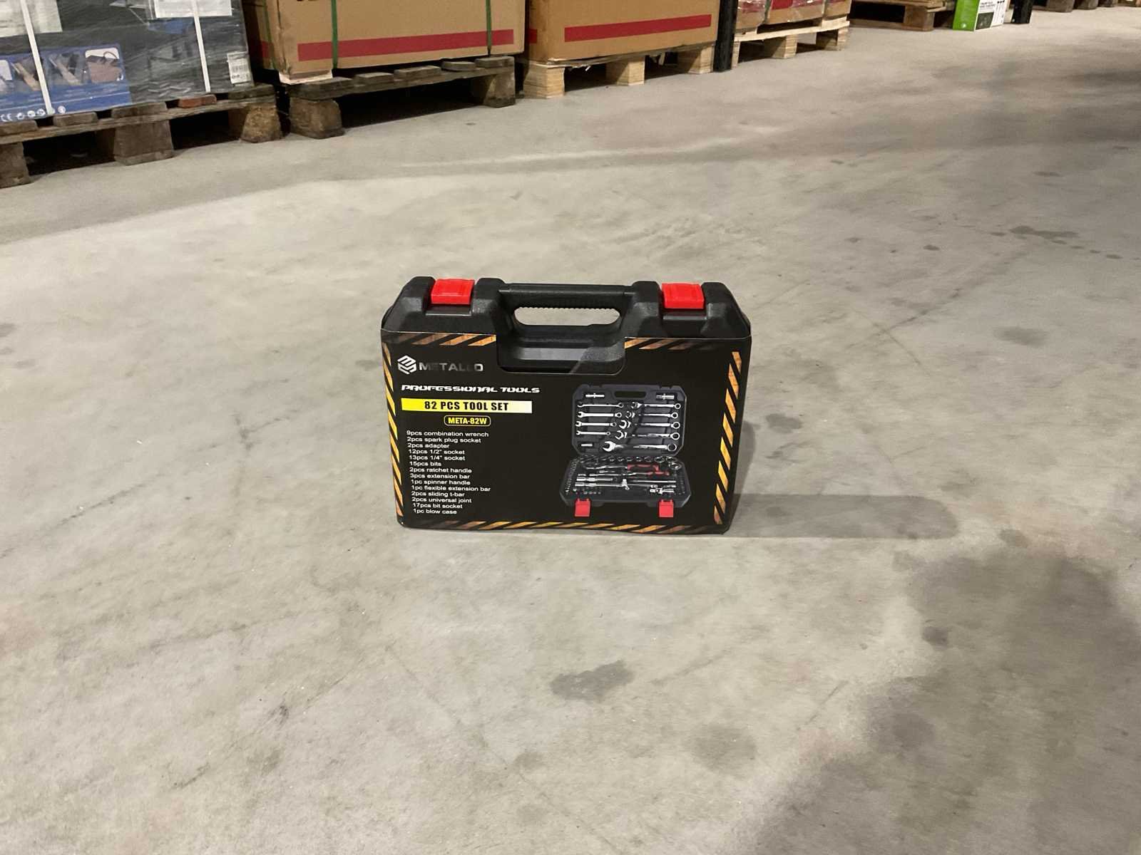 Voorzien van 9 x Ring/steeksleutel; 2 x Bougiesleutel; 2 x adapters; 12 x 1/2"Doppenset; 13 x 1/4" Doppenset; 15 x bitset; 2 x Ratelsleutel; 3 x verlengstukken; 1 x Spinner; 1 x Flexibele verlengstuk; 2 x Sliding T-Bar; 2 x Universele aansluiting; 17 x bitjes set; 1 x Kunststofkoffer; Ongebruikt in doos (Transport afmeting 385 x 80 x 290, Gewicht 5.75 KG Merk: Metallo Met koffer: true Delig: 82 Type: META-82W Bouwjaar: 2025
