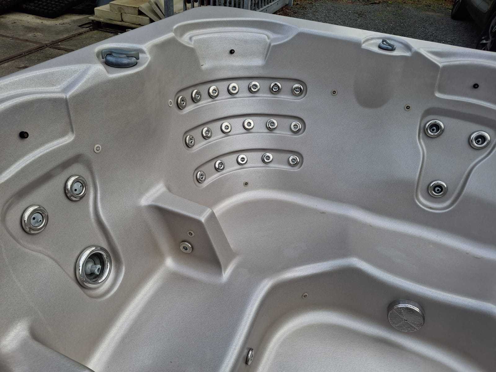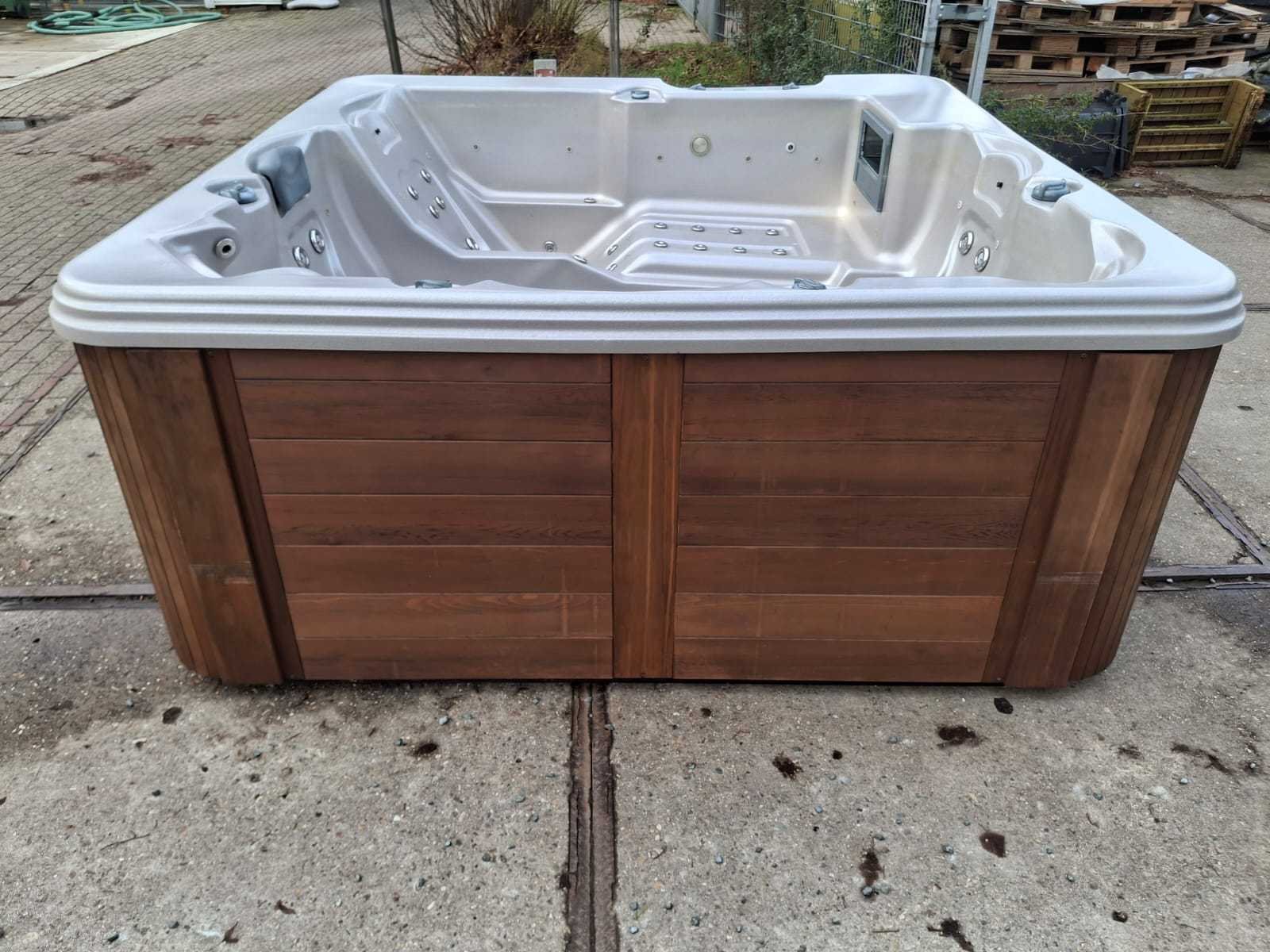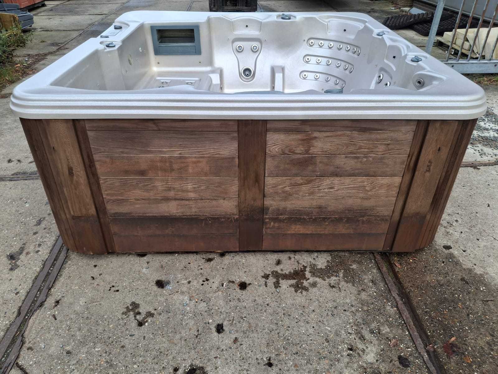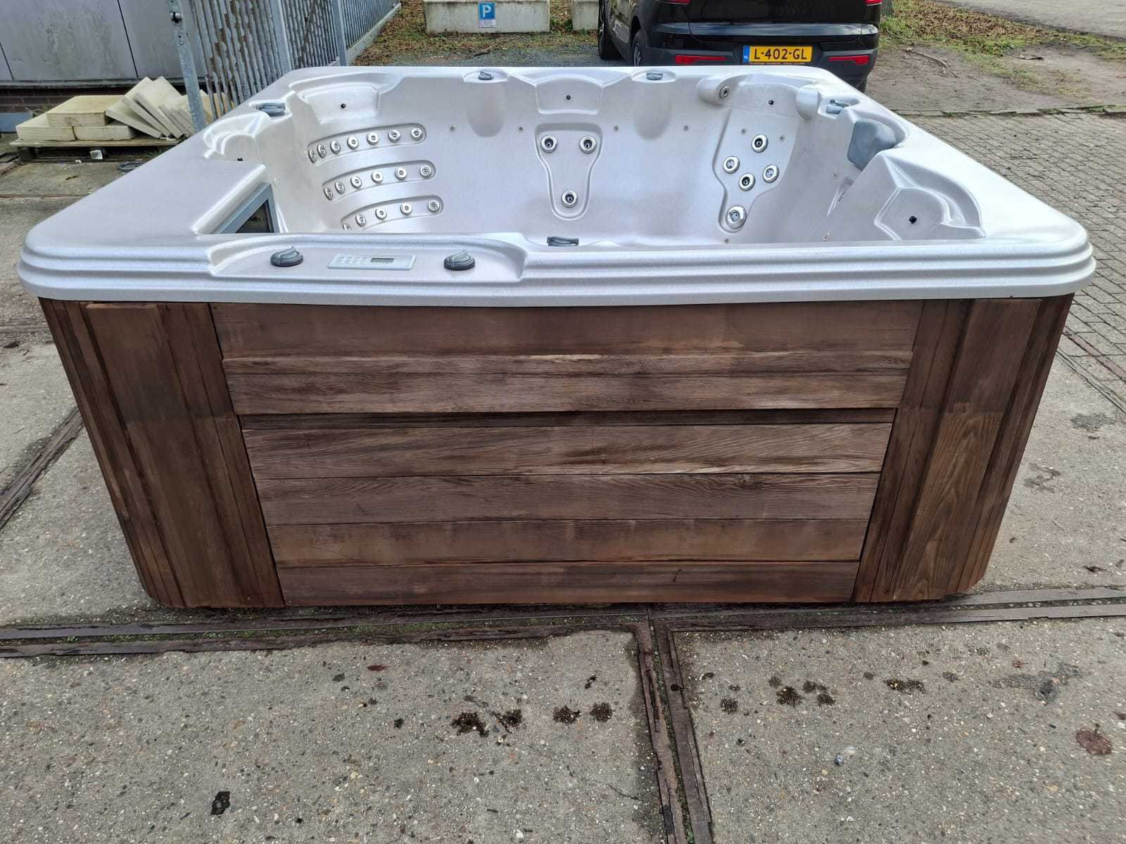 Voorzien van 5 zitplaatsen; 1 ligplaats; nek/schouder massage; Amerikaanse jacuzzi; Niet getest op functioneren (Marge, geen BTW) Merk: 4 season Model: 6 persoons Verlichting: Ja Jets: 55 Aantal personen: 6 Lengte: 240cm Breedte: 240cm Hoogte: 103cm