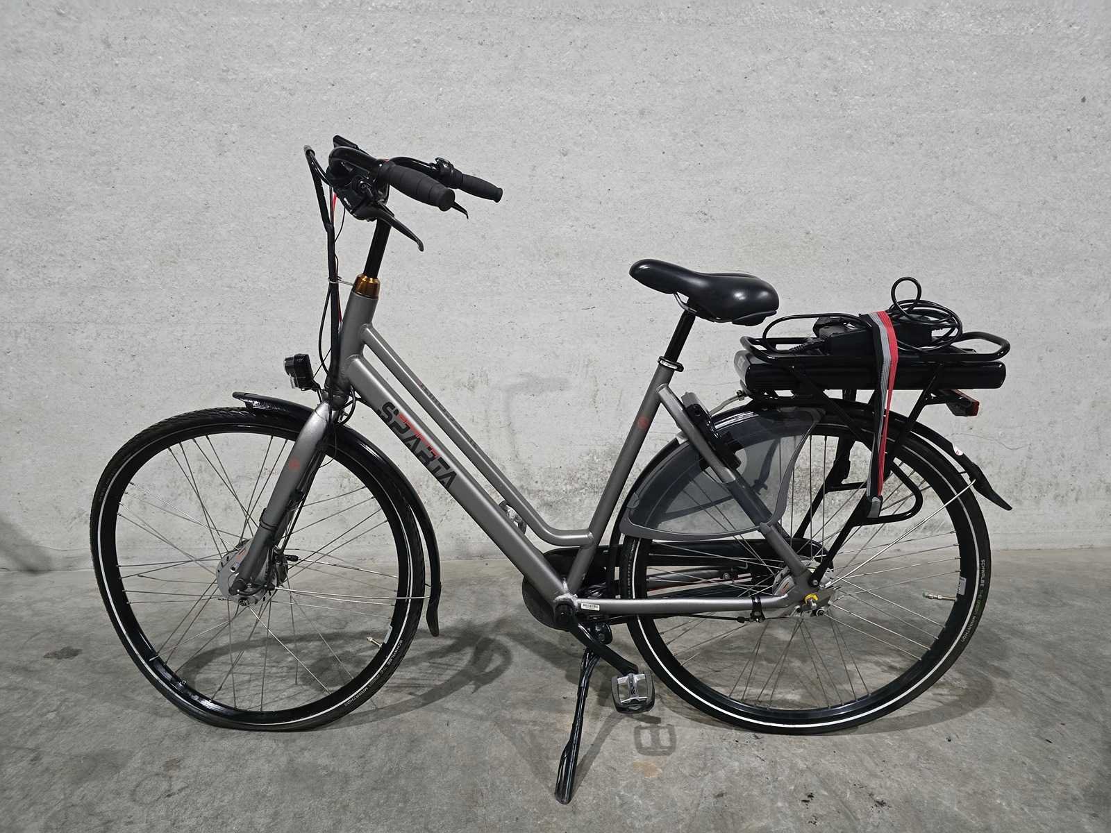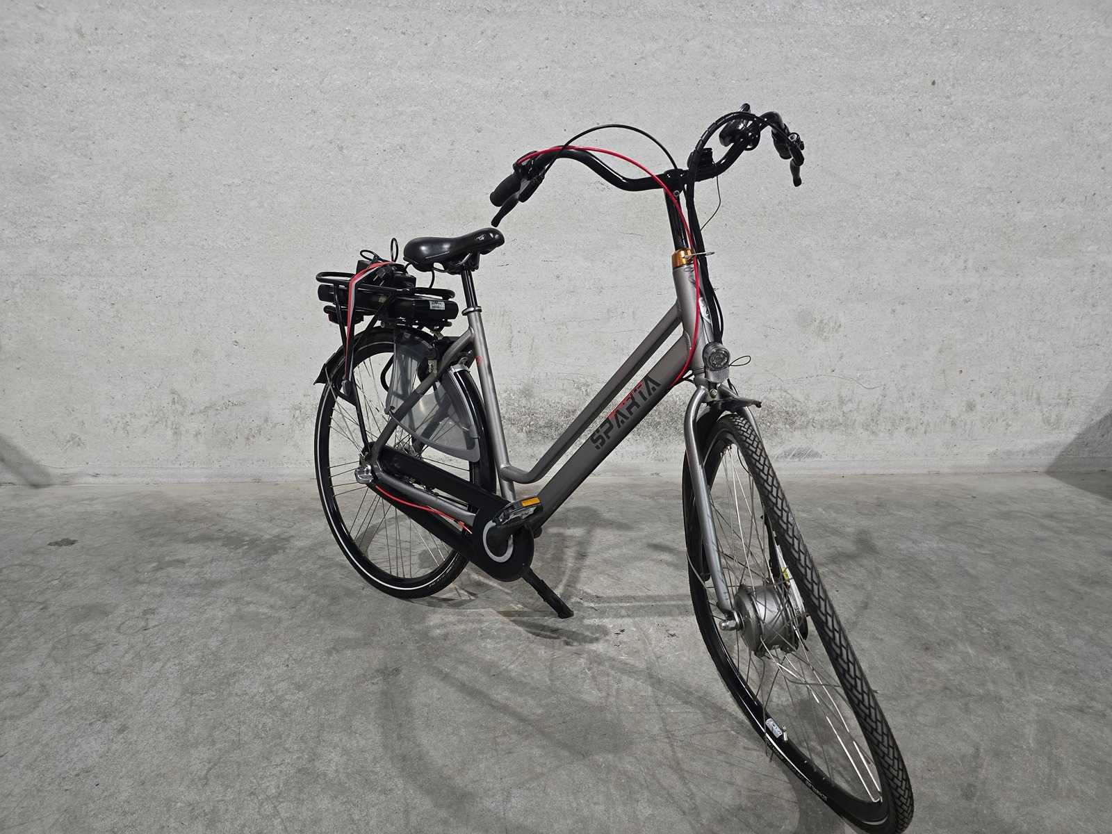 3 sleutels - met oplader - voorwiel krom - technische / onderhoud staat onbekend - rondom beschadigingen - Merk: Sparta Model: Regular Motorpositie: voorwiel Oplader getest: nee Accu getest: nee Remsysteem: trommel Framemaat: 52cm Kleur: grijs