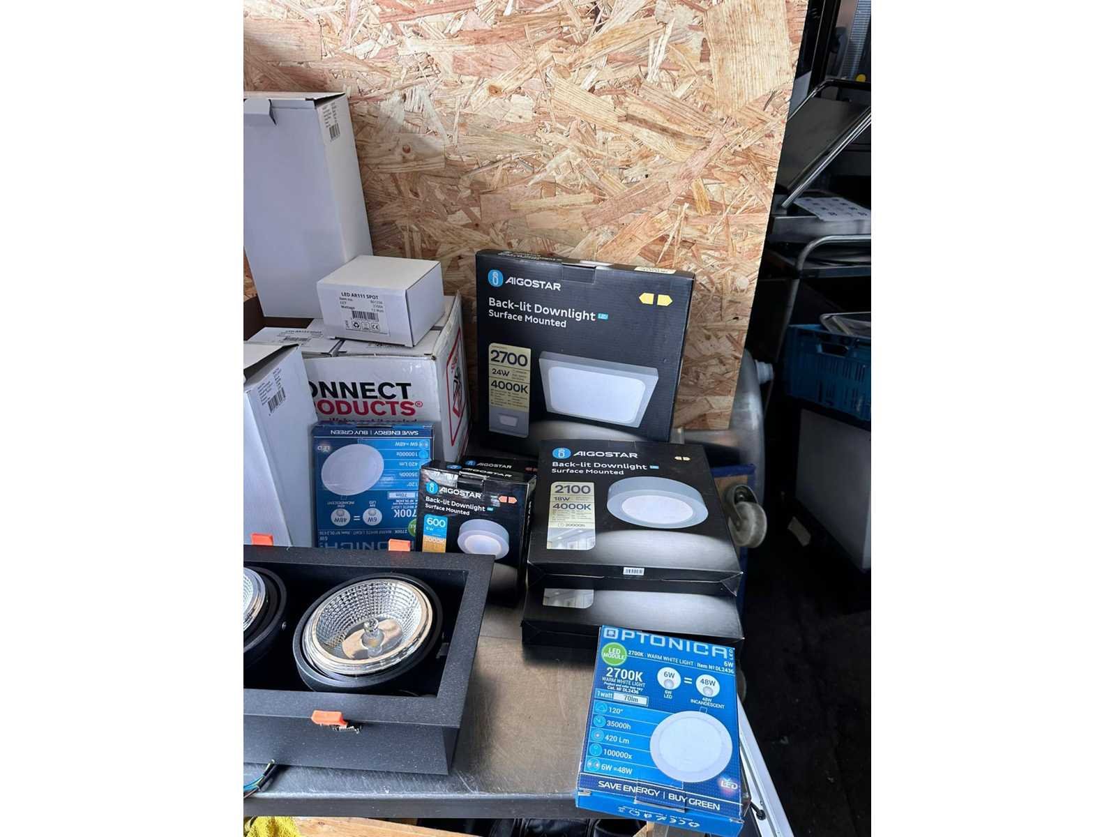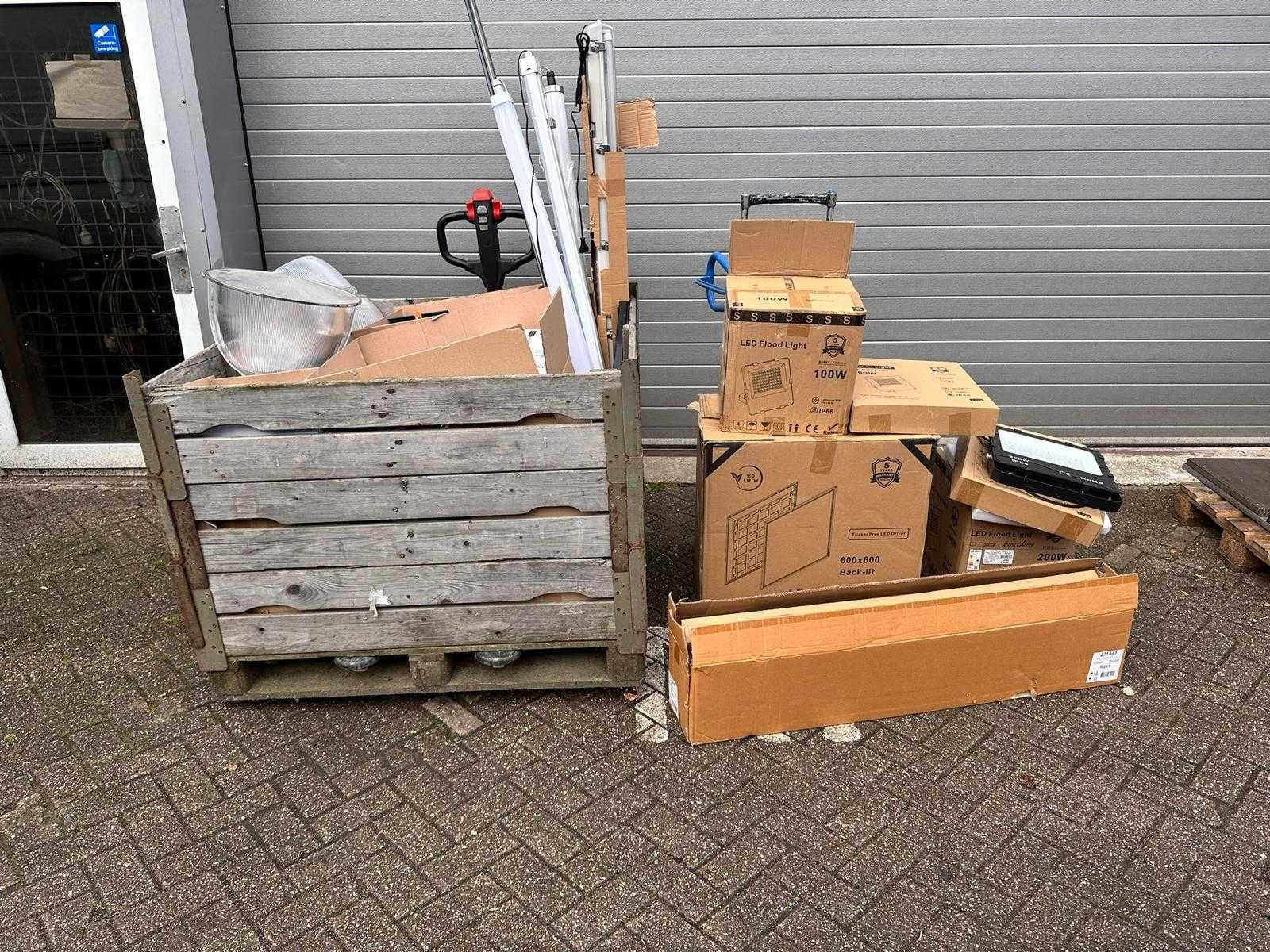 Bestaande uit: Grote partij diverse verlichting 1e: Led verlichting 2e: Diverse kabels 3e: Solar verlichting 4e: TL verlichting 5e: Etc