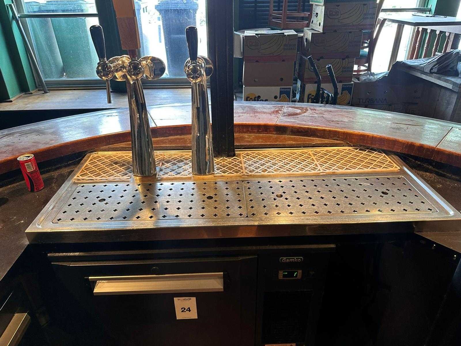 Bestaande uit Gamko FK2-25/4R fustenkoeler (bouwjaar 2020) tapblad en 2x tapzuil. Totale afmeting L: 130cm Totale afmeting Breedte: 55cm