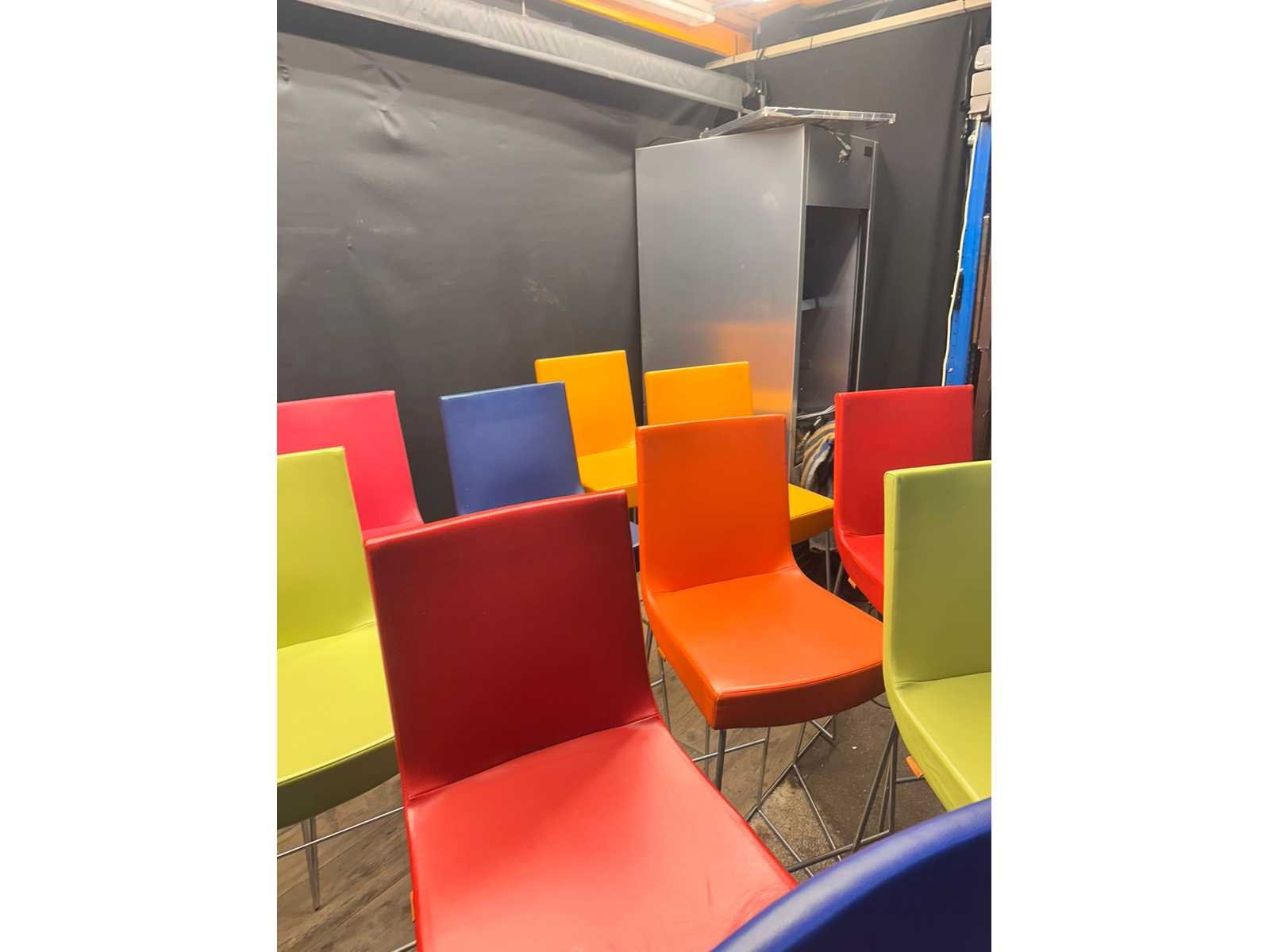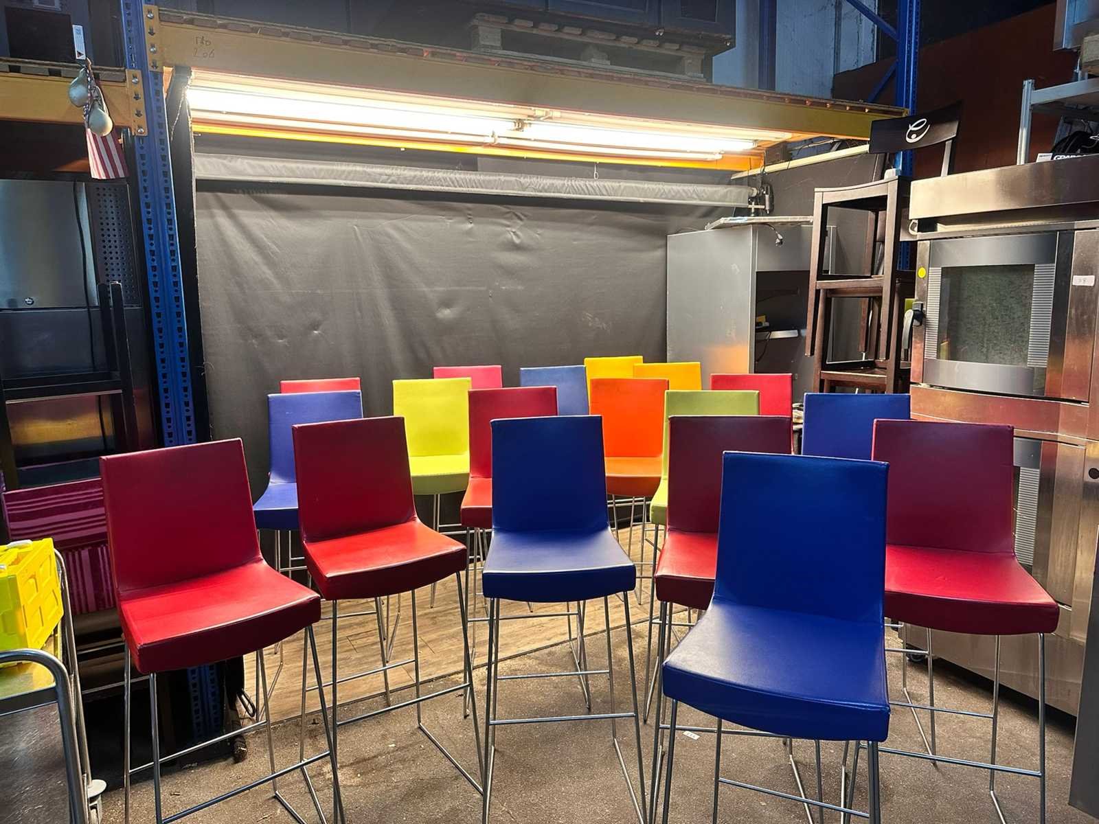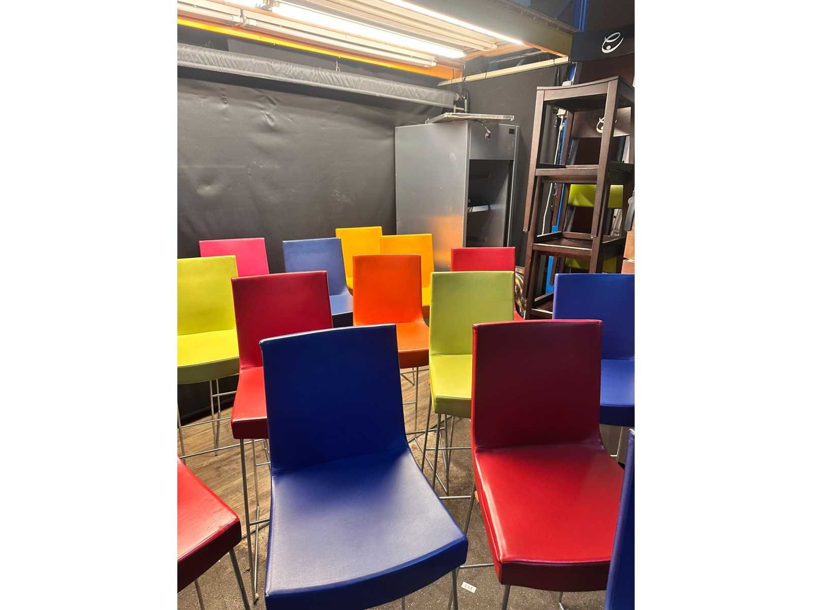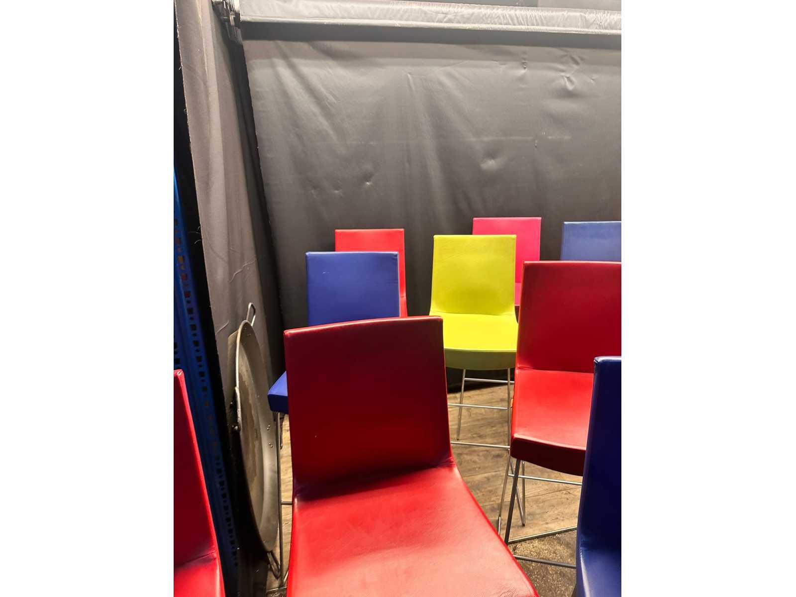Lederen zitting voorzien van Chrome onderstel. In diverse kleuren. Merk: Montis Type: Jim Zithoogte: 84cm