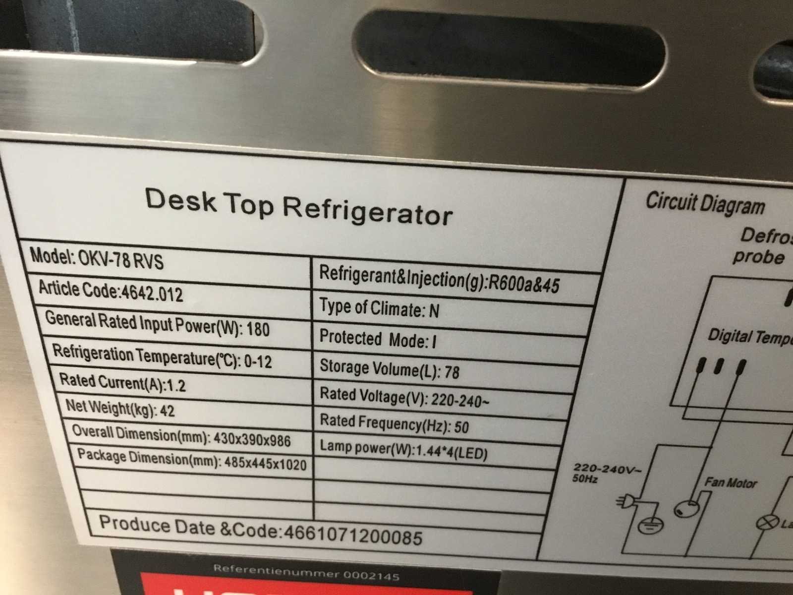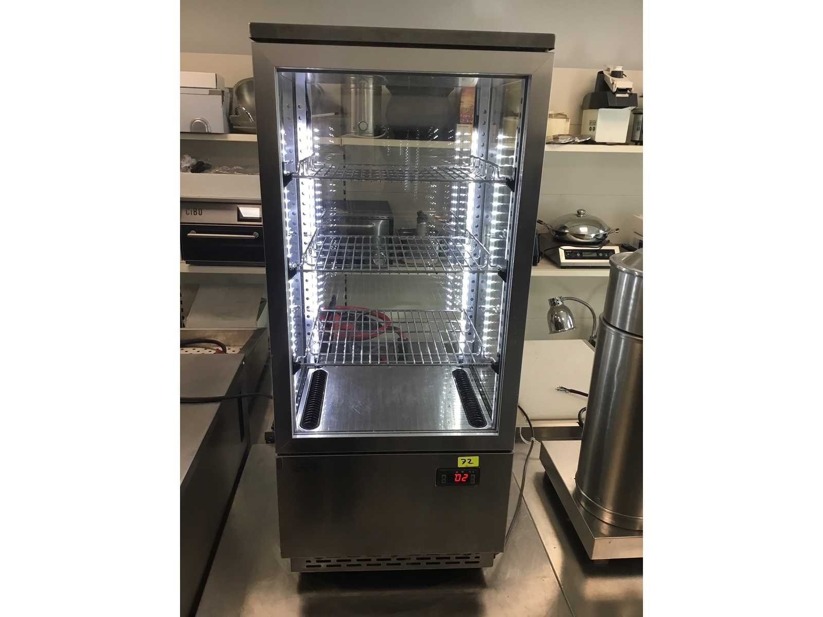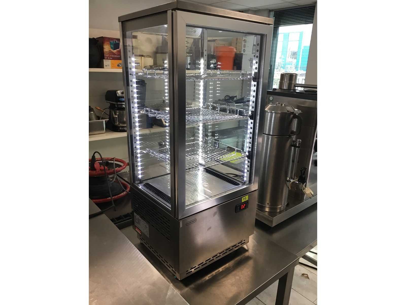 Deze Maxxfrost Opzetkoelvitrine OKV-78 RVS heeft een glasdeur en is standaard voorzien van 3 draadroosters. De vitrine is bovendien uitgevoerd met binnenverlichting welke in- of uitgeschakeld kan worden. Deze Maxxfrost opzetvitrine is ideaal voor het koelen van frisdranken, fruit en/of salades en dankzij zijn mooie design kan de vitrine ook prima op een opvallende plek in uw bedrijf staan. Merk: Maxx frost Model: OKV-78 Netto inhoud koelvakken: 78l Vermogen: 180W Spanning: 220-240V Lengte: 39cm Breedte: 43cm Hoogte: 99cm