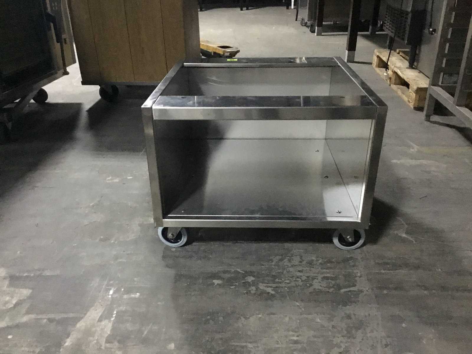 Type: Onderstel op wielen Materiaal: RVS Totale afmeting Breedte: 650mm Totale afmeting L: 610mm Totale afmeting Hoogte: 490mm