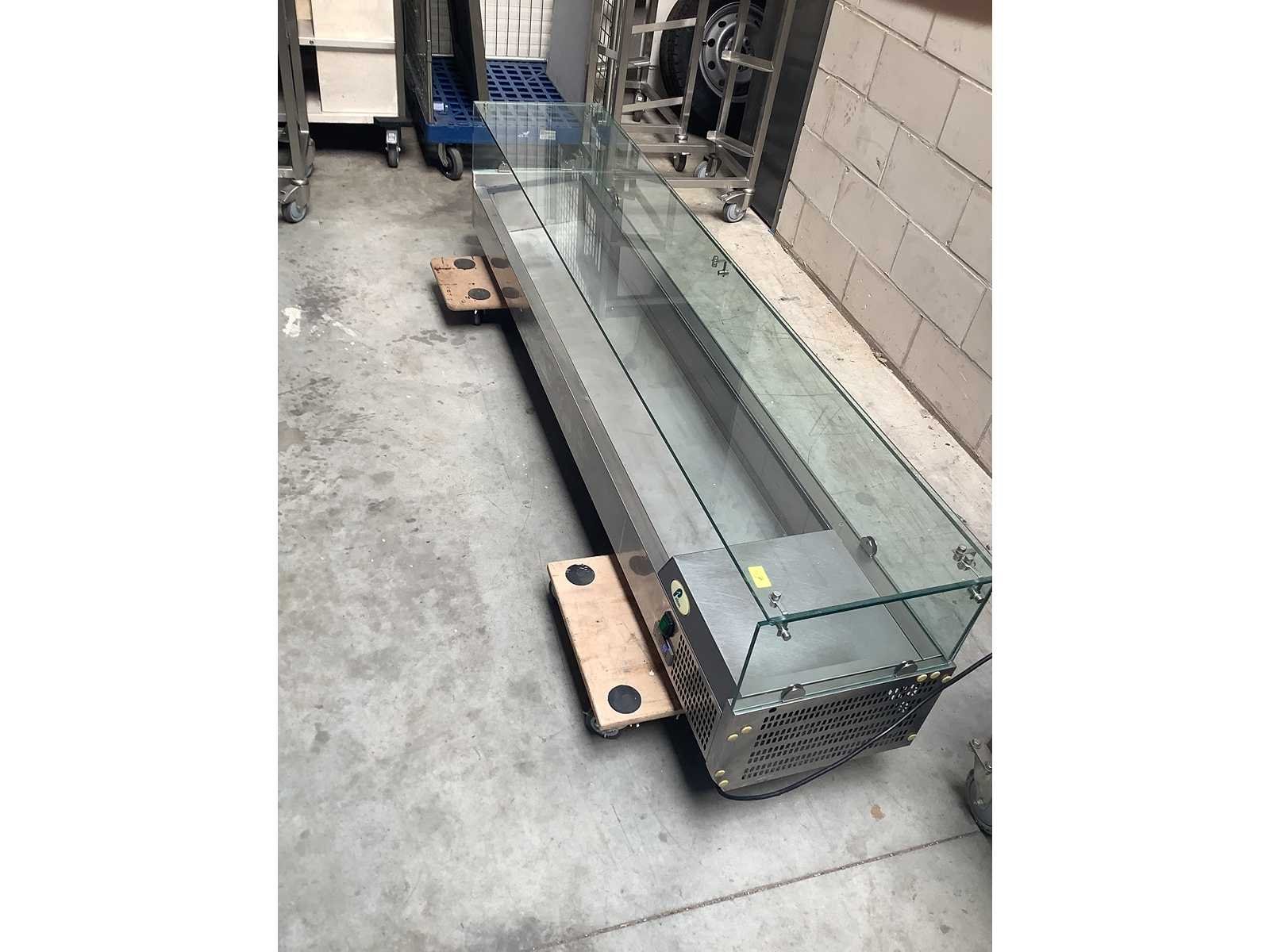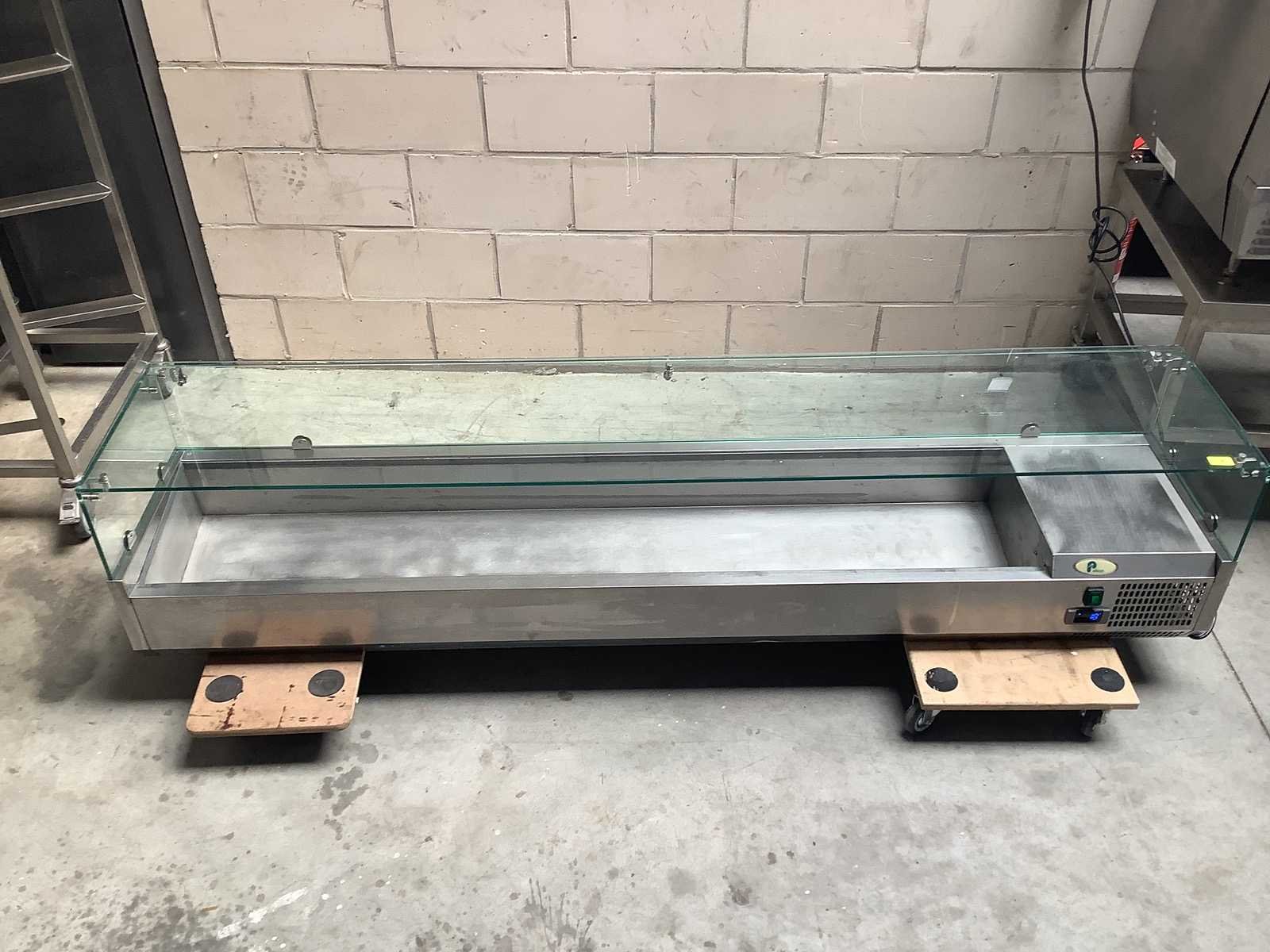 Je kunt volop verse, gekoelde ingrediënten voor je gerechten kwijt in de acht 1/3 GN-bakken die deze 1800 mm opzetvitrine kan herbergen. De glazen top zorgt ervoor dat je klanten kunnen zien wat je te bieden hebt, zodat ze eventueel zelf hun keuze kunnen maken. De behuizing van de vitrine is vervaardigd uit hoogwaardig rvs, dat een professionele uitstraling heeft en eenvoudig schoon te maken is, net als de glazen top. Het koelbereik van +2 tot +8 graden wordt gewaarborgd door een statische koeling. Merk: Pelican Digitale uitlezing: true Aansluiting: 230V Totale afmeting L: 40cm Totale afmeting Breedte: 199cm Totale afmeting Hoogte: 43cm