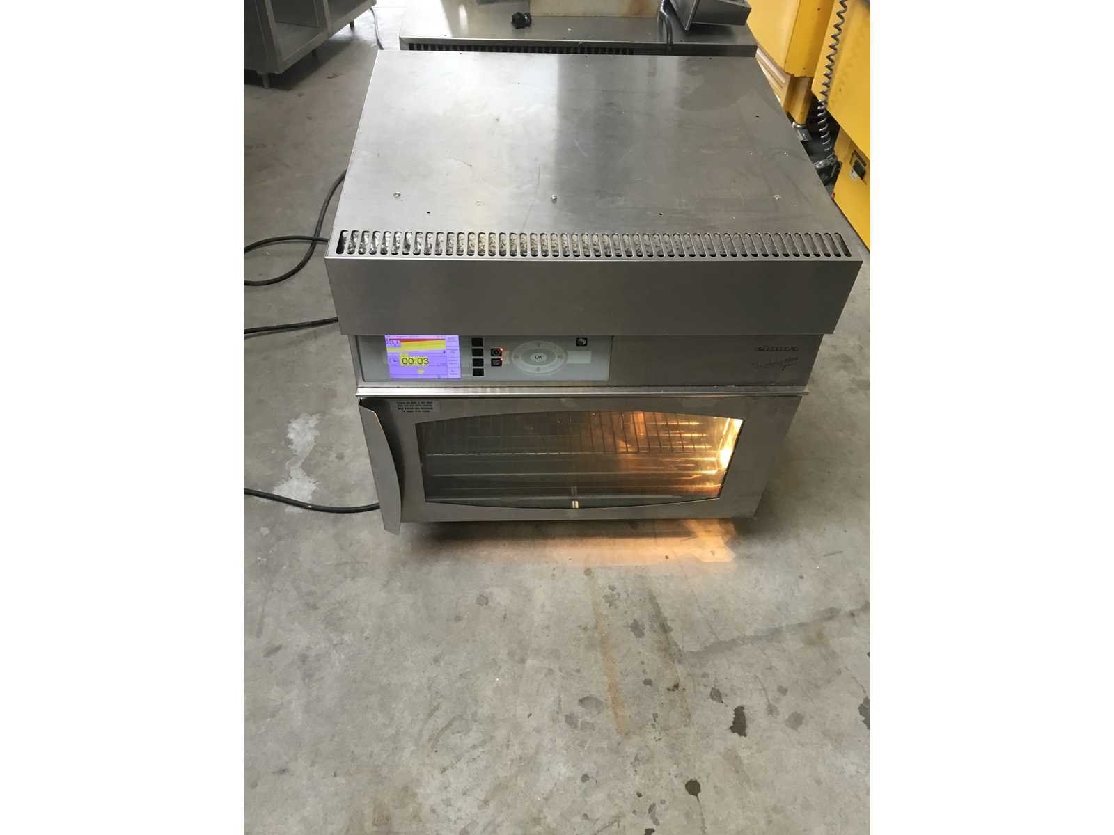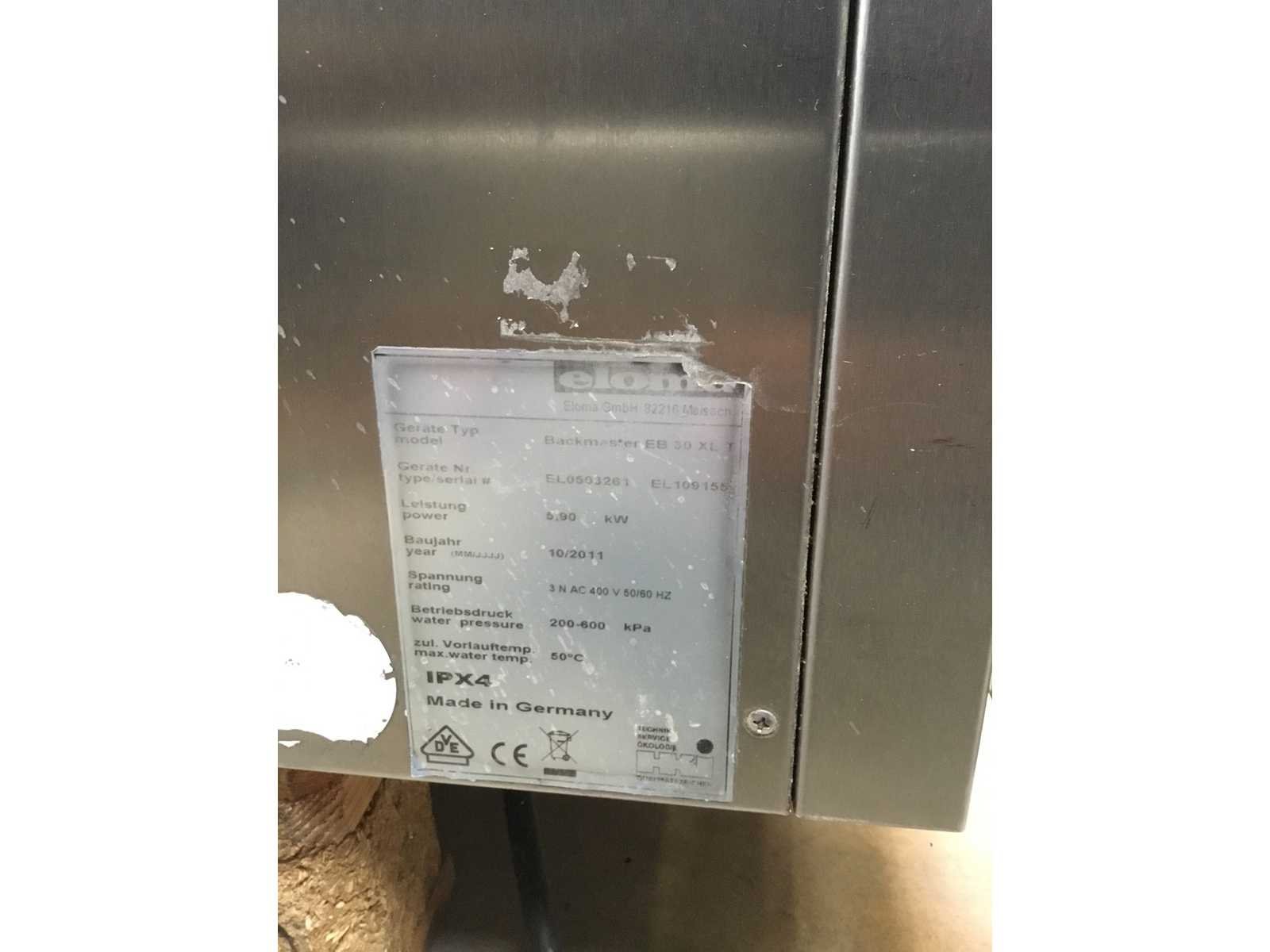 Eloma heteluchtoven inclusief condenskap,, geschikt voor 3 bakplaten van 440x350mm. Uitgerust met essentiële functies zoals dubbel glas, binnenverlichting en een rechts scharnierende deur voor gemakkelijke toegang. Merk: Eloma Type: Bakermaster T Serienummer: EB30XL Aantal niveau's: 3 Totale afmeting L: 720mm Totale afmeting Breedte: 760mm Totale afmeting Hoogte: 660mm