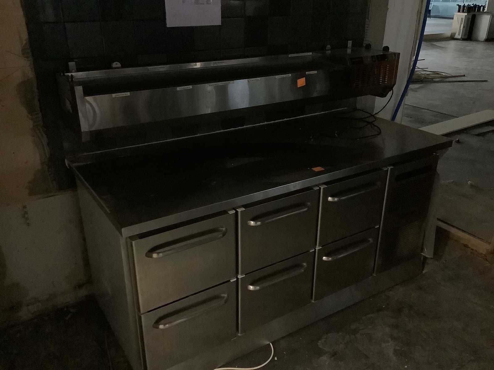 Gedemonteerd. Inclusief combisteel ABX saladiere, 34x180x27 cm Lengte: 80cm Breedte: 182cm Hoogte: 90cm