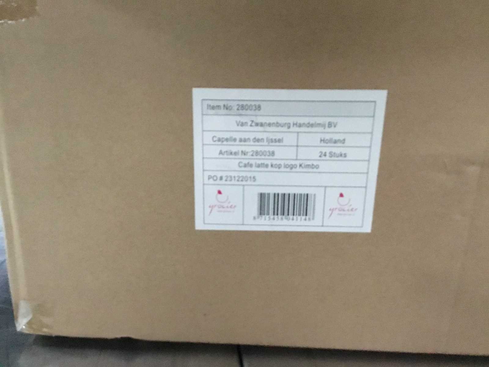 Nieuw in doos 24 stuks per doos Merk: Grocier Type: Caffe latte kop logo kimbo Totale afmeting L: 13cm Totale afmeting Hoogte: 10cm