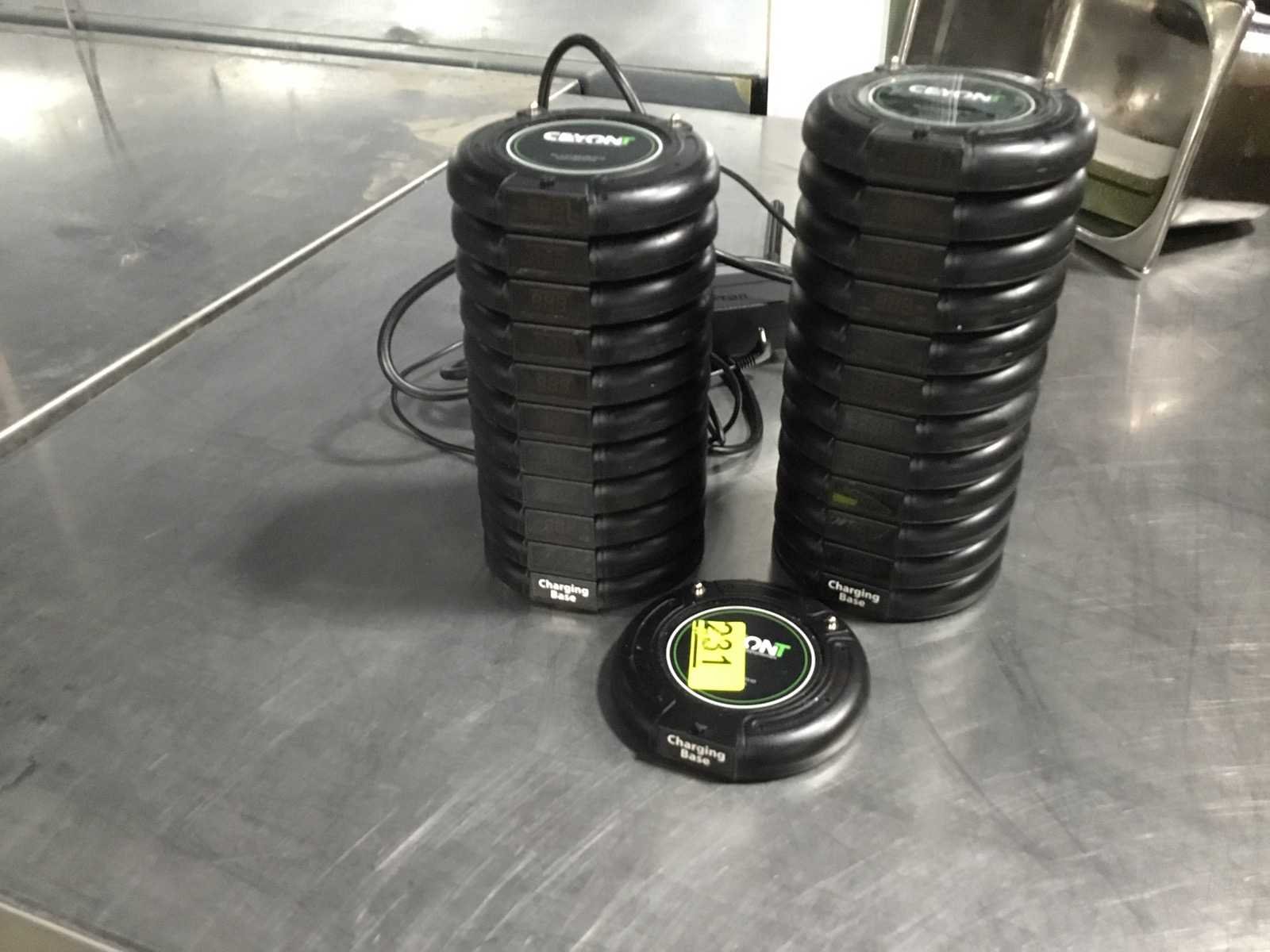 1 snoer 3x charging base 21x oproepsysteem Merk: Ceyont Type: Draadloze oproepsysteem Totale afmeting L: 105mm Totale afmeting Hoogte: 15mm Kunststof: true