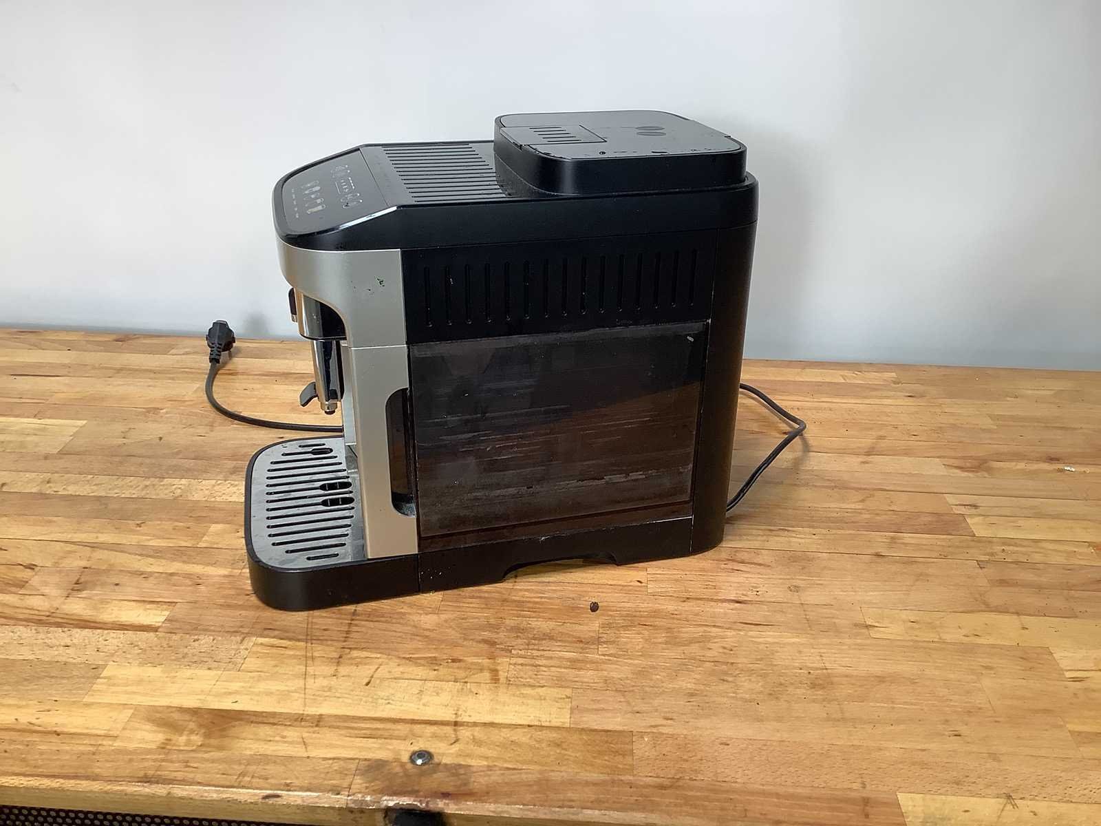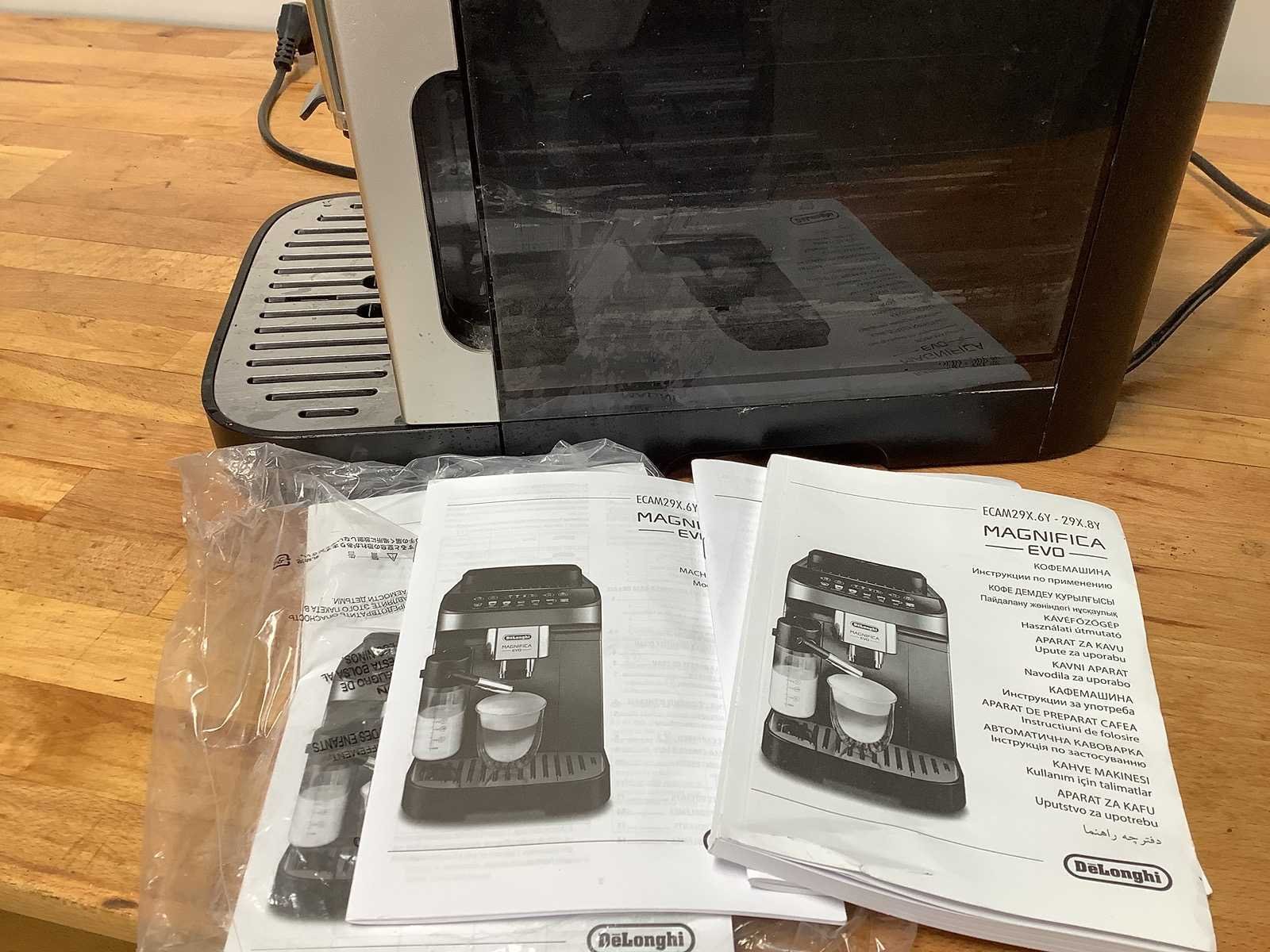 Melkhouder ontbreekt Met de De'Longhi Magnifica EVO ECAM290.61.SB zet je een cappuccino met één druk op de knop, dankzij het LatteCrema systeem. Zo zorgt het melkreservoir voor een zacht en romig melkschuim voor jouw koffie. Met de My Latte knop personaliseer je jouw eigen kop koffie naar de gewenste hoeveelheid melk. Naast een cappuccino kies je via de handige kleur pictogrammen nog uit een espresso, koffie of heet water. Je past de sterkte van de koffies via 3 verschillende niveaus aan. Zo wissel je van intensiteit. Drink je graag een kopje decaf koffie? Dan zet je een kop koffie van gemalen koffie via het aparte vakje in het bonenreservoir. Na gebruik reinig je het melkreservoir gemakkelijk in de vaatwasmachine. Merk: Delonghi Model: Magnifica Evo Pompdruk: 15 Koffie- & espressomachine: true Inhoud bonenreservoir: 250g Inhoud waterreservoir: 1.8l Kleur: Zilver Gewicht: 9.6kg Lengte: 36cm Breedte: 24cm Hoogte: 44cm