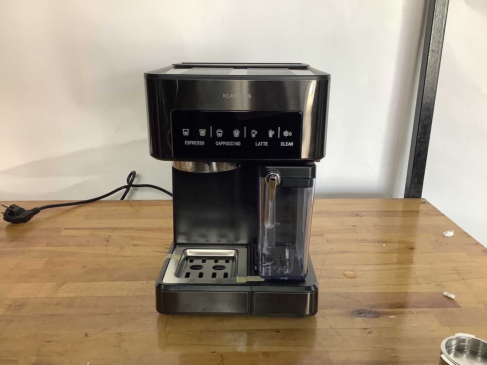 Merk: Klarstein Model: 10035655 Koffie- & espressomachine: true Kleur: Zilver Lengte: 29cm Breedte: 21cm Hoogte: 31cm