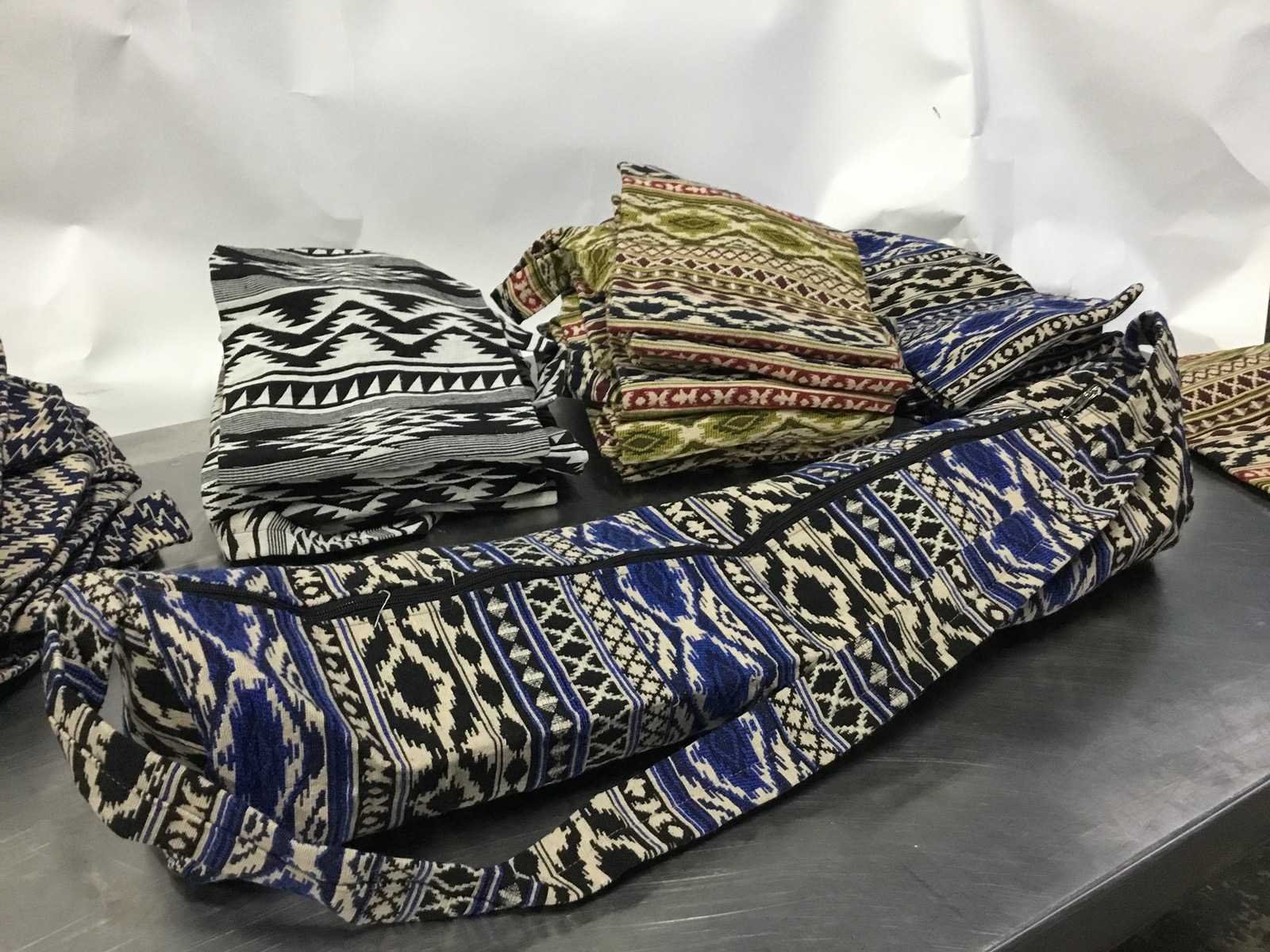 Handcraft yogatassen tbv yoga mat. Gemaakt in India. Van alle soorten 5 stuks de groen rood 10 stuks deze tassen zijn met ritssleuting Merk: Yogi bag Product type: Yoga tas Kleur: Diverse Lengte: 73cm Hoogte: 16cm Materiaal: Geweven katoen