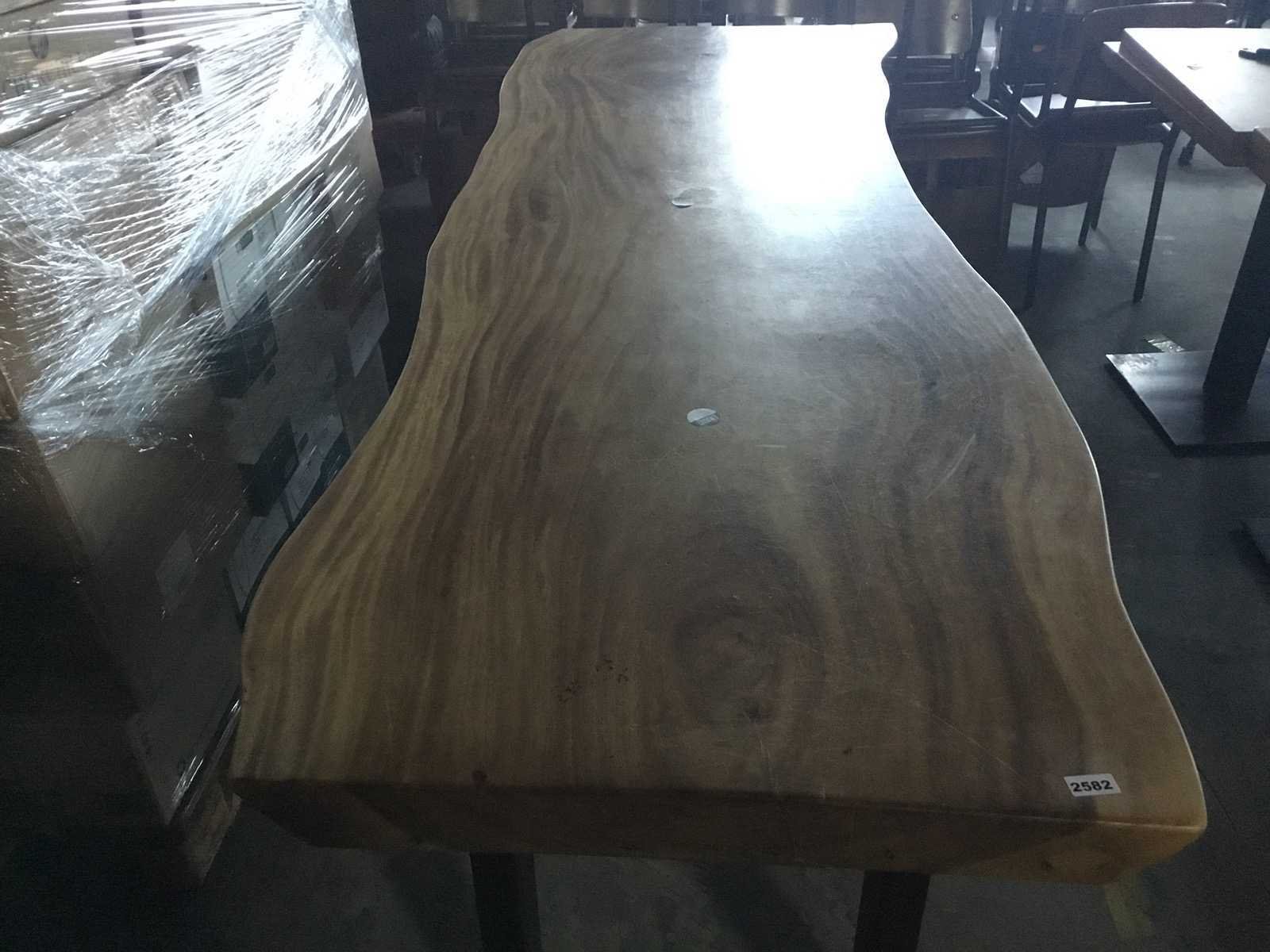 Blad dikte 8 cm. exclusief stoelen. Hout: true Metaal: true Totale afmeting L: 250cm Totale afmeting Breedte: 90cm Totale afmeting Hoogte: 75cm