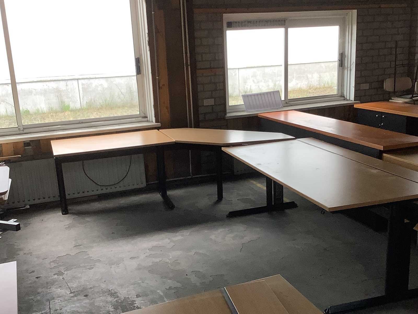 In hoogte verstelbaar. Bestaand uit 3 delen Deel 1: 200x100 cm Deel 2: 120x120 cm Deel 3: 120x80 cm Lengte: 320cm Breedte: 240cm Hoogte: 73cm