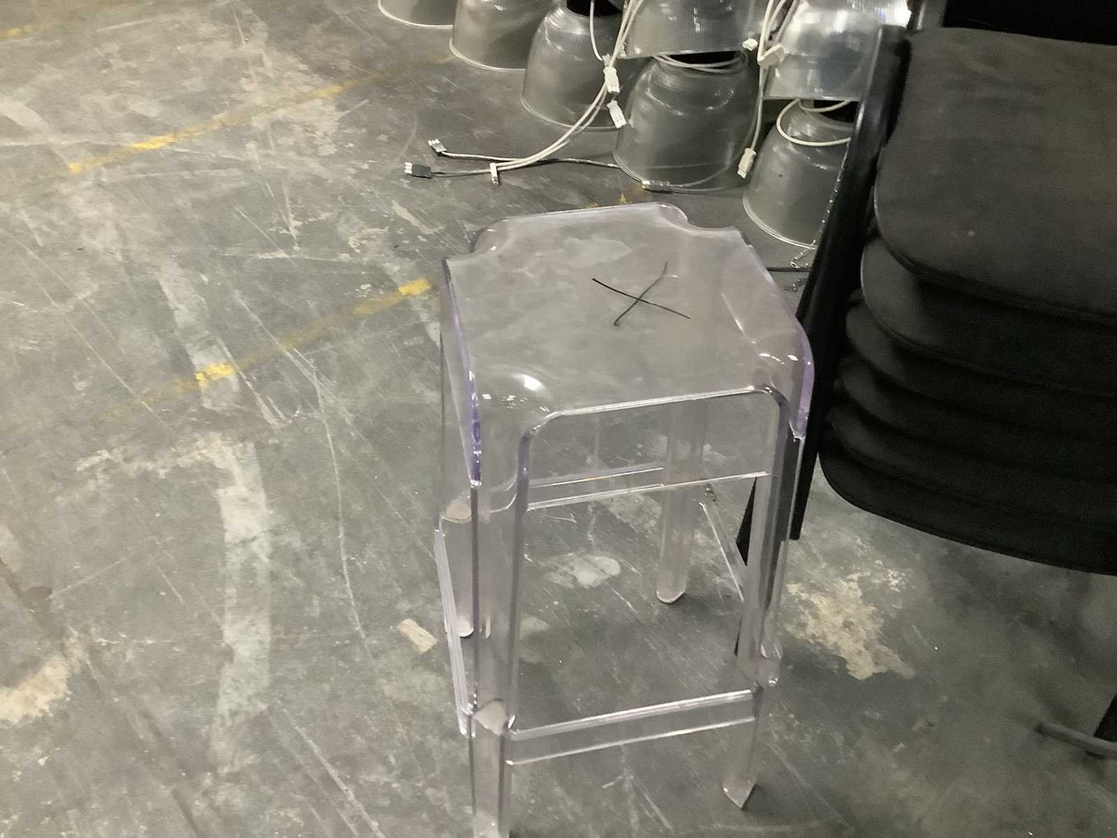 1x witte barkruk klapbaar 1x plastic kruk 6x zwart stoel Merk: Diverse stoelen