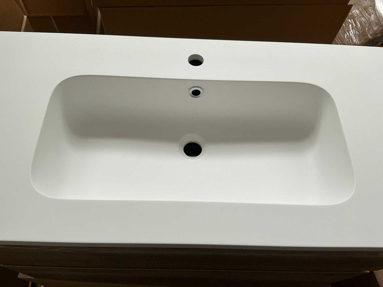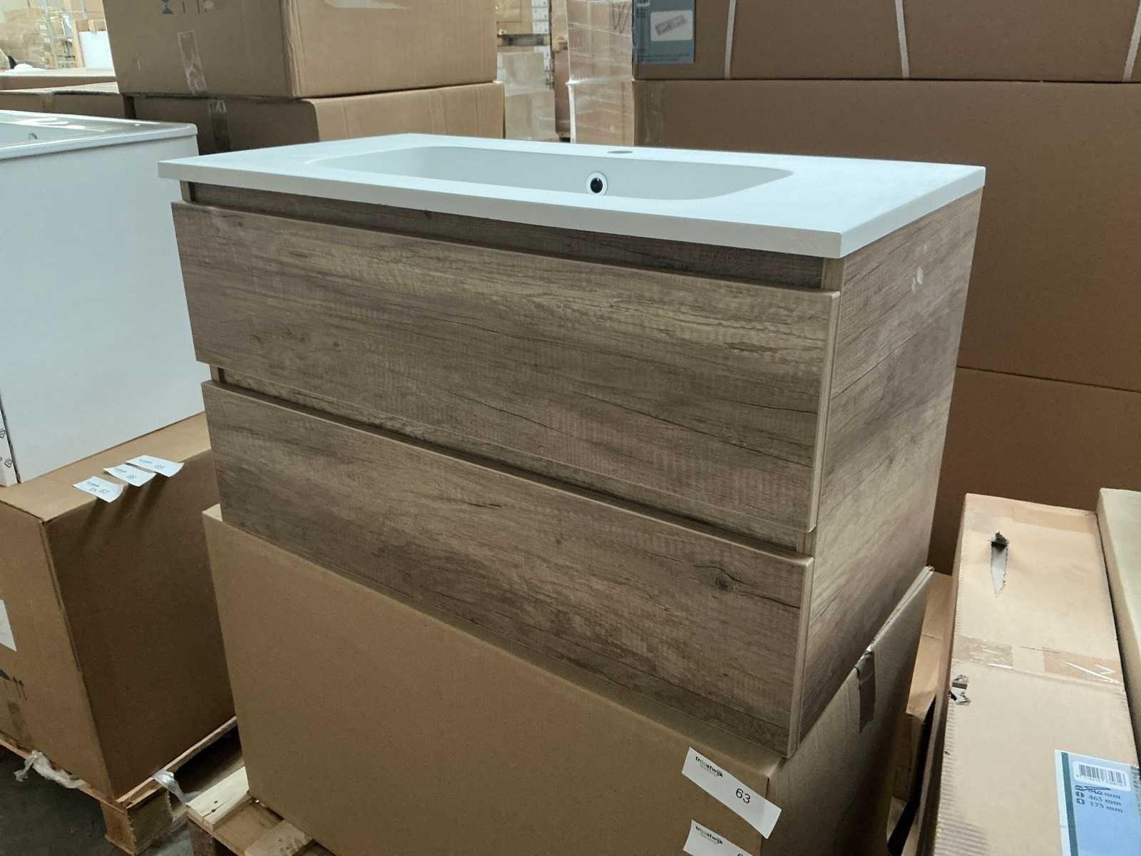 Merk: MB Model: Alvaro Hoogte: 52cm Lengte: 90cm Breedte: 46cm Materiaal: Hout Kleur: Canyon Oak Wastafel: Ja, met kraangat en waste Onderkast: Ja Lades: 2 Softclose: true