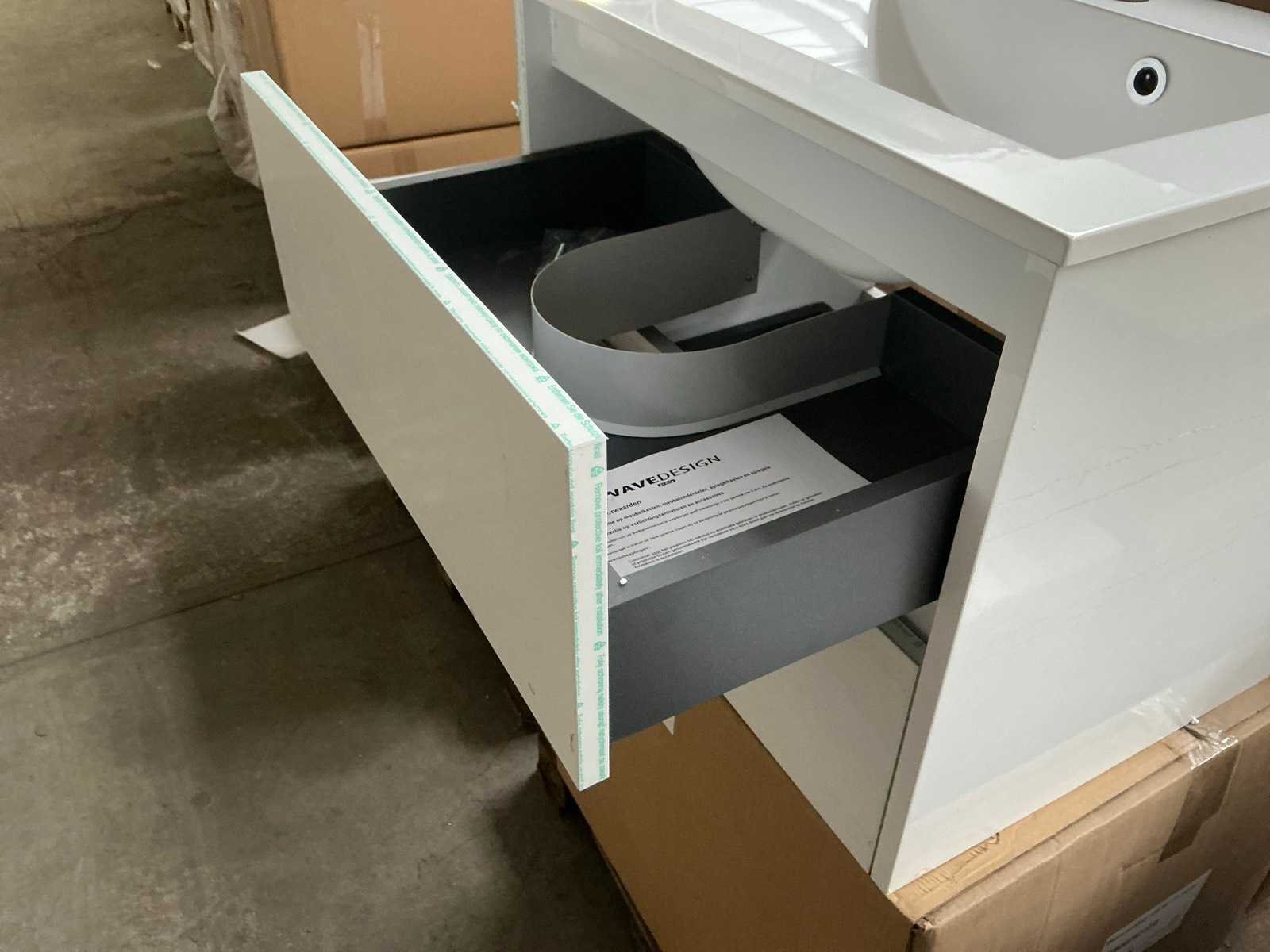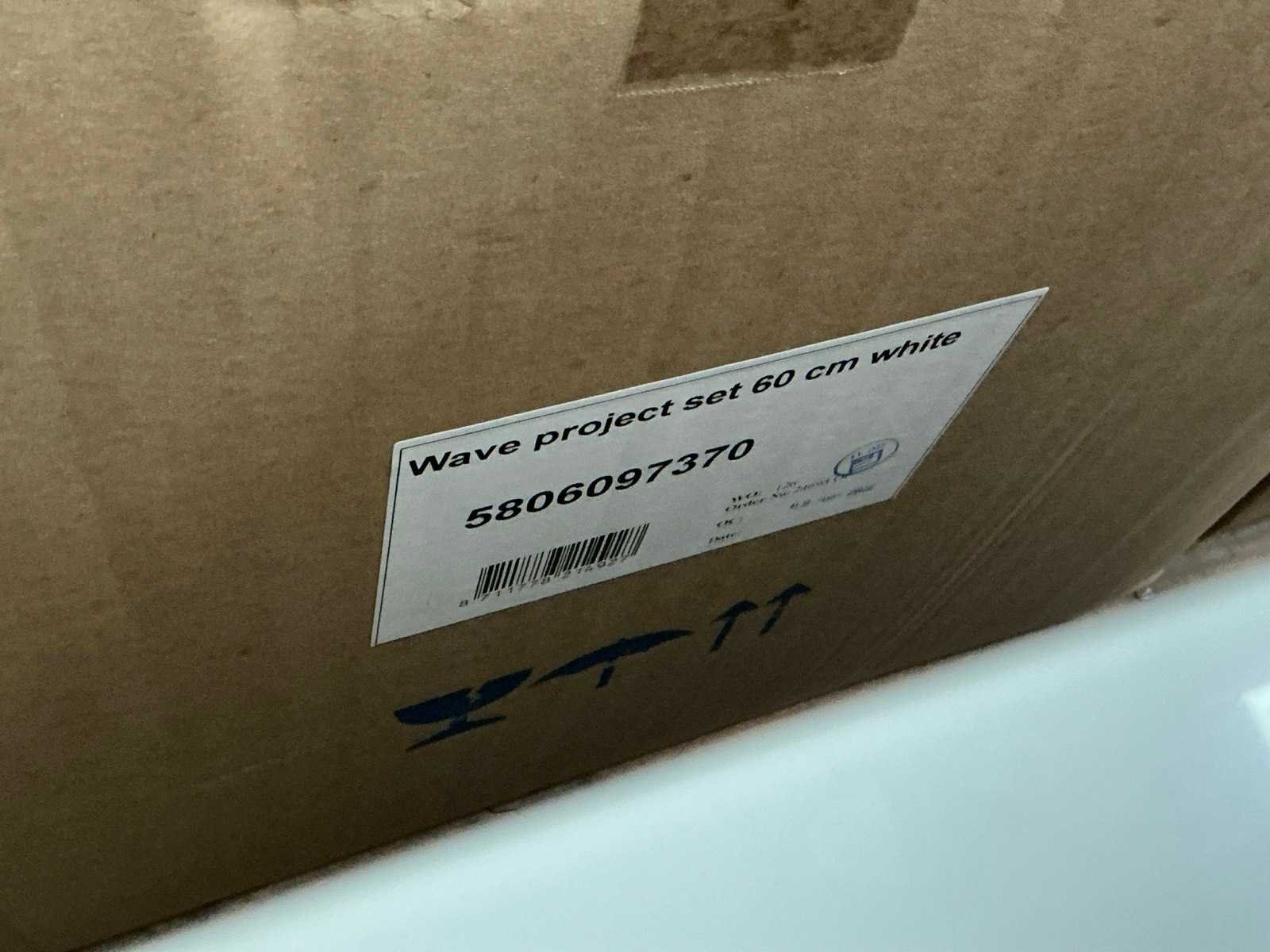 Merk: Wave Model: Project Hoogte: 52cm Lengte: 60cm Breedte: 45cm Materiaal: Hout Kleur: Wit hgl Wastafel: Ja, met kraangat en waste Onderkast: Ja Lades: 2 Softclose: true