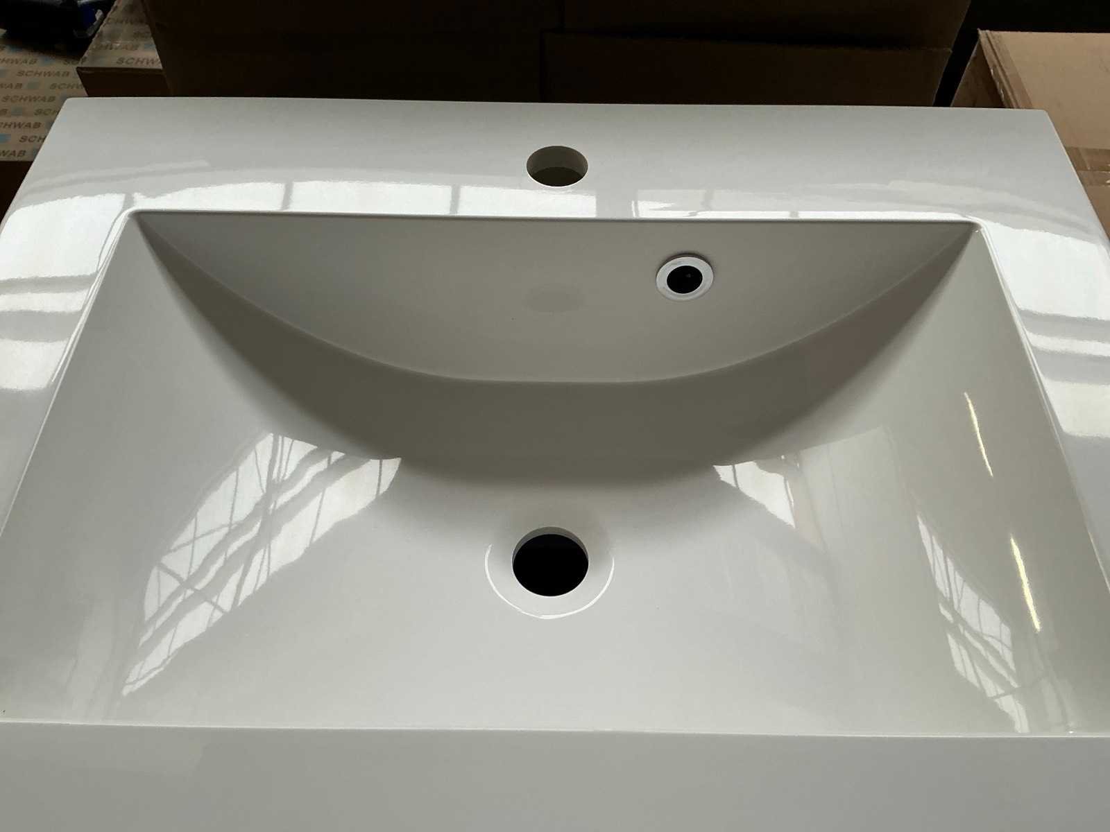 Merk: Wave Model: Project Hoogte: 52cm Lengte: 60cm Breedte: 45cm Materiaal: Hout Kleur: Wit hgl Wastafel: Ja, met kraangat en waste Onderkast: Ja Lades: 2 Softclose: true