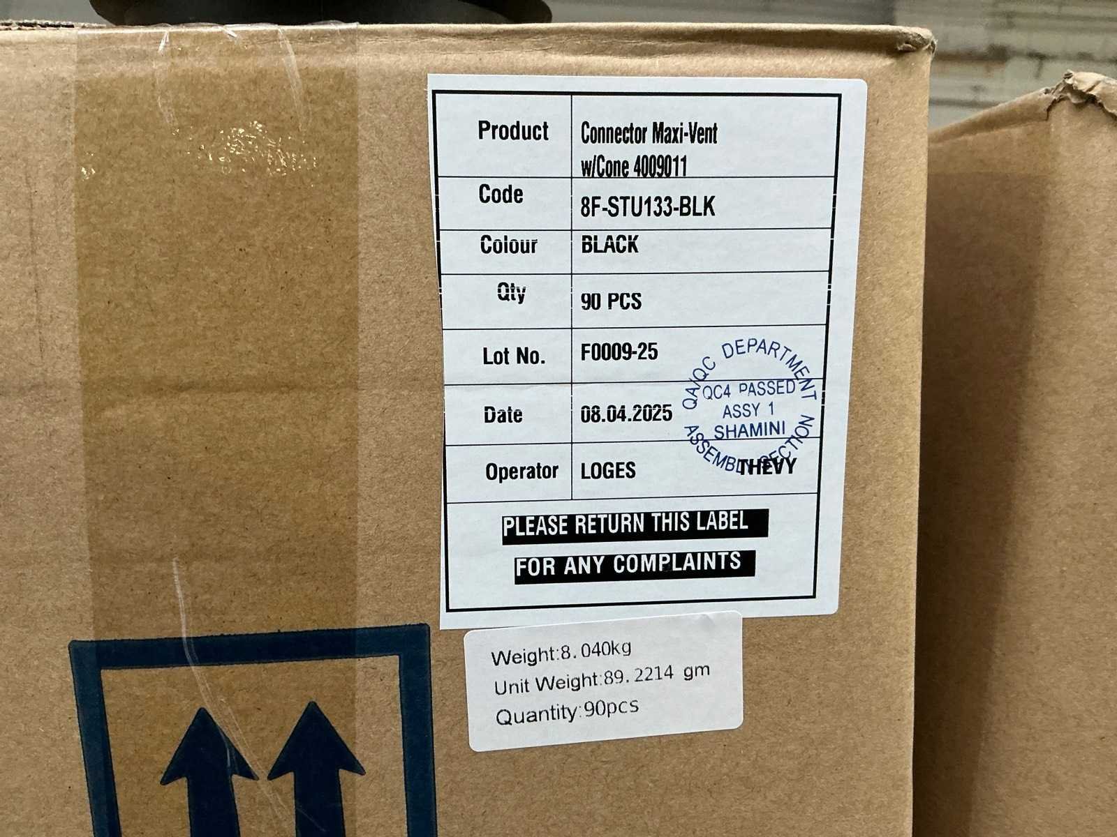 10 dozen a 90 stuks Model: Maxi-vent w/cone 4009011 Kleur: Zwart Lengte: 11cm Breedte: 11cm Hoogte: 5cm Materiaal: Kunststof