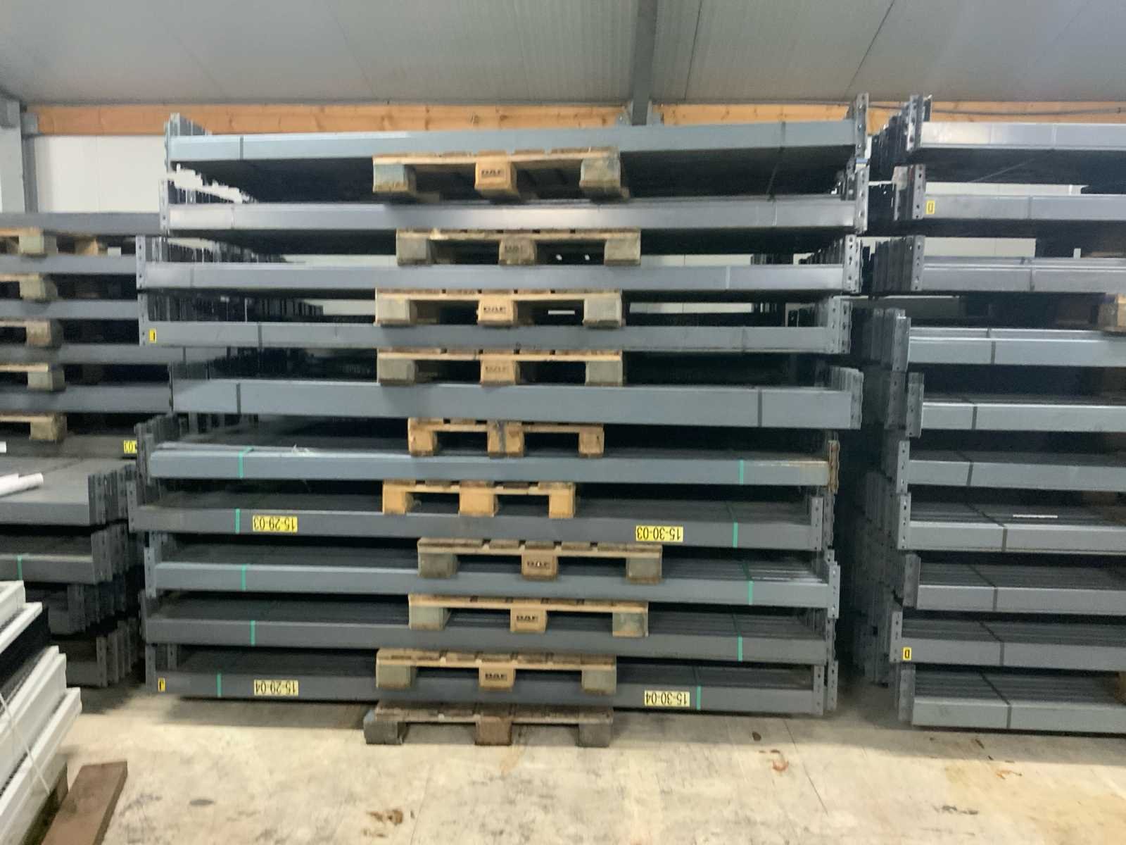 Afmeting ligger: 280x10x5 cm; staander 450x110 cm; inclusief borgpennen; totale lengte circa 28 meter; Merk: Redirack Type: M Sectie afm. b: 1100mm Sectie diepte: 2800mm Sectie afm. h: 4500mm Aantal staanders: 11 Aantal liggers: 60 Demontabel: true Totale afmeting Breedte: 110cm Totale afmeting Hoogte: 450cm Product type: M