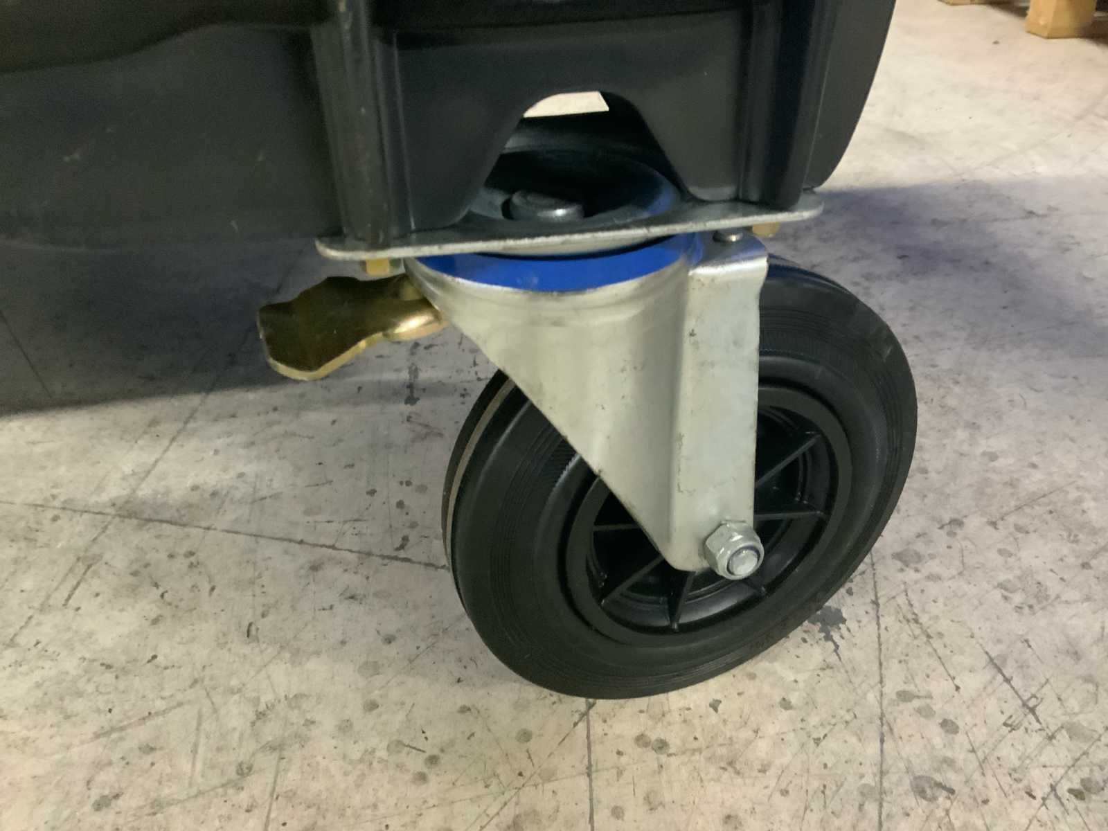 DIN opname. Voorzien van zwenkwielen geremd en stop. “Ongebruikt”; capaciteit 1100 Liter Merk: Plastic Gogic Type: 1100 liter Totale afmeting L: 1200mm Totale afmeting Breedte: 1050mm Totale afmeting Hoogte: 1350mm