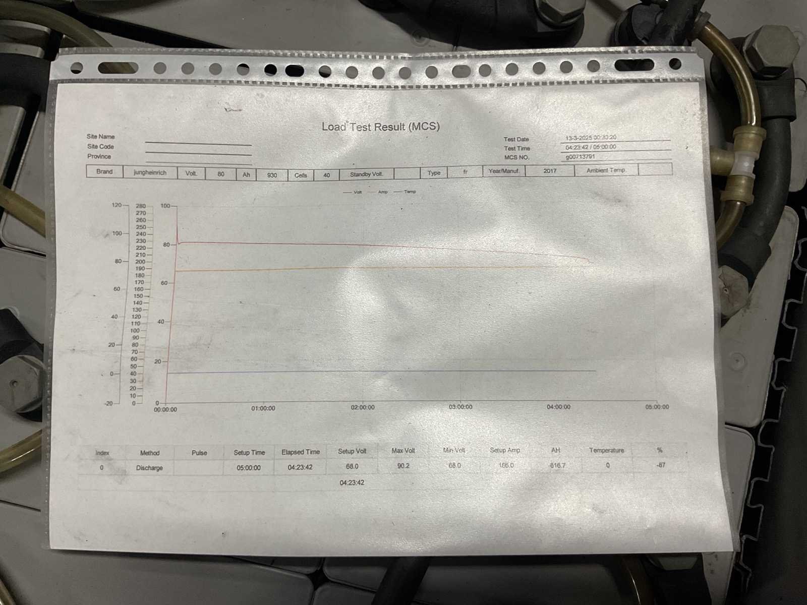 80 Volt; met verrijdbaar frame; Testcapaciteit 87% Merk: Jungheinrich Type: 80 Volt 6 PZS 930 Bouwjaar: 2017 Serienummer: G 00713791 Eigen gewicht: 2170kg Totale afmeting L: 995mm Totale afmeting Breedte: 1025mm Totale afmeting Hoogte: 770mm