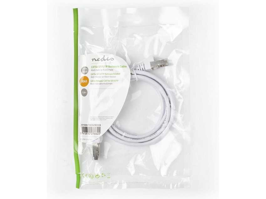 Let op: Dit betreft een nieuw artikel in verpakking. SF/UTP - RJ45 Male - RJ45 Male - 1.50 m - Rond - PVC - Wit Merk: Nedis Model: CAT5e Kleur: Wit
