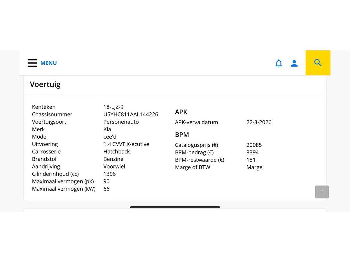 Startonderbreking storing (start niet) Kenteken: 18-LJZ-9 Merk: Kia Model: cee'd Type: 1.4 CVVT X-ecutive Afgelezen kilometerstand: 180116km Cilinderinhoud: 1396cc Vermogen (kW): 66kW Laadvermogen: 0kg NAP status: Logisch Datum eerste toelating: 2010-05-21 Datum eerste toelating (NL): 2010-05-21 APK vervaldatum: 2026-03-22 Aantal zitplaatsen: 5 Kleur: zwart Emissieklasse: 5 Aantal deuren: 4 Ledig gewicht: 1217kg Bruto BPM (NL): 3394€ Aantal cilinders: 4 Carrosserie: mpv Carfax Link: https://was.carfax.eu/v0/api/ccdid/5100016408/svc/201/vinreg/18LJZ9/checksum/eyJhbGciOiJIUzI1NiIsInR5cCI6IkpXVCJ9.eyJleHAiOjE3Njg1NzIwMjB9.uewdLRHTlALjh-L34TE3cyF5zm2Pf8yj3bPwjzCI1sA