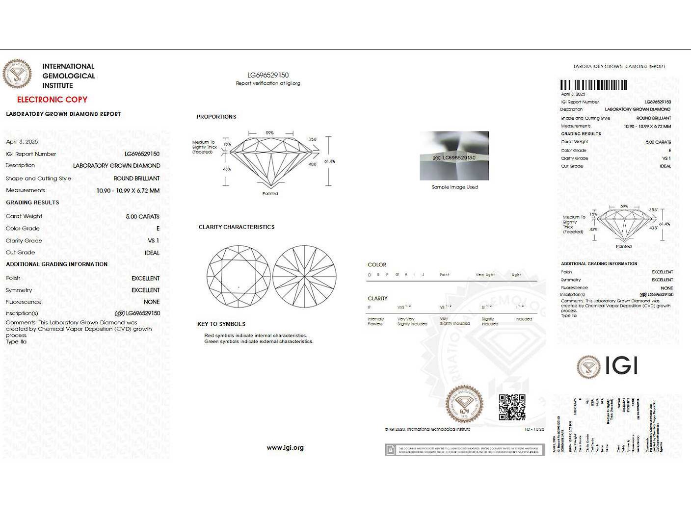 Ongebruikt Vorm: rond Briljant Gewicht: 5,00 CRT Kleur: E Duidelijkheid: VS1 Pools: Uitstekend Symmetrie: Uitstekend 18k wit goud Met IGI-certificaat Bezichtiging op afspraak Materiaal: Witgoud Ringmaat : 53 Totaal gewicht: 315g Certificaat: ja Lage schatting: 9200€