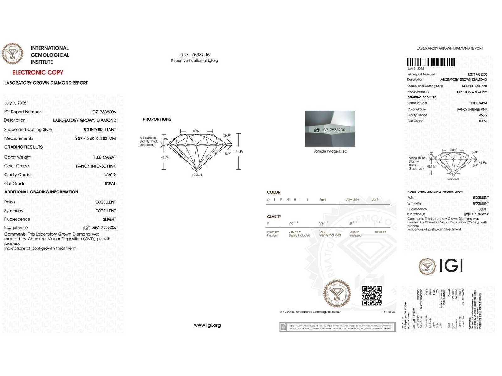 Stone 1: Shape: Round Brilliant Weight: 1.08CT Color: Fancy Intense Pink Clarity: VVS2 Cut: Ideal Polish: Excellent Symmetry: Excellent Fluorescence: Slight Laser inscription IGI: LG717538206 Stone 2: Shape: Round Brilliant Weight: 1.00CT Color: Fancy Intense Pink Clarity: VVS2 Cut: Ideal Polish: Excellent Symmetry: Excellent Fluorescence: Strong Laser inscription IGI: LG712507187 Studs Weight: 1.38 gr. Metal: White Gold Purity: 14kt (585) Bezichtiging op afspraak Materiaal: Witgoud Certificaat: Ja Lage schatting: 3300€