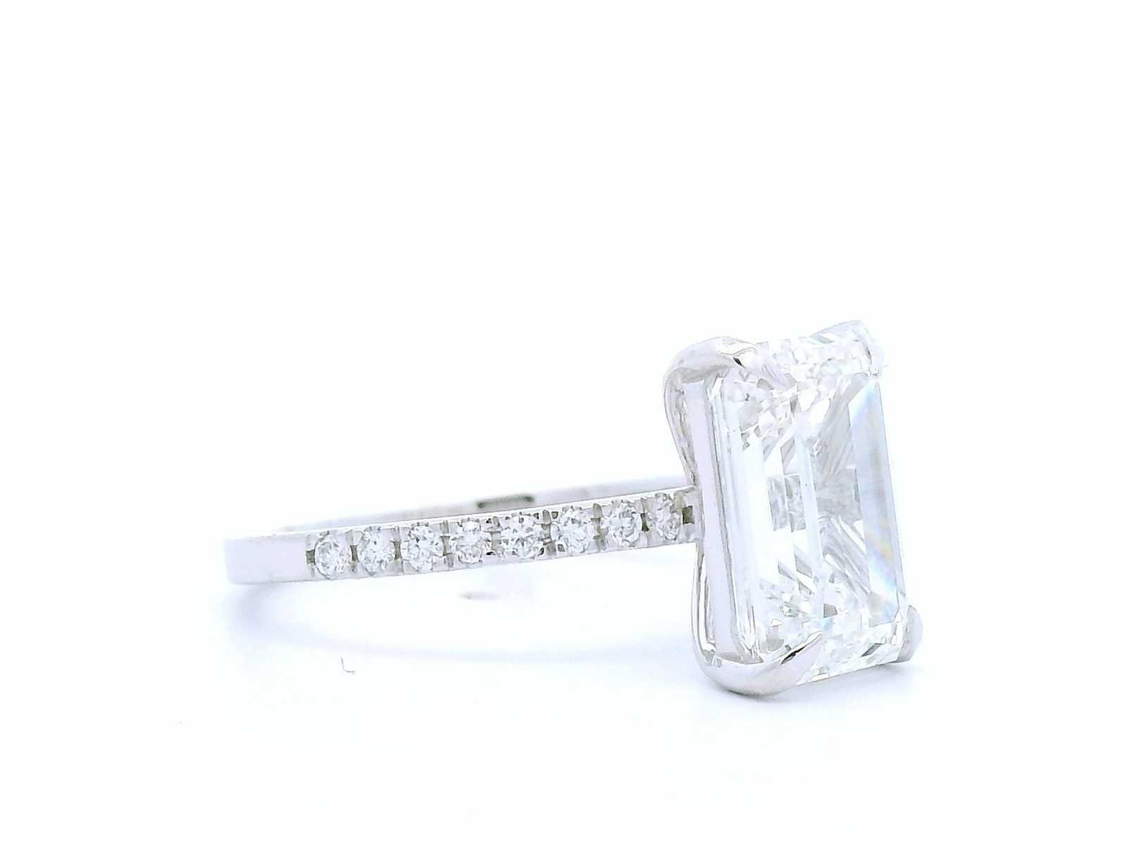 Exclusieve 18K witgouden ring Rapportnummer IGI: LG728535696 Total Carat - 4.23 Vorm: Emerald Cut Gewicht van de hoofdsteen: 4,04 CT Kleur: E Helderheid: VS1 Snede: uitstekend Symmetrie: uitstekend Omringende steen - 0,19 karaat (16 stuks) Totaal aantal karaat - 4,23 karaat Totale ringgewicht: 3,33 gram Zal worden geleverd met IGI-certificaat Bezichtiging op afspraak Materiaal: Witgoud Ringmaat : 56 Certificaat: Ja Lage schatting: 8000€
