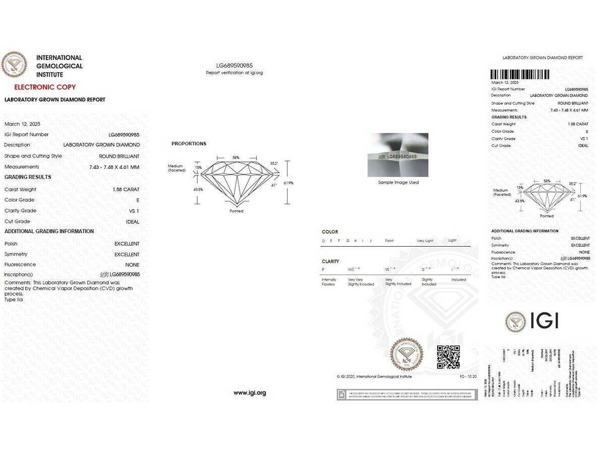 Witgoud Zuiverheid: 14K Gewicht: 2,79 gram Hoofdsteen: Rond Brilliant Karaat: 1,58 Kleur: E Helderheid: VS1 IGI Certificaat: LG689590985 Bijstenen: Geslepen: Rond Brilliant Hoeveelheid: 10 Carat: 0.48 Ringmaat: 54 (EU) / 7 (VS) Bezichtiging op afspraak Materiaal: Witgoud Ringmaat : 54 Certificaat: ja Lage schatting: 3200€