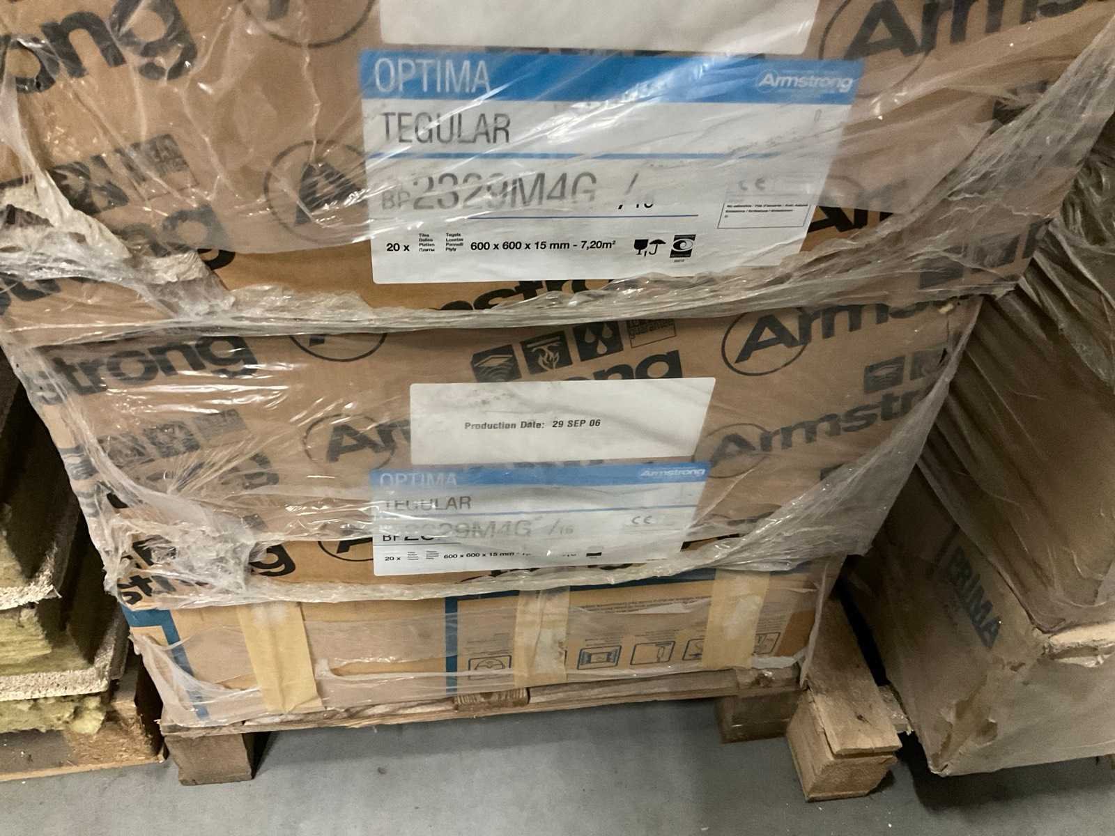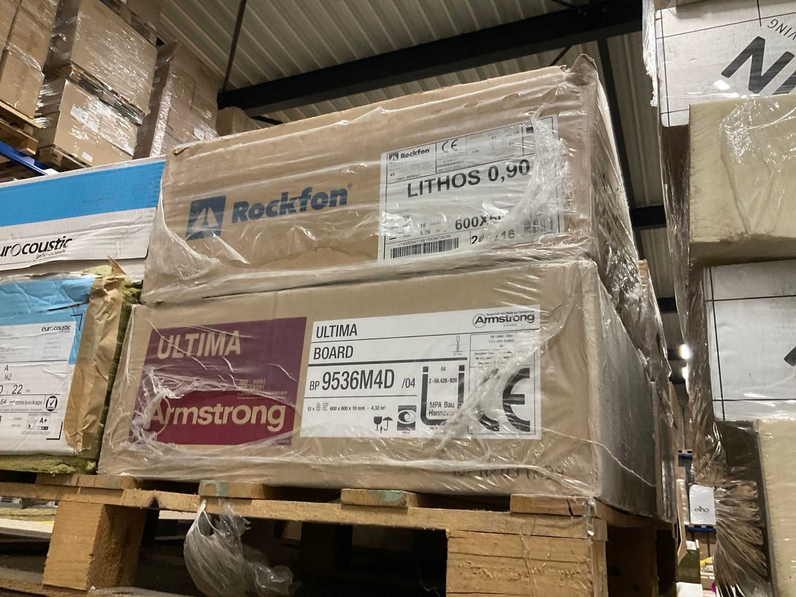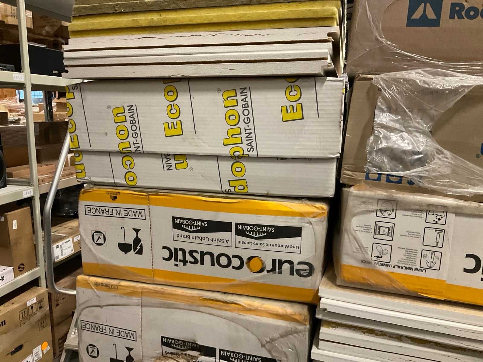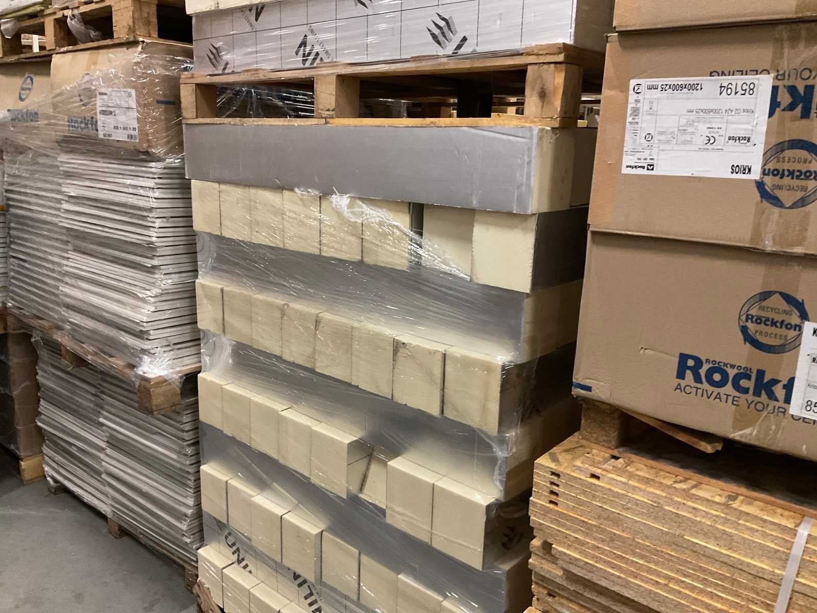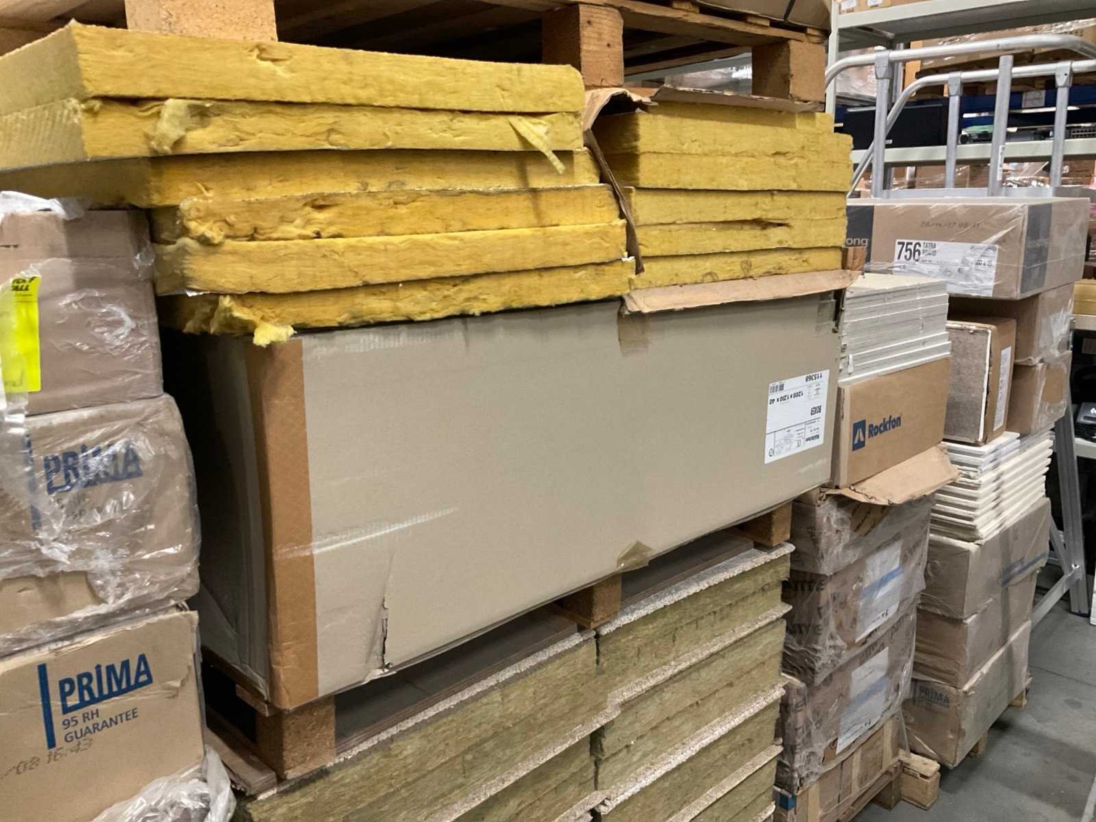 Bestaande uit plafondplaten, diverse isolatie, underlayment. Groot volume, ca. 12 pallets
