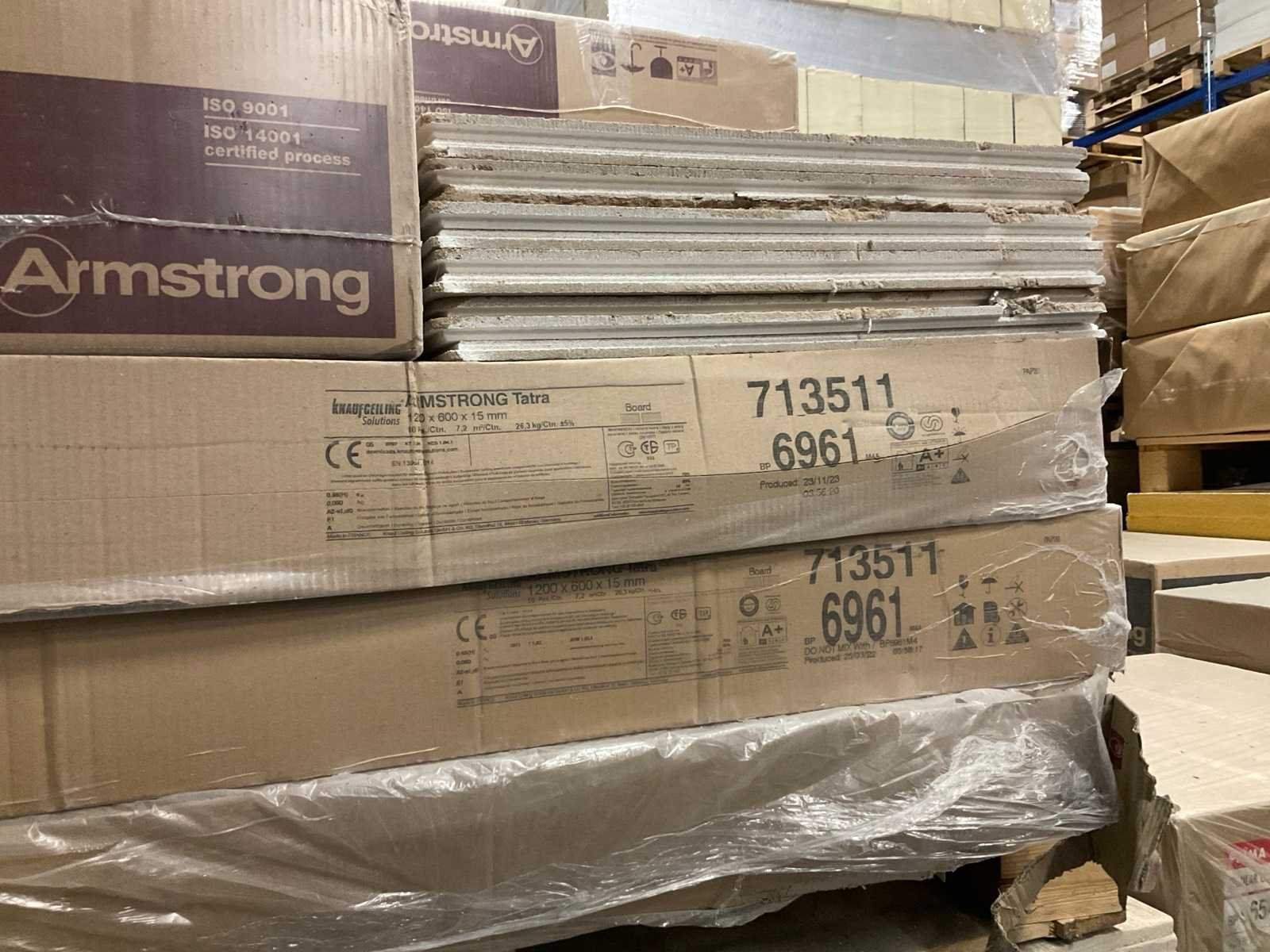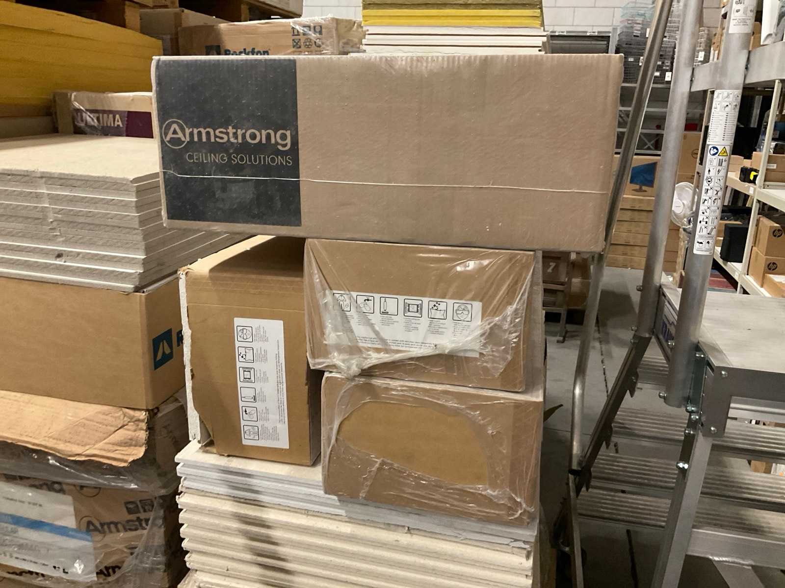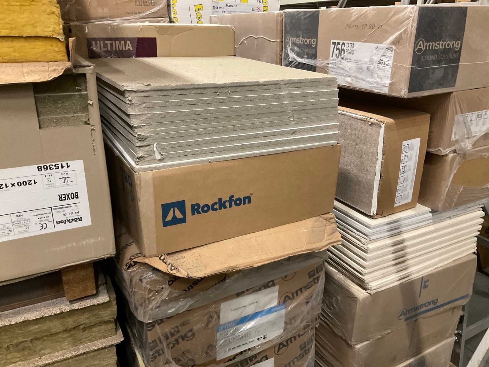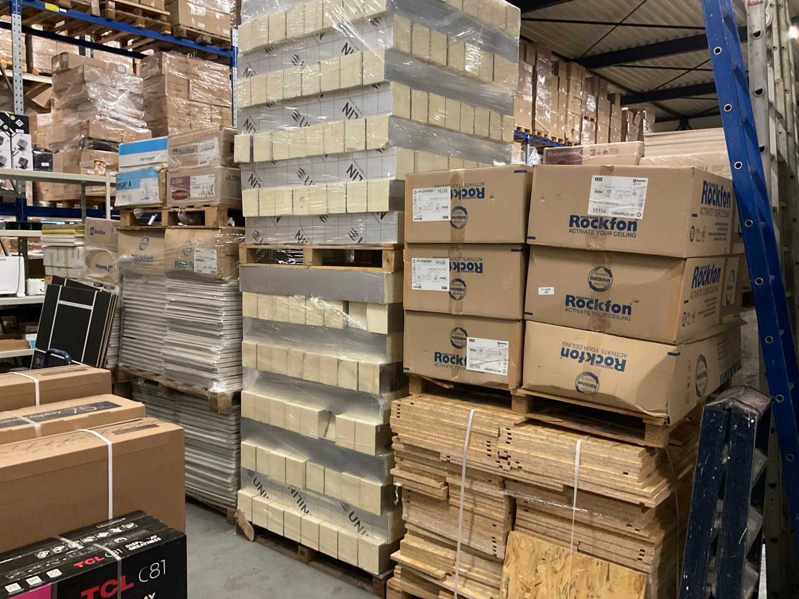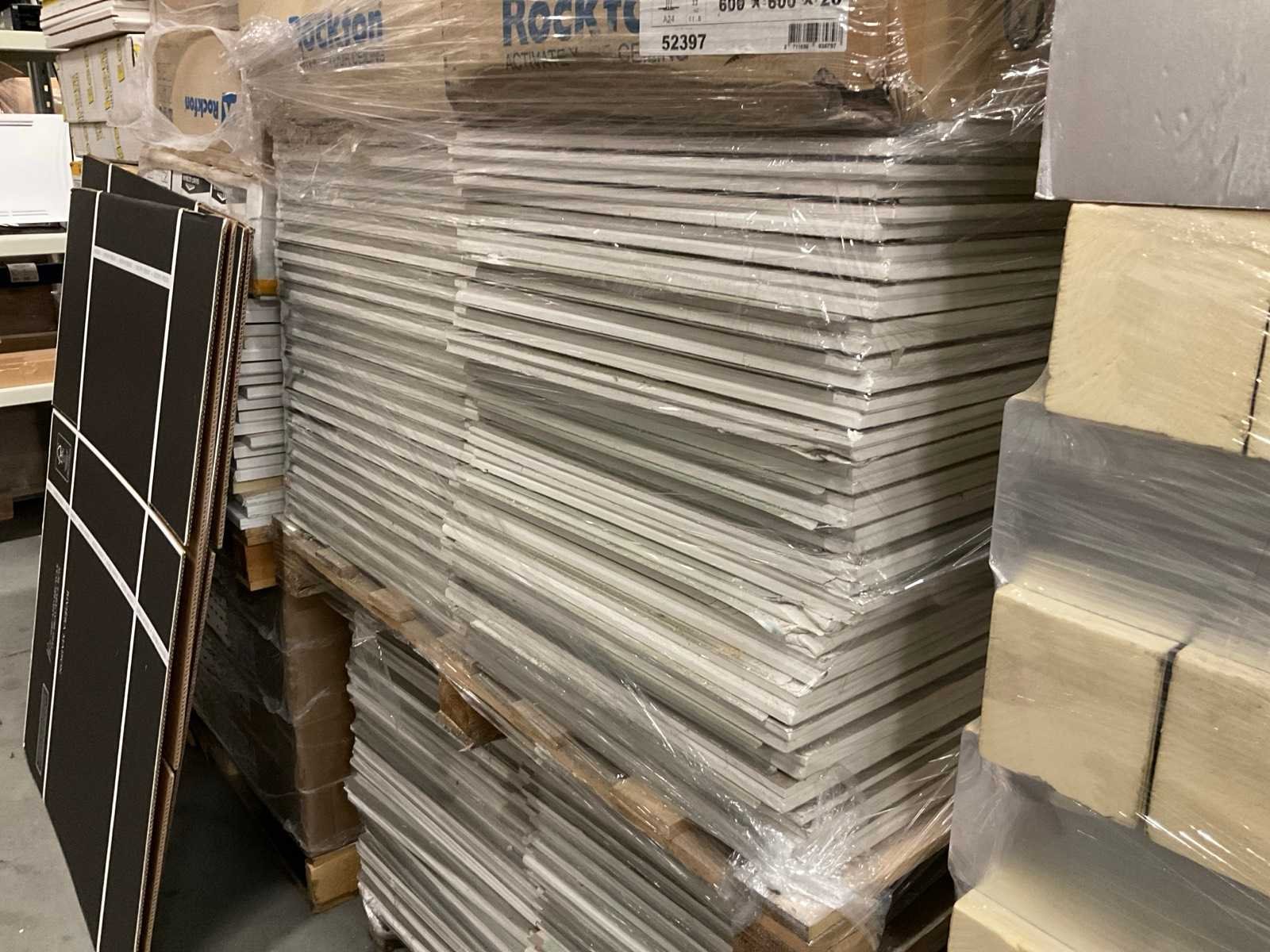 Bestaande uit plafondplaten, diverse isolatie, underlayment. Groot volume, ca. 12 pallets