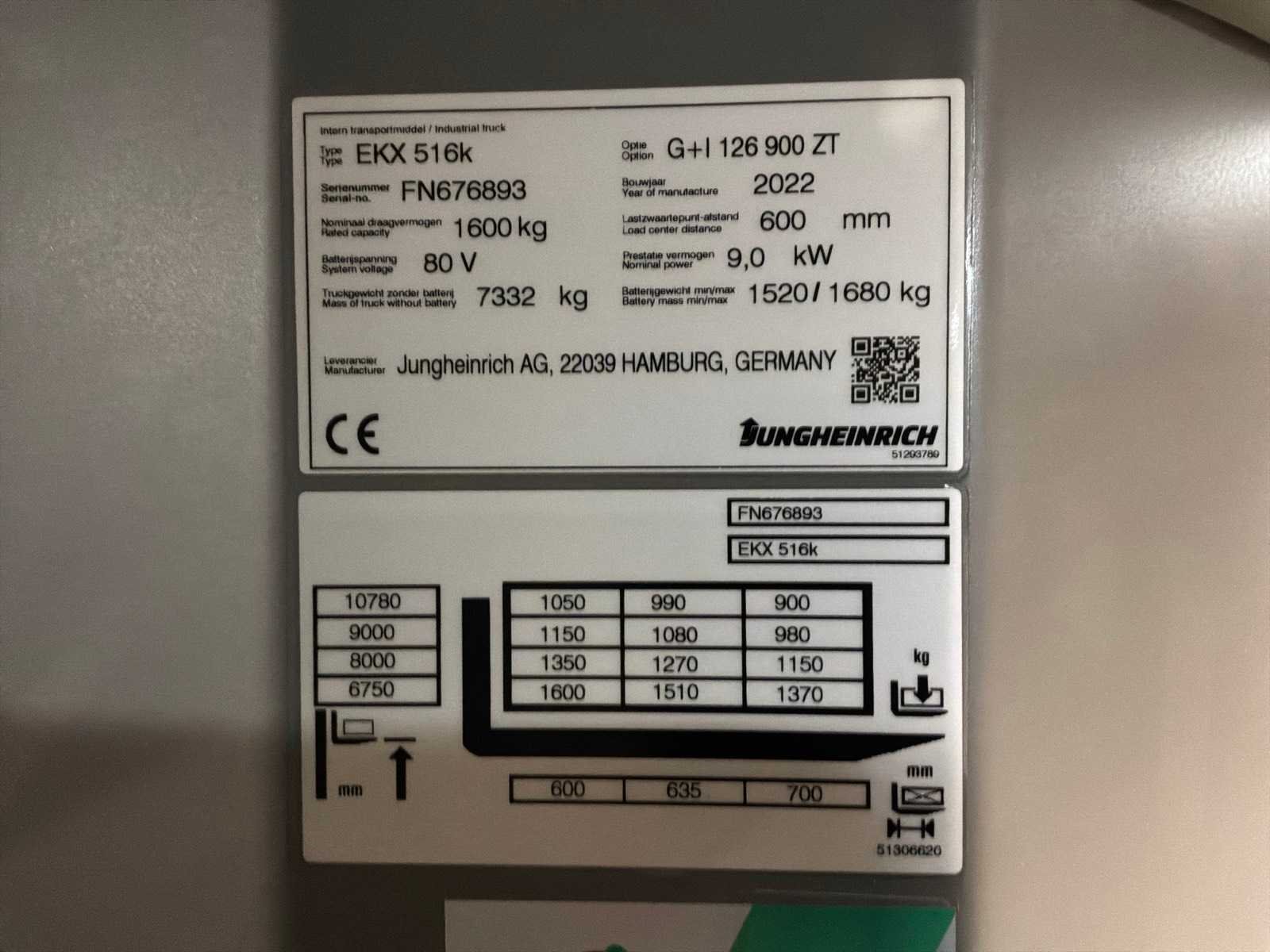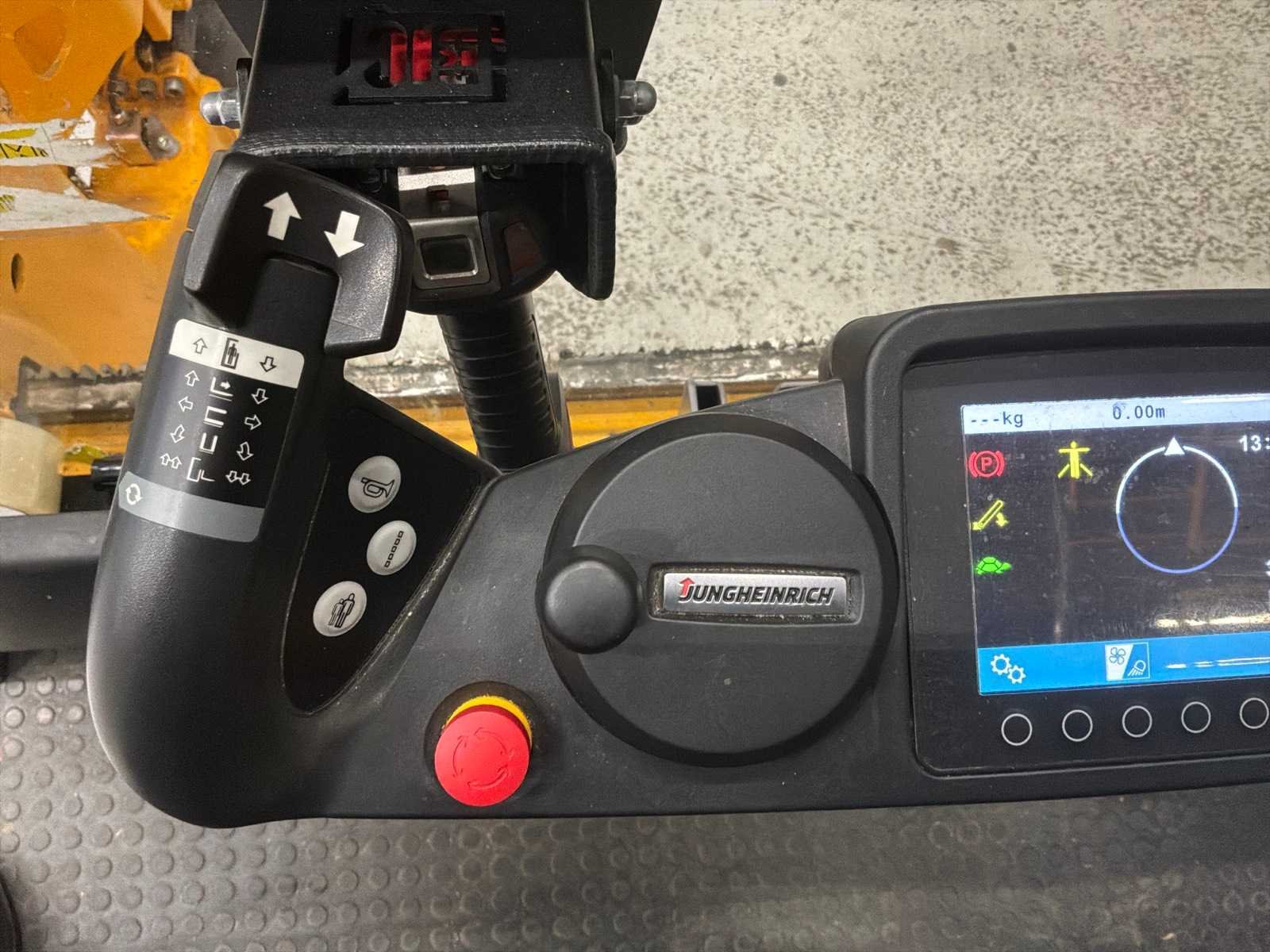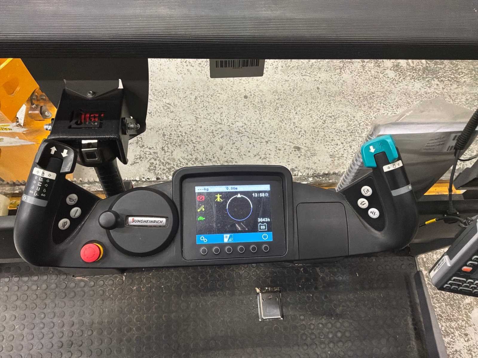 Voorzien van : camera met display, blue-spot, HoneyWell Thor VM1A Android tablet, barcode scanner, usb poort, ventilatie en zebra ZQ521 labelprinter. Merk: Jungheinrich Bouwjaar: 2022 Serienummer: FN676893 Afgelezen urenstand: 3634 Accu lader: true Side-shift: true Triple mast: true Eigen gewicht: 7332kg Hefvermogen: 1600kg Lepellengte: 1260mm Max. hefhoogte: 10780mm Totale afmeting L: 3775mm Totale afmeting Breedte: 1650mm Totale afmeting Hoogte: 5886mm Elektrisch: true Vol rubber banden: true