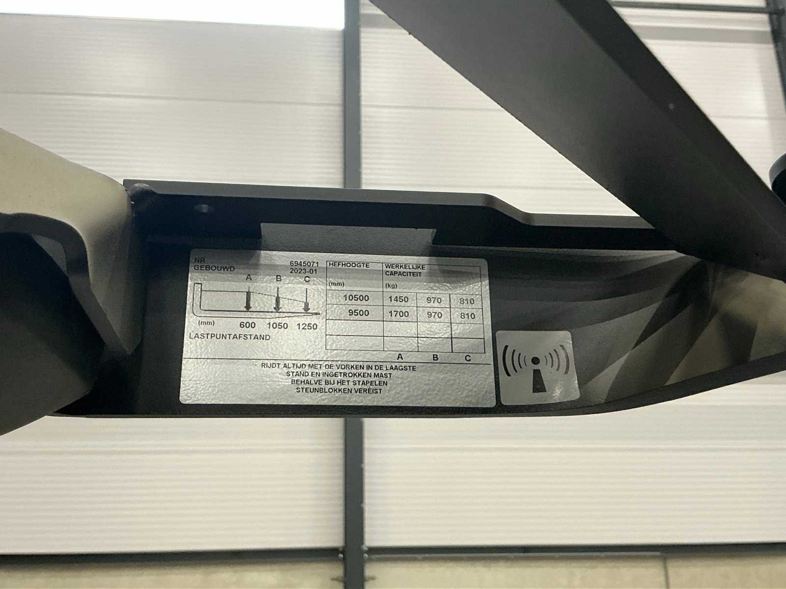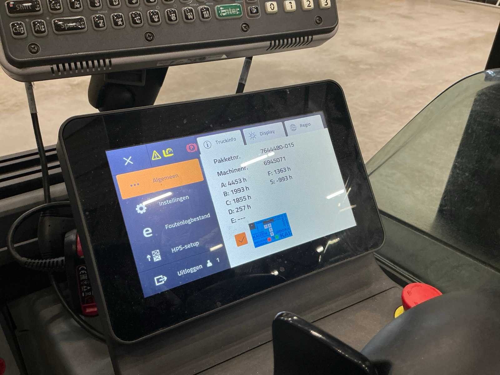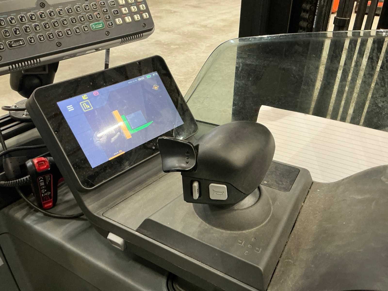 Voorzien van: Kooi REE2 uitschuifbare lepels (tot 2000 mm), camera met display (defect), blue-spot, digitaal touchscreen display, HoneyWell Thor VM1A Android tablet, HoneyWell barcode scanner, Zebra ZQ521 labelprinter en display met hoogtemeter en gewichtsaflezing. Merk: Toyota Bouwjaar: 2023 Serienummer: 6945071 Afgelezen urenstand: 4453 Accu lader: true Side-shift: true Duplex mast: true Eigen gewicht: 3848kg Hefvermogen: 2000kg Lepellengte: 1250mm Max. hefhoogte: 10500mm Totale afmeting L: 2500mm Totale afmeting Breedte: 1280mm Totale afmeting Hoogte: 4150mm Elektrisch: true