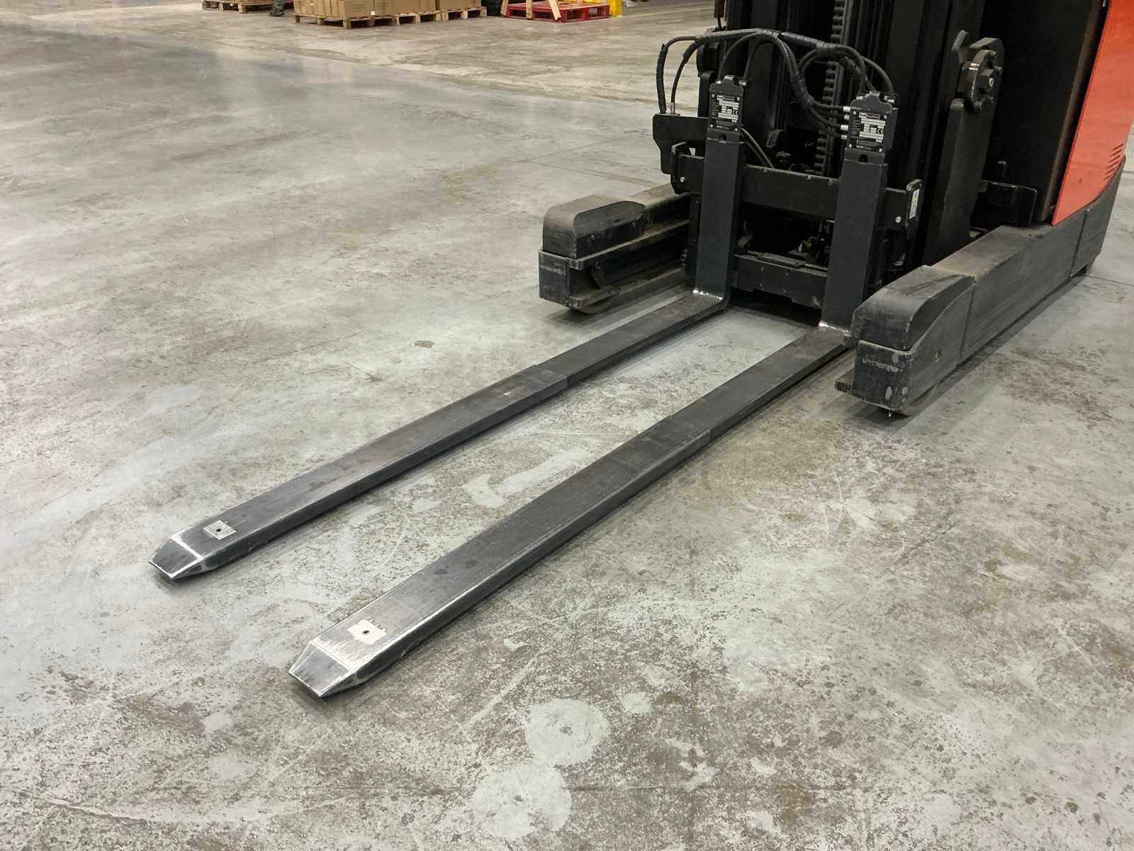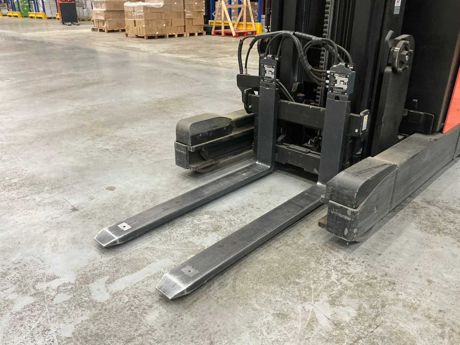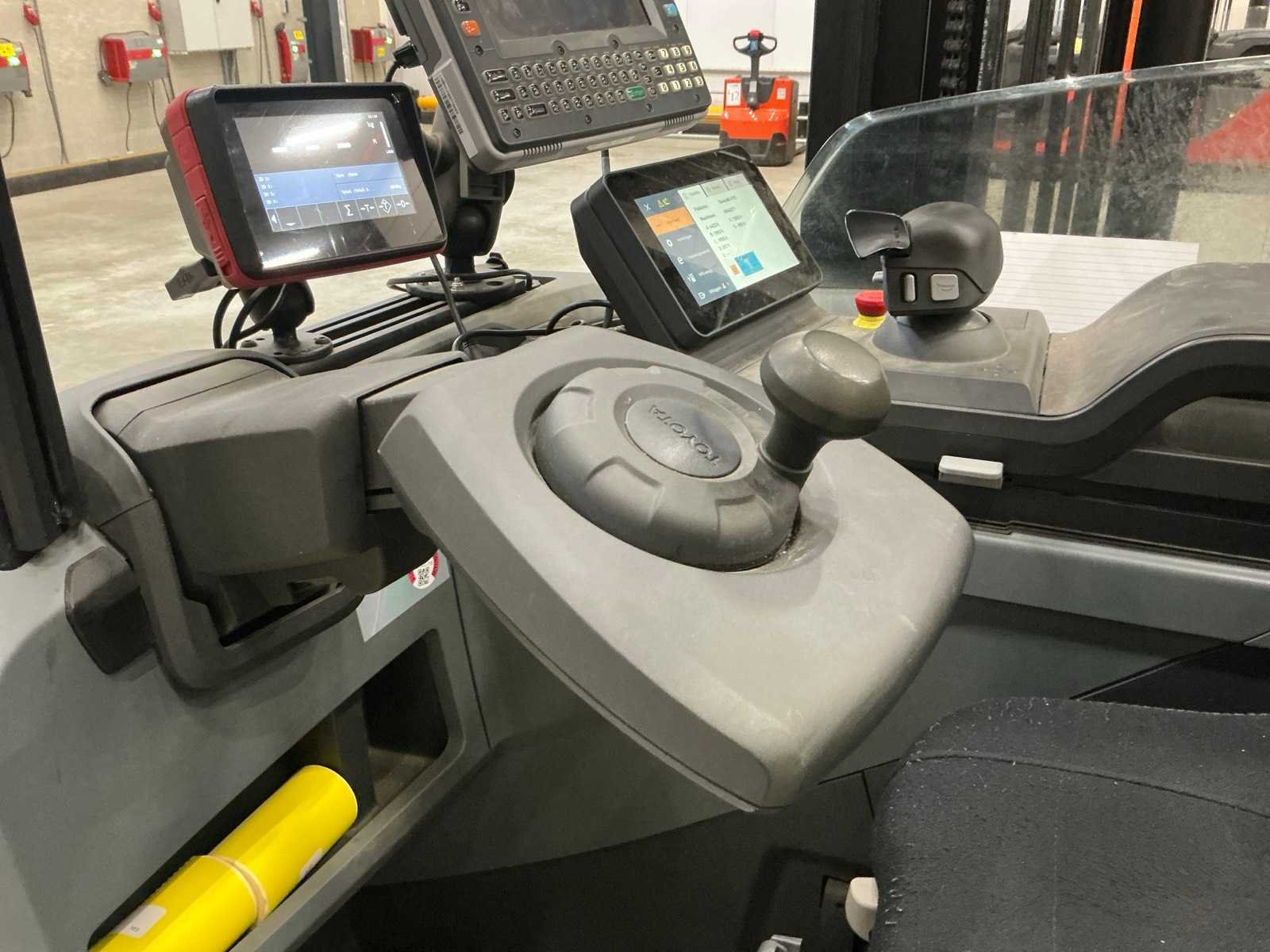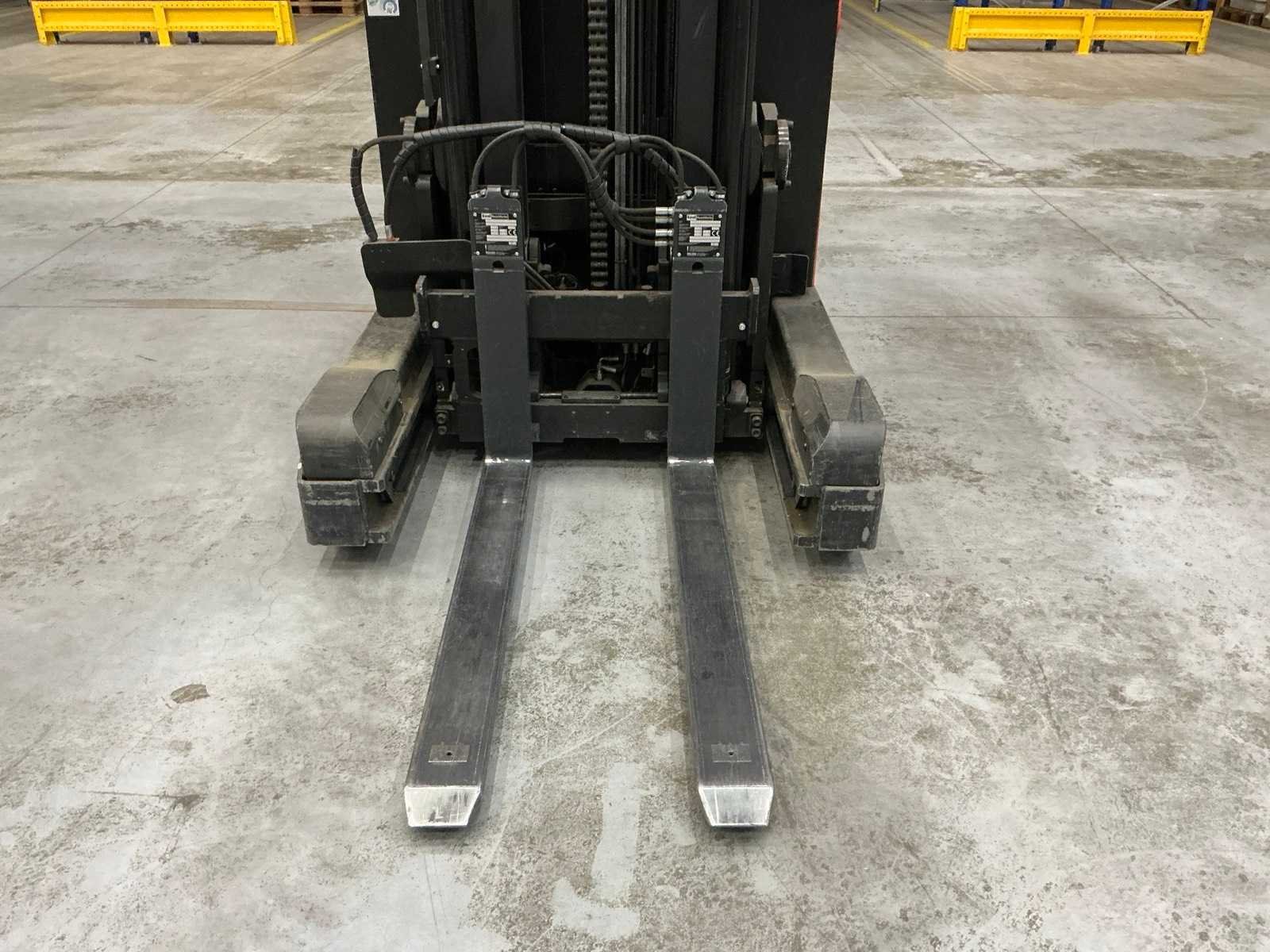 Voorzien van: Kooi REE2 uitschuifbare lepels (tot 2000 mm), camera met display (defect), blue-spot, digitaal touchscreen display, HoneyWell Thor VM1A Android tablet, HoneyWell barcode scanner, Zebra ZQ521 labelprinter en display met hoogtemeter en gewichtsaflezing. Merk: Toyota Bouwjaar: 2023 Serienummer: 6945071 Afgelezen urenstand: 4453 Accu lader: true Side-shift: true Duplex mast: true Eigen gewicht: 3848kg Hefvermogen: 2000kg Lepellengte: 1250mm Max. hefhoogte: 10500mm Totale afmeting L: 2500mm Totale afmeting Breedte: 1280mm Totale afmeting Hoogte: 4150mm Elektrisch: true