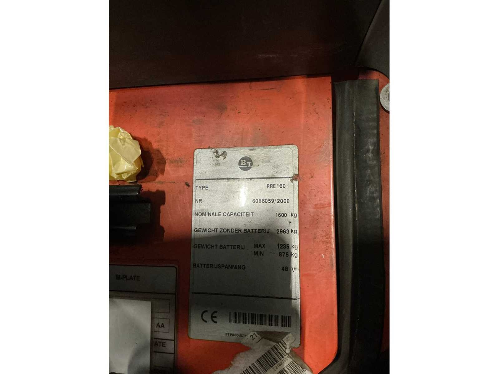 Voorzien van: blue-spot, digitaal display, zebra ZQ521 labelprinter en display met hoogtemeter en gewichtsaflezing Merk: BT Bouwjaar: 2009 Serienummer: 6086059 Afgelezen urenstand: 16300 Side-shift: true Duplex mast: true Eigen gewicht: 2963kg Hefvermogen: 1600kg Lepellengte: 1190mm Max. hefhoogte: 9500mm Minimale doorrijhoogte: 3900mm Totale afmeting L: 2500mm Totale afmeting Breedte: 1280mm Totale afmeting Hoogte: 3900mm Elektrisch: true Vol rubber banden: true