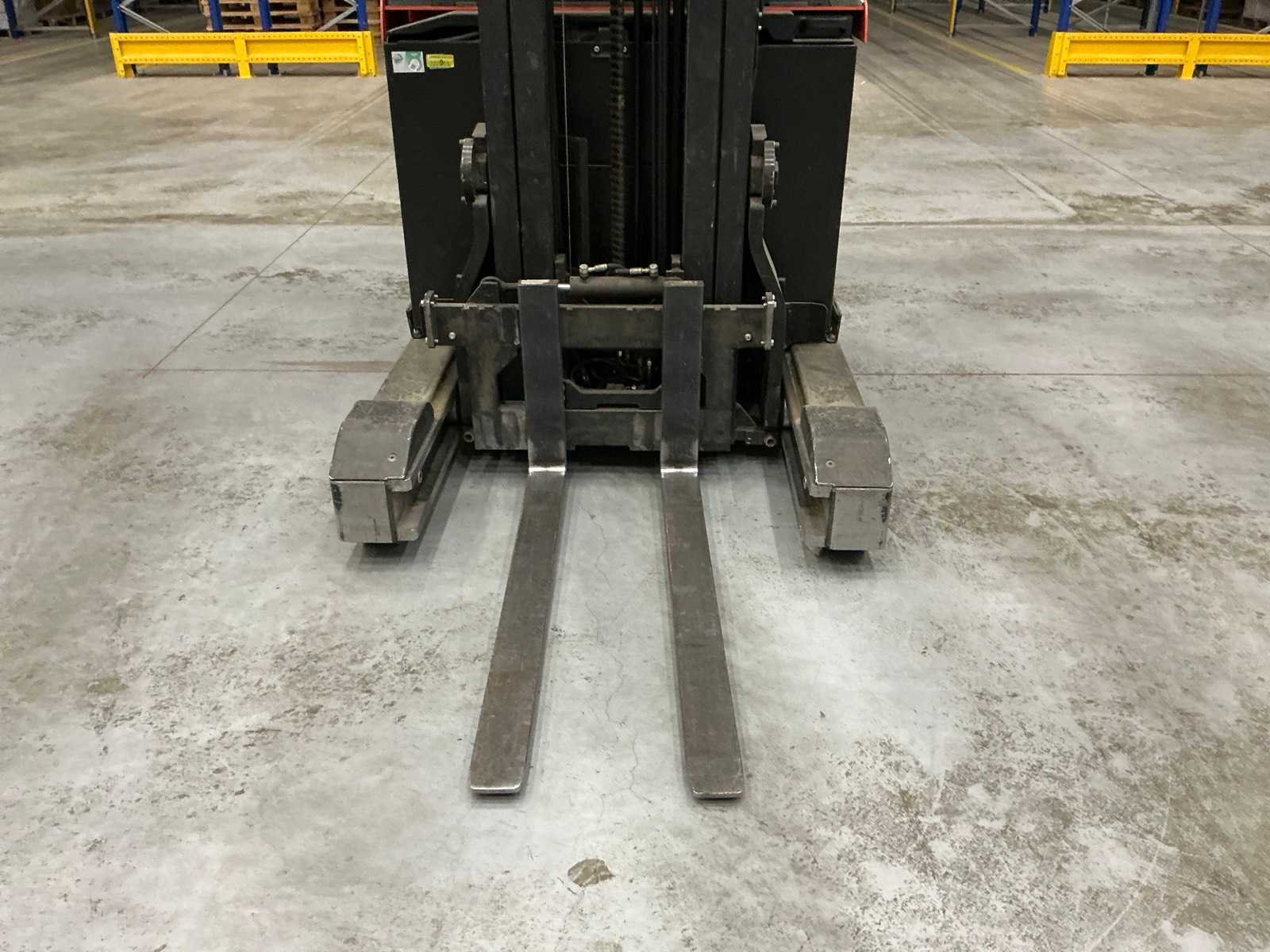 Voorzien van: blue-spot, display met hoogtemeter en gewichtsaflezing. Merk: BT Bouwjaar: 2009 Serienummer: 6086065 Afgelezen urenstand: 13769 Side-shift: true Duplex mast: true Eigen gewicht: 2963kg Hefvermogen: 1600kg Lepellengte: 1150mm Max. hefhoogte: 9500mm Totale afmeting L: 2500mm Totale afmeting Breedte: 1270mm Totale afmeting Hoogte: 3900mm Elektrisch: true