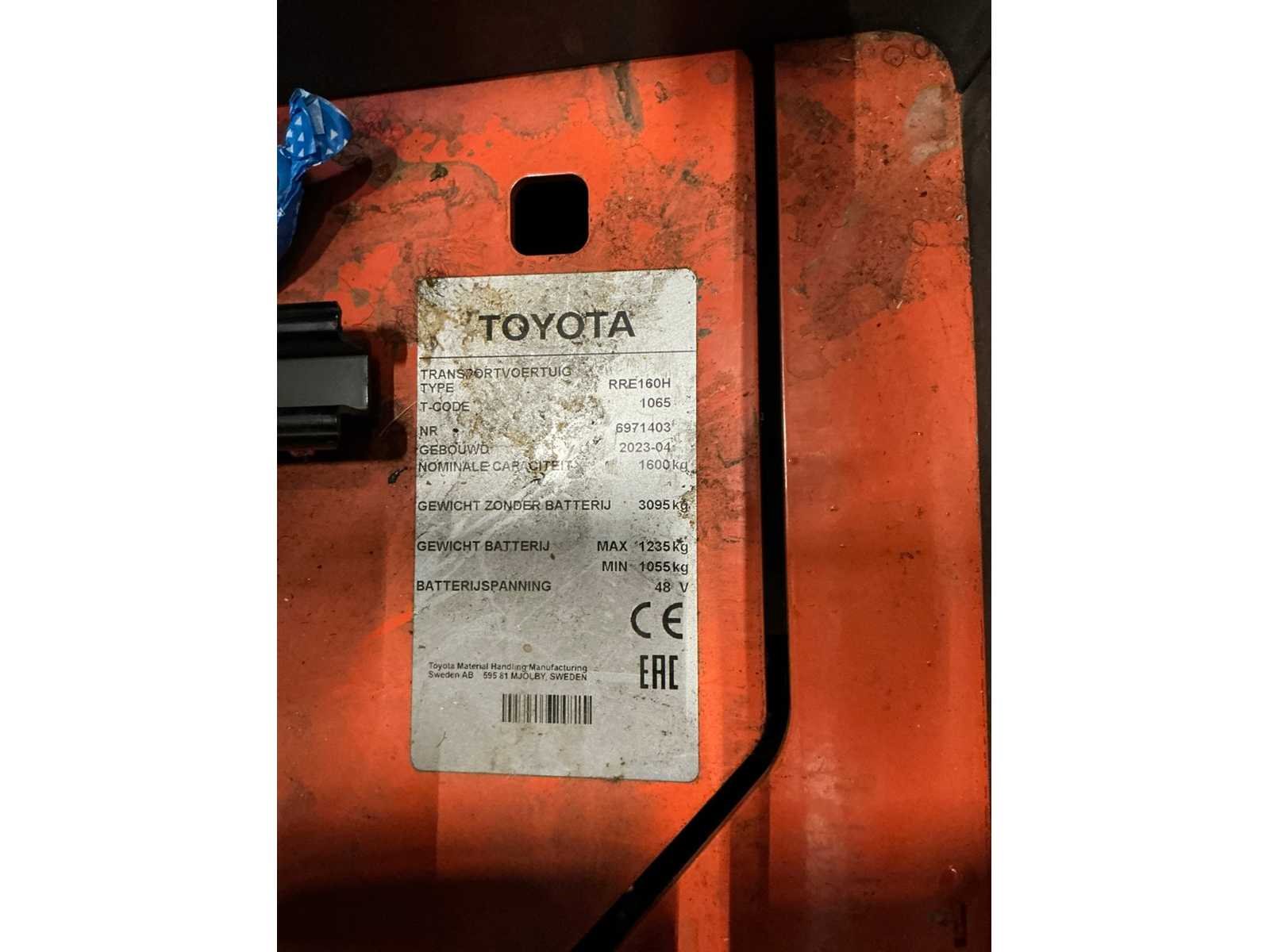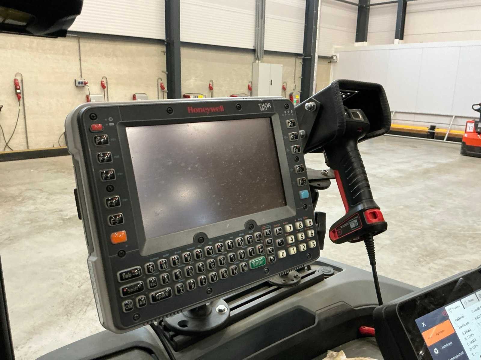 Voorzien van: camera met display, blue-spot, digitaal touchscreen display, HoneyWell Thor VM1A Android tablet, HoneyWell barcode scanner en Zebra ZQ521 labelprinter. Merk: Toyota Bouwjaar: 2023 Serienummer: 6971403 Afgelezen urenstand: 2868 Accu lader: true Side-shift: true Hydraulisch verstelbare lepels: true Hefvermogen: 1600kg Max. hefhoogte: 10500mm Totale afmeting L: 2500mm Totale afmeting Breedte: 1280mm Totale afmeting Hoogte: 4070mm Elektrisch: true Vol rubber banden: true