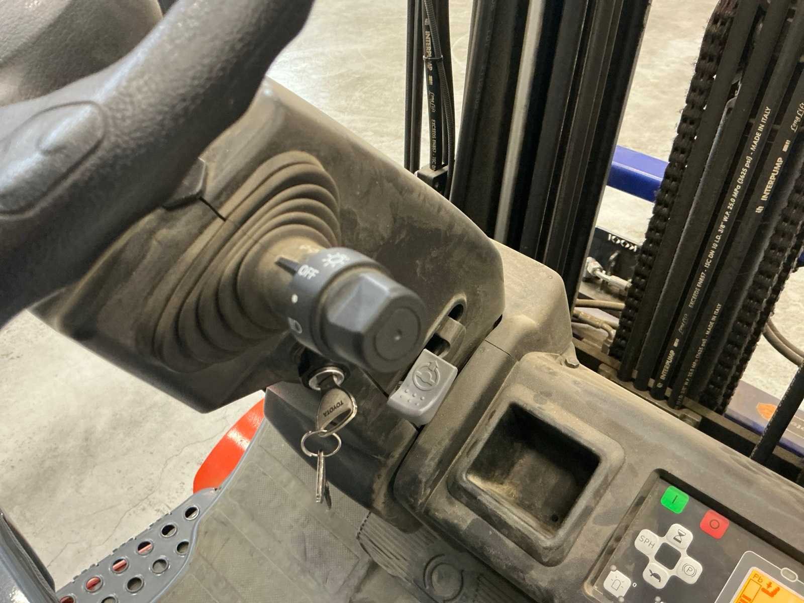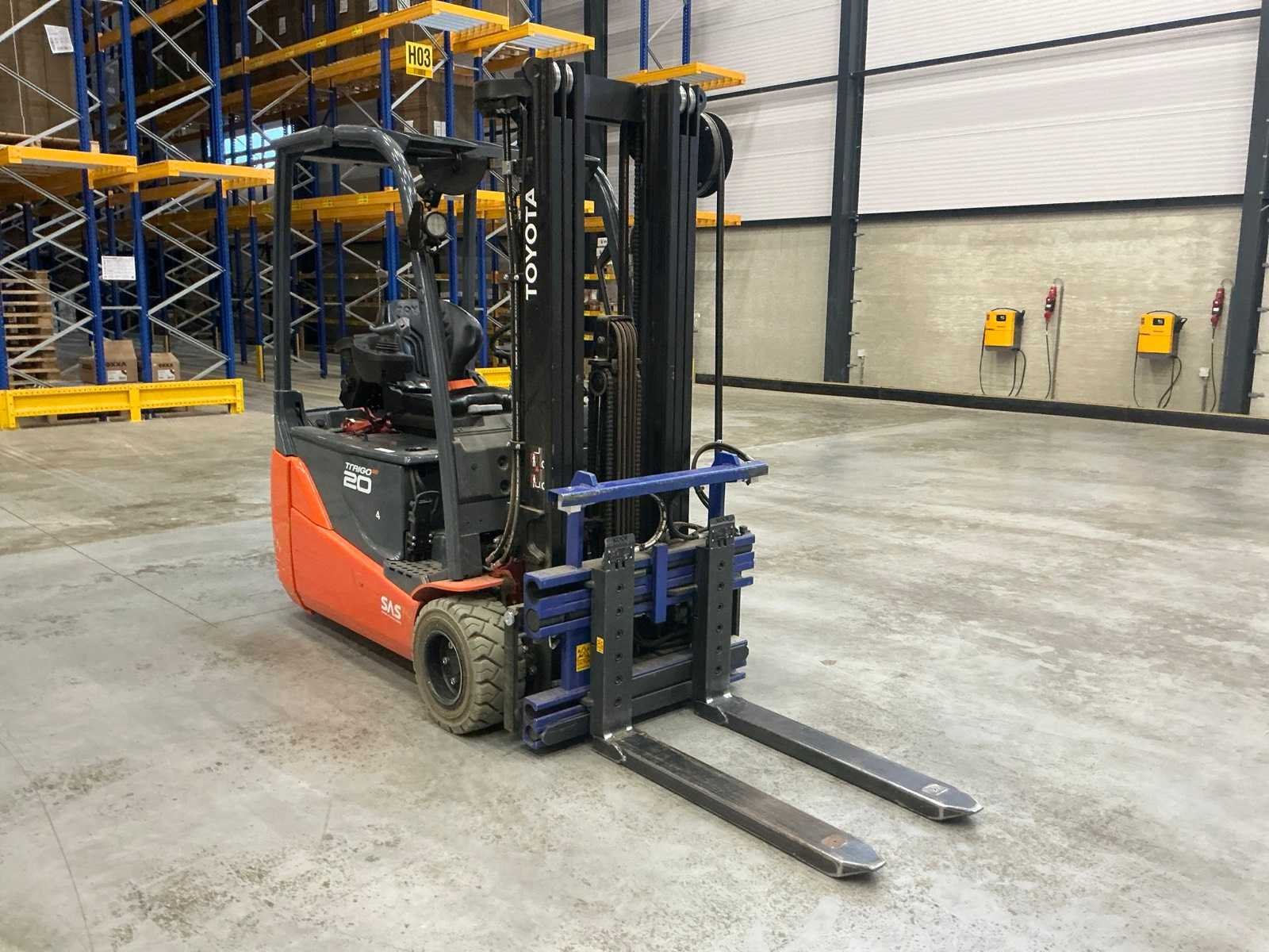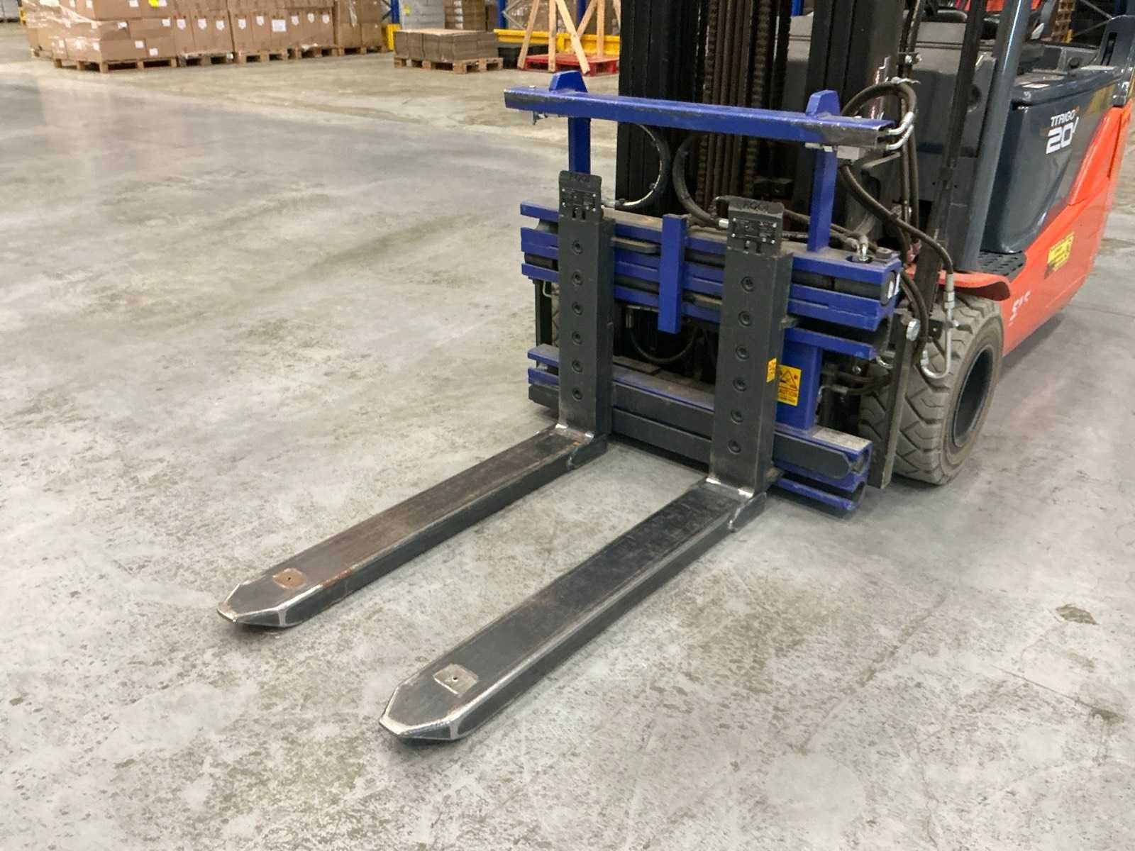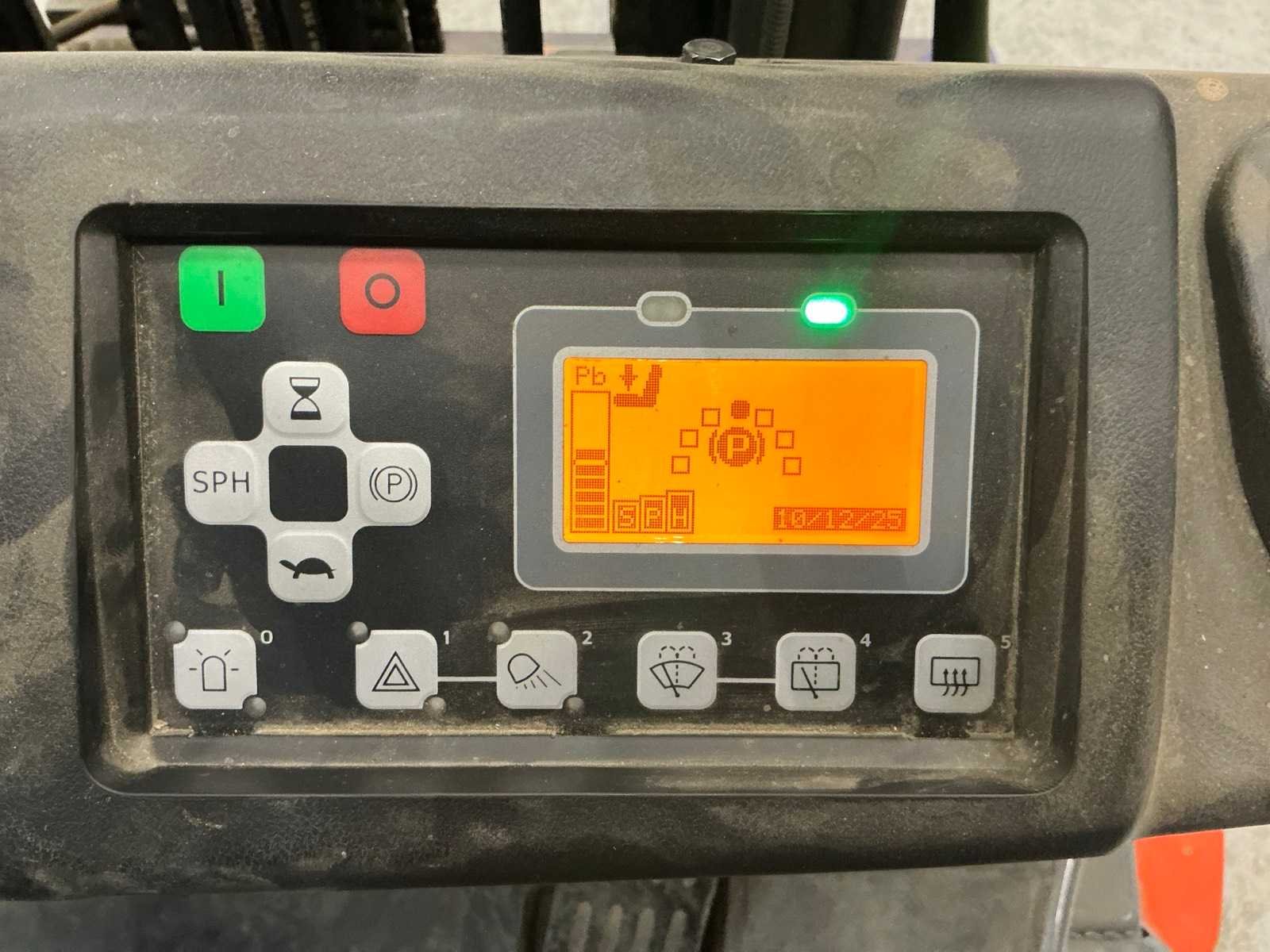 Voorzien van: blue spot, led spots voorzijde, kooi RG2 hydraulische uitschuifbare lepels (tot 1600 mm). Merk: Toyota Bouwjaar: 2023 Serienummer: 19121 Afgelezen urenstand: 4888 Side-shift: true Triple mast: true Eigen gewicht: 2504kg Hefvermogen: 2000kg Lepellengte: 1100mm Max. hefhoogte: 4700mm Vol rubber banden: true Totale afmeting L: 3100mm Totale afmeting Breedte: 1150mm Totale afmeting Hoogte: 2130mm