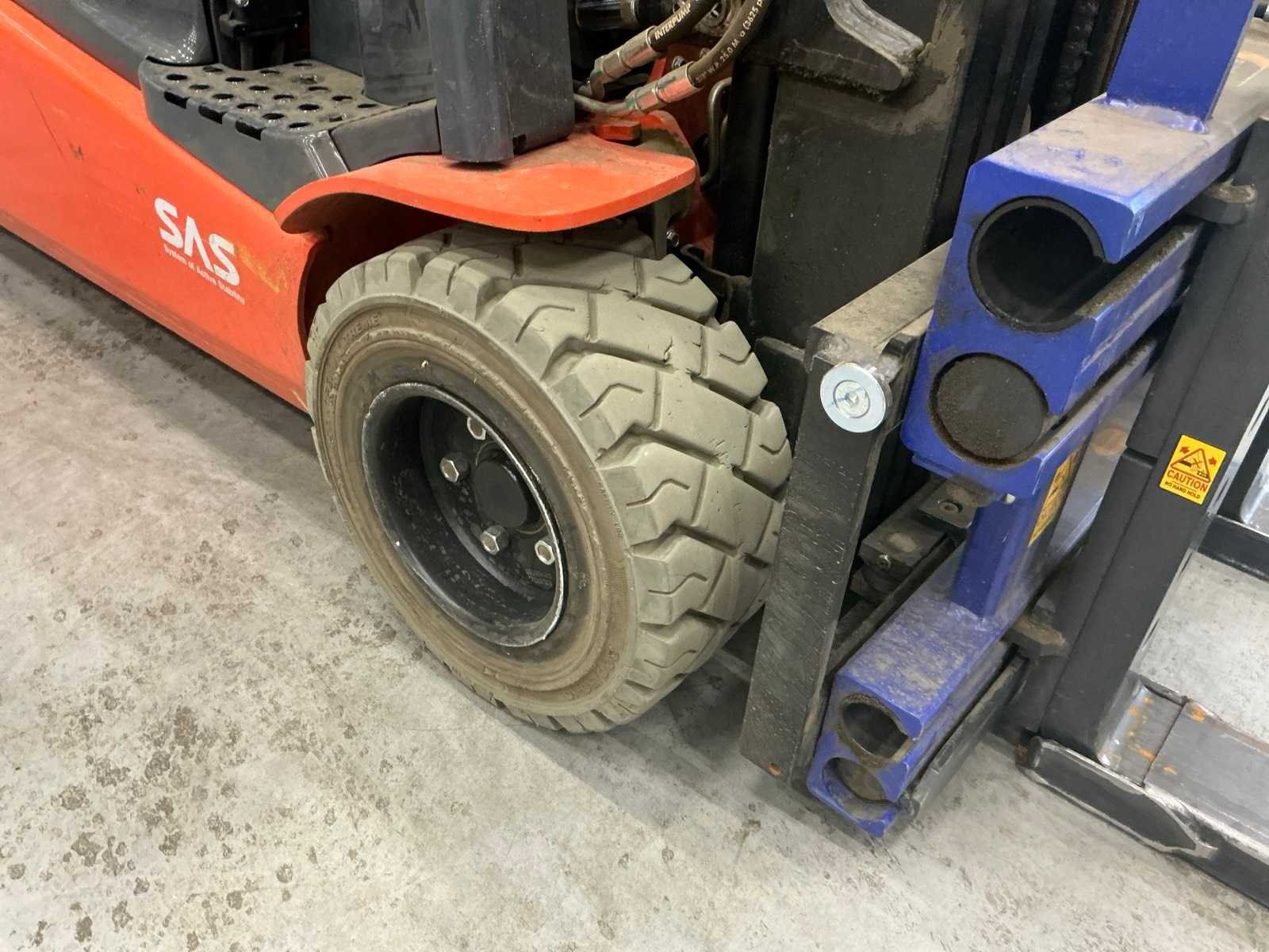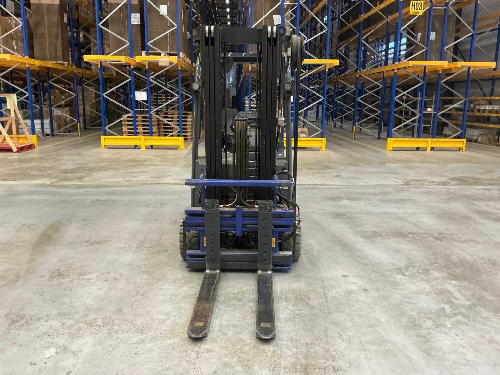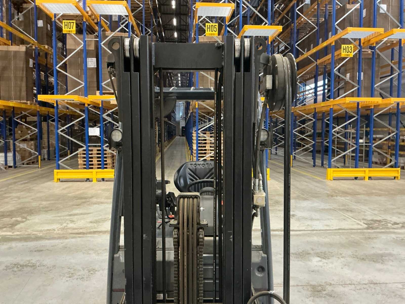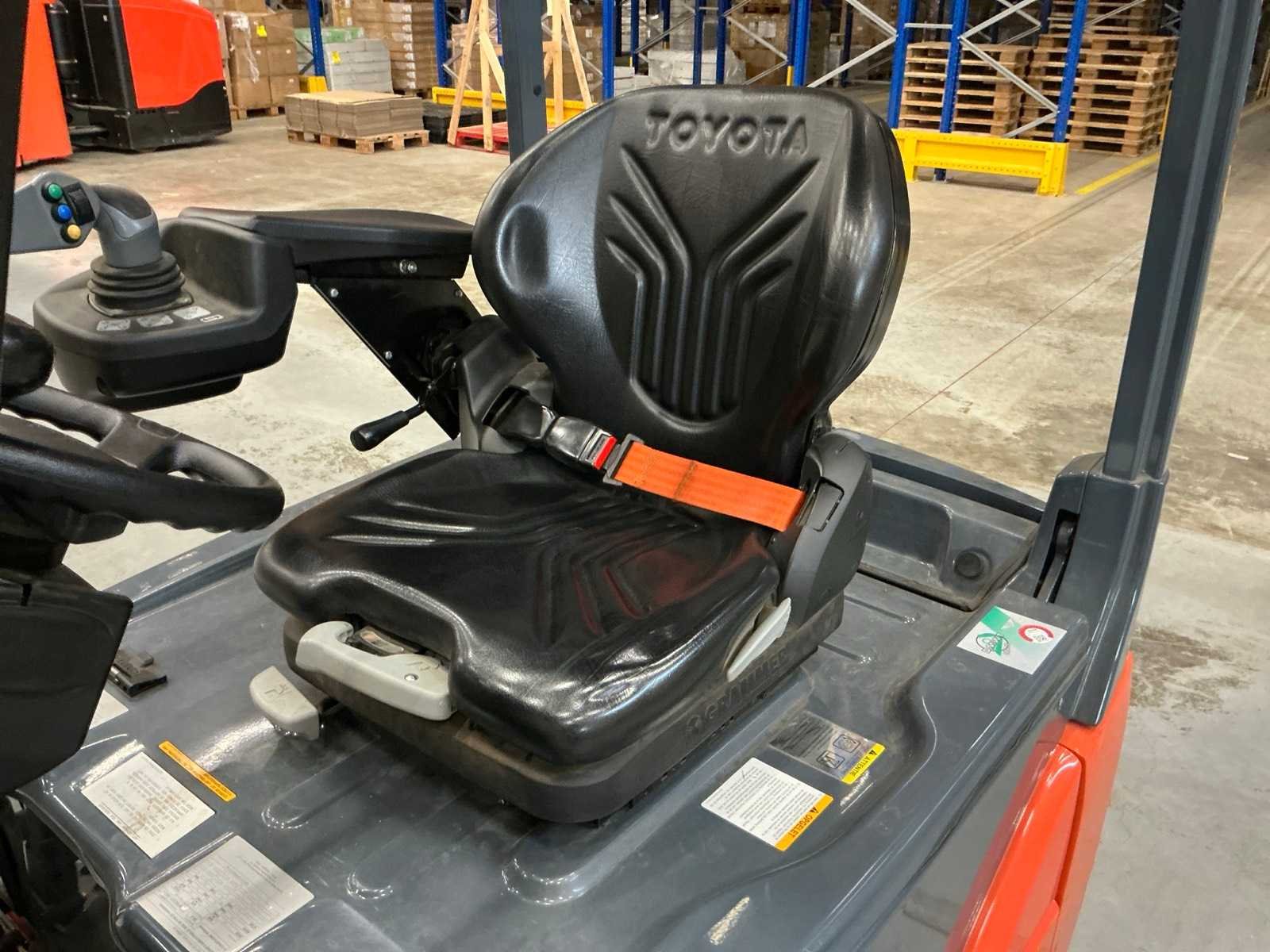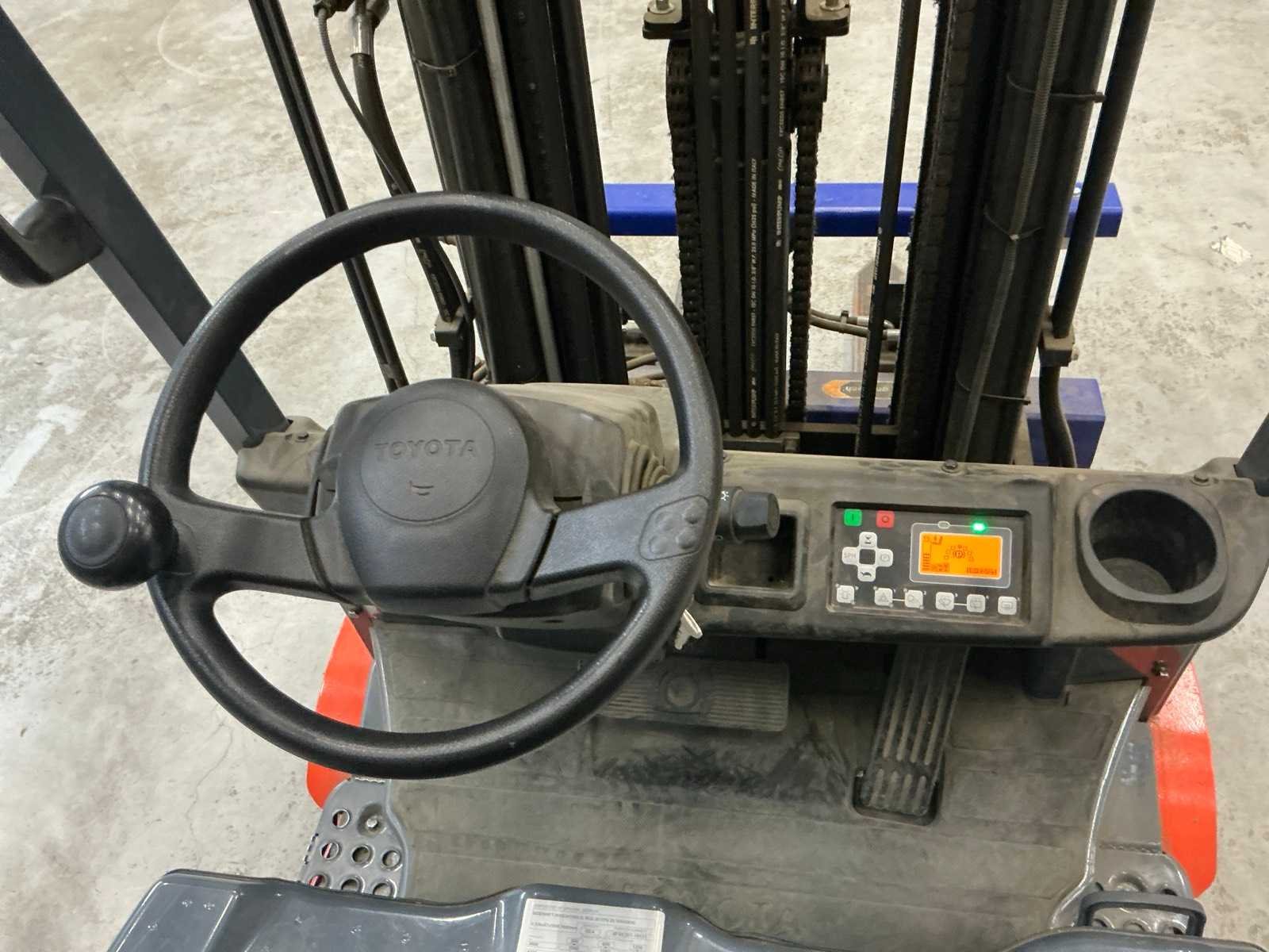 Voorzien van: blue spot, led spots voorzijde, kooi RG2 hydraulische uitschuifbare lepels (tot 1600 mm). Merk: Toyota Bouwjaar: 2023 Serienummer: 19121 Afgelezen urenstand: 4888 Side-shift: true Triple mast: true Eigen gewicht: 2504kg Hefvermogen: 2000kg Lepellengte: 1100mm Max. hefhoogte: 4700mm Vol rubber banden: true Totale afmeting L: 3100mm Totale afmeting Breedte: 1150mm Totale afmeting Hoogte: 2130mm