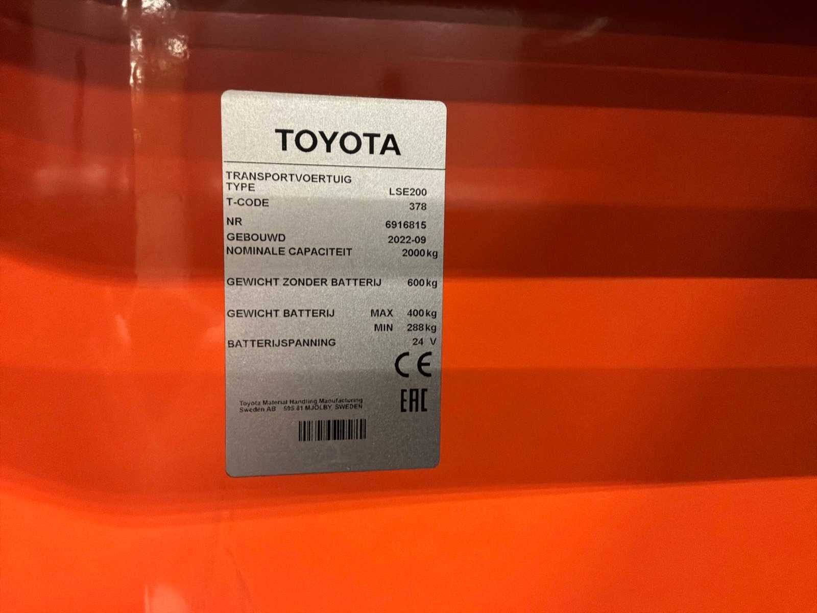 Merk: Toyota Bouwjaar: 2022 Serienummer: 6916815 Hefvermogen: 2000kg Lepellengte: 1150mm Meerij palletwagen: true Accu lader: true Afgelezen urenstand: 711 Eigen gewicht: 600kg Totale afmeting L: 2000mm Totale afmeting Breedte: 800mm Totale afmeting Hoogte: 1350mm