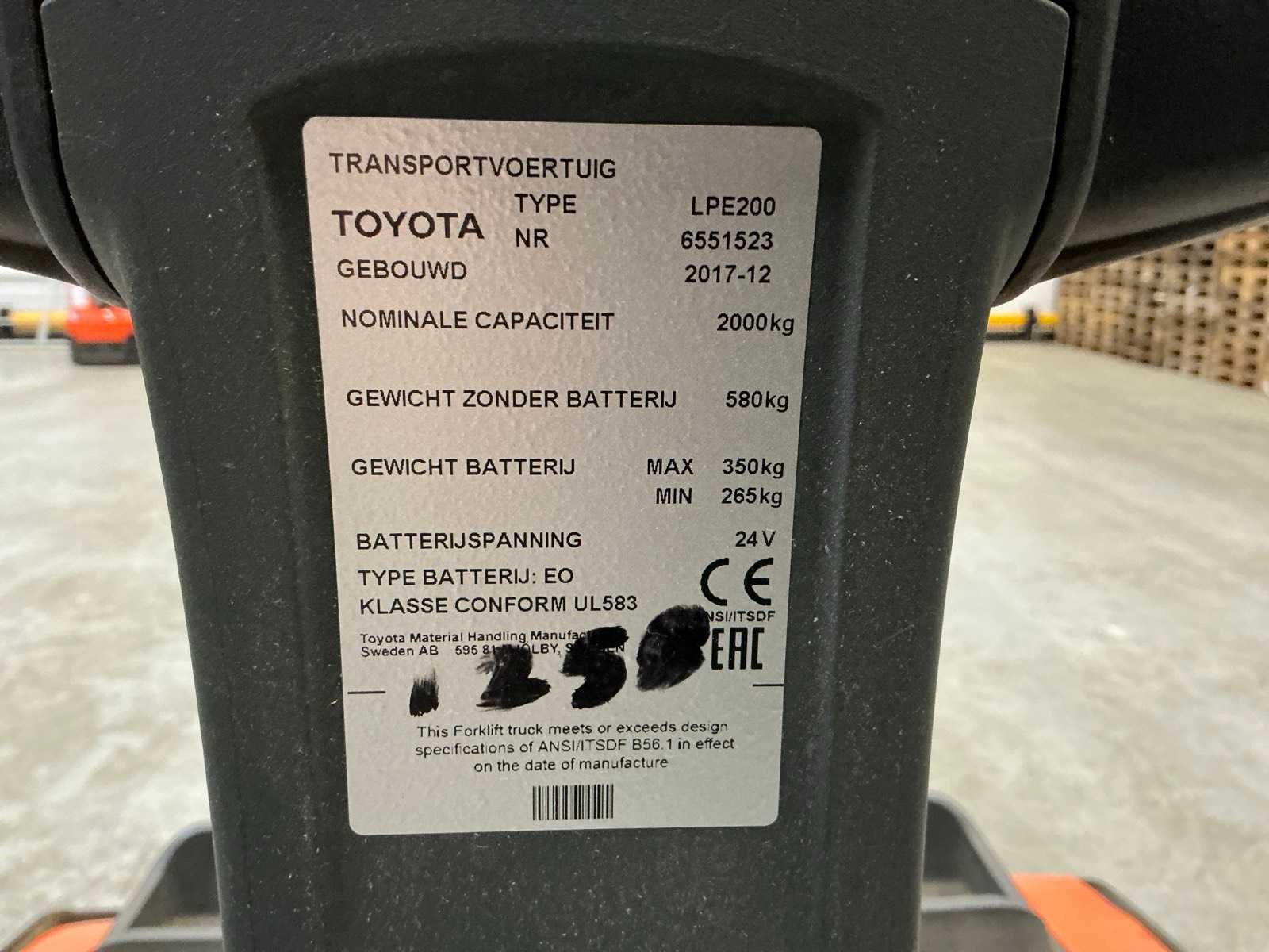Merk: Toyota Bouwjaar: 2017 Serienummer: 6551523 Hefvermogen: 2000kg Lepellengte: 1950mm Meerij palletwagen: true Afgelezen urenstand: 2814 Eigen gewicht: 580kg Totale afmeting L: 3150mm Totale afmeting Breedte: 740mm Totale afmeting Hoogte: 1500mm