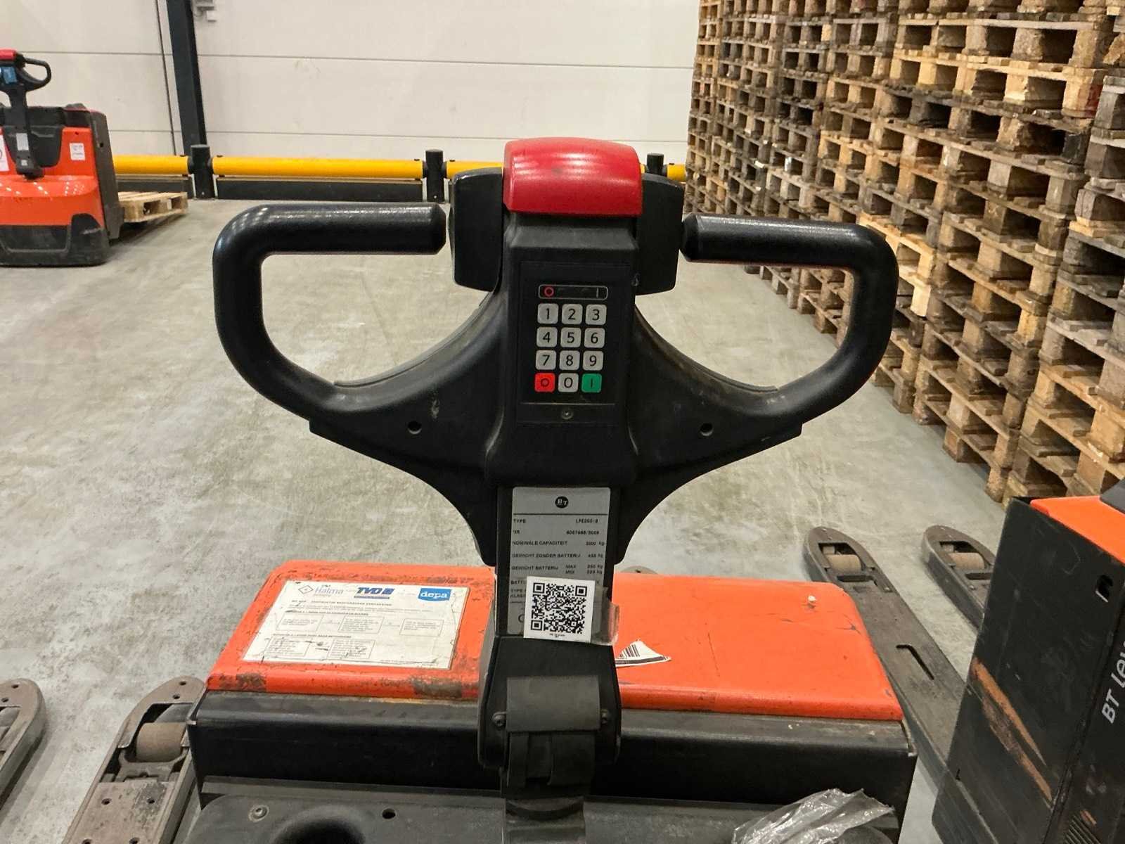 Defect, start en rijdt niet. Merk: BT Bouwjaar: 2009 Serienummer: 6087468 Hefvermogen: 2000kg Lepellengte: 1150mm Meerij palletwagen: true Eigen gewicht: 435kg Totale afmeting L: 2350mm Totale afmeting Breedte: 740mm Totale afmeting Hoogte: 150mm