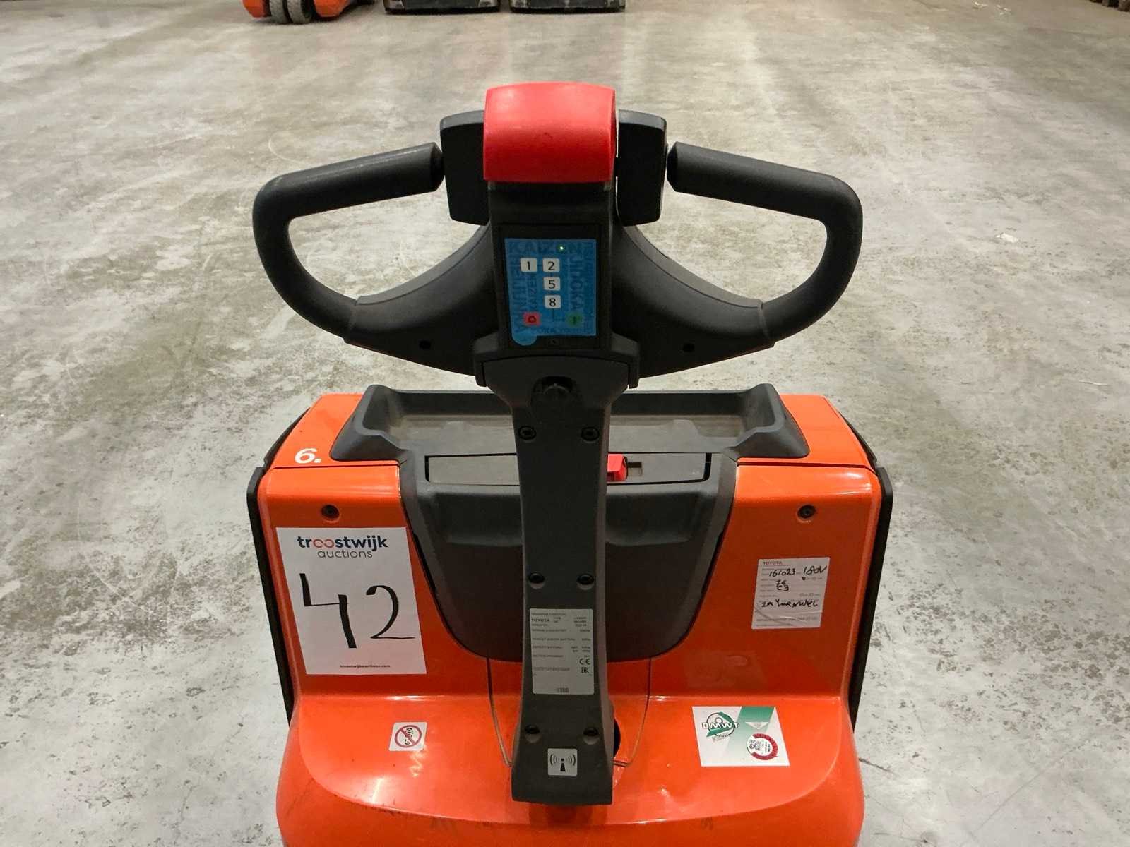 Merk: Toyota Bouwjaar: 2022 Serienummer: 6914589 Hefvermogen: 2000kg Lepellengte: 1000mm Accu lader: true Afgelezen urenstand: 314 Eigen gewicht: 320kg Totale afmeting L: 1550mm Totale afmeting Breedte: 750mm Totale afmeting Hoogte: 1300mm